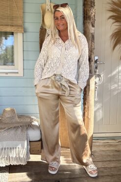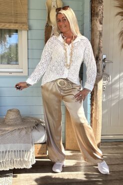 Blouse Kelly Kant met Opstroopmouw, Zand.