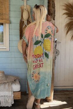 Jurk Janice Sunset Palm met Lurex.