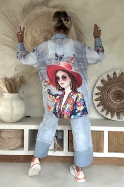 Jeans Look blouse Amara met vrolijke Print.