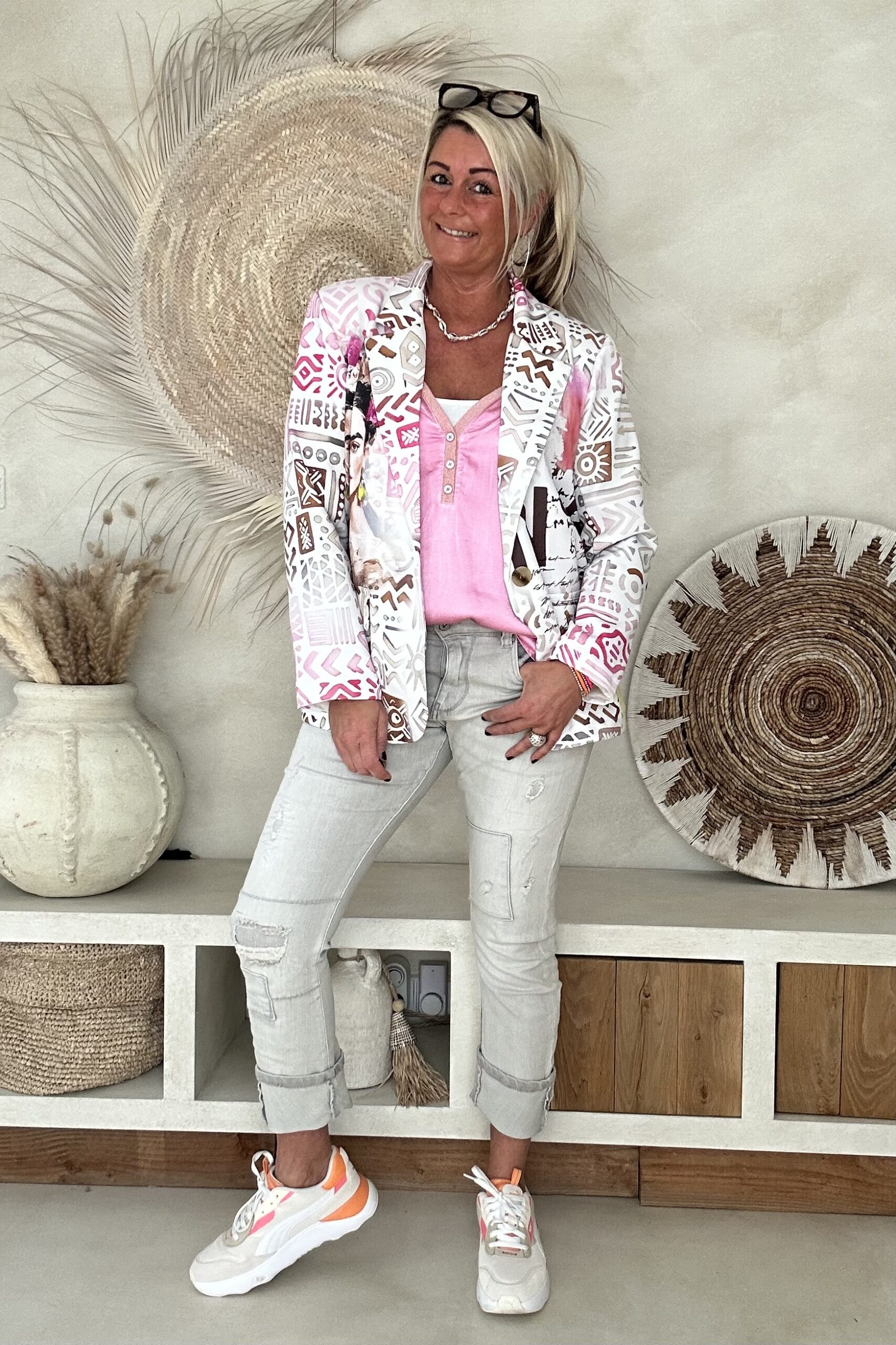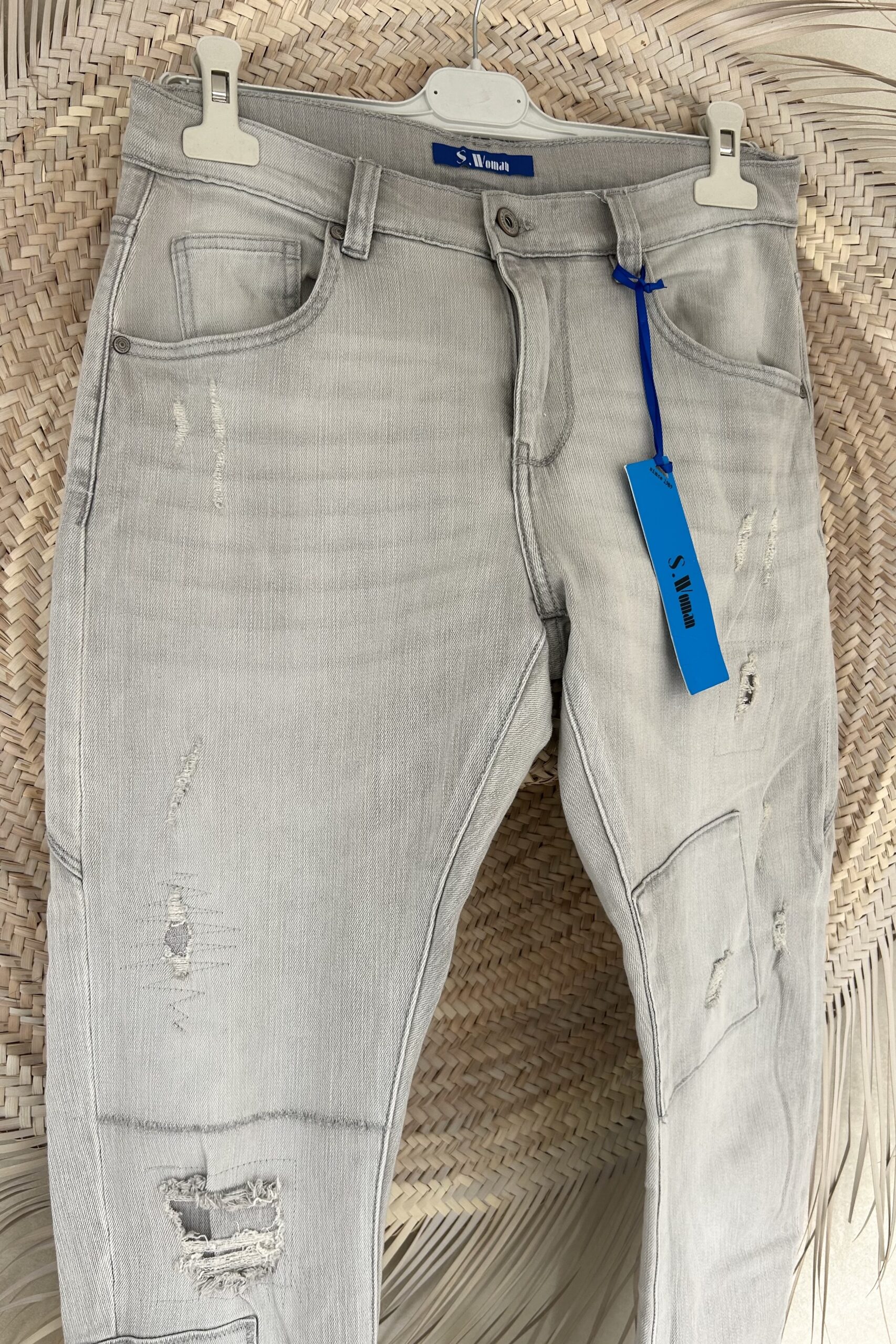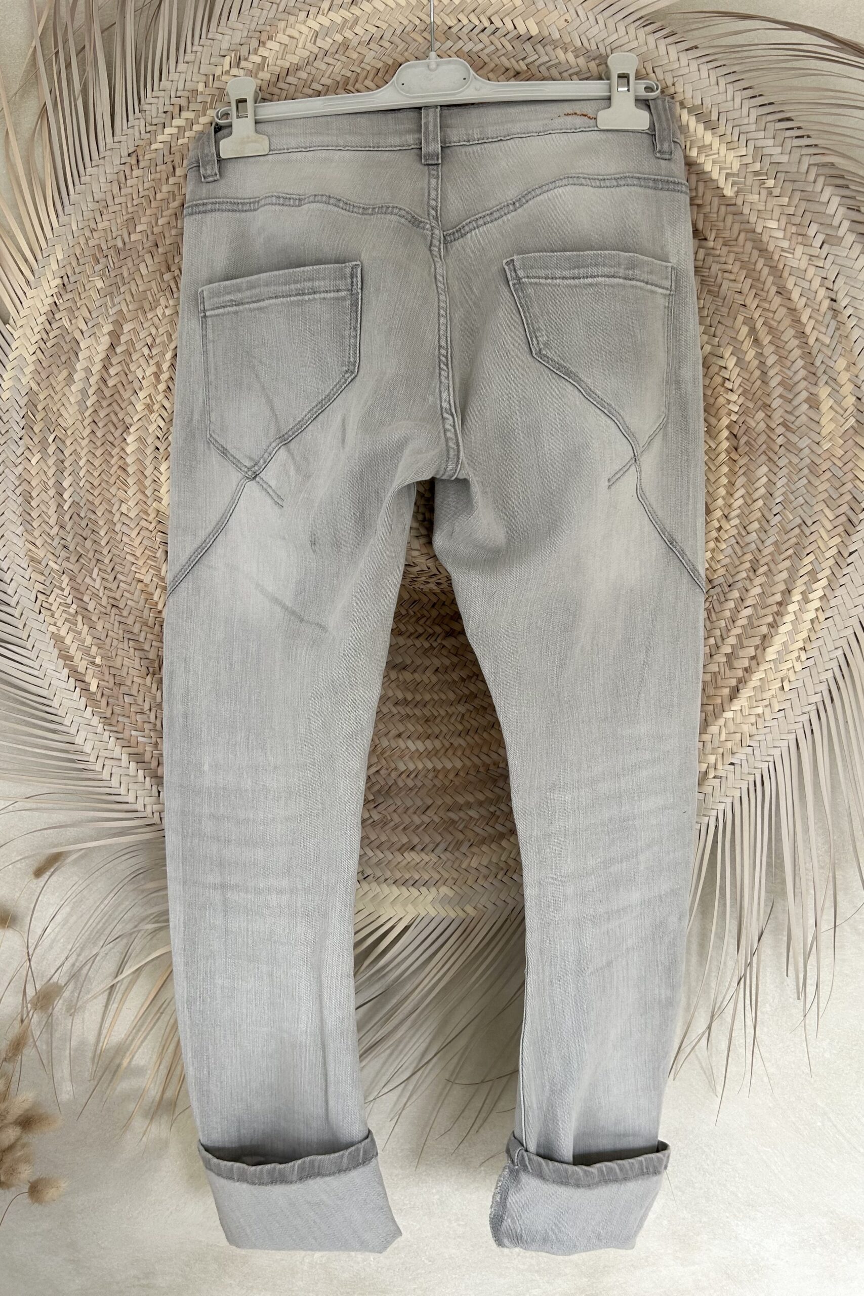 S. Woman Baggy Jeans Bobbie licht Grijs met patches.