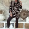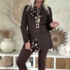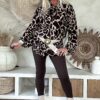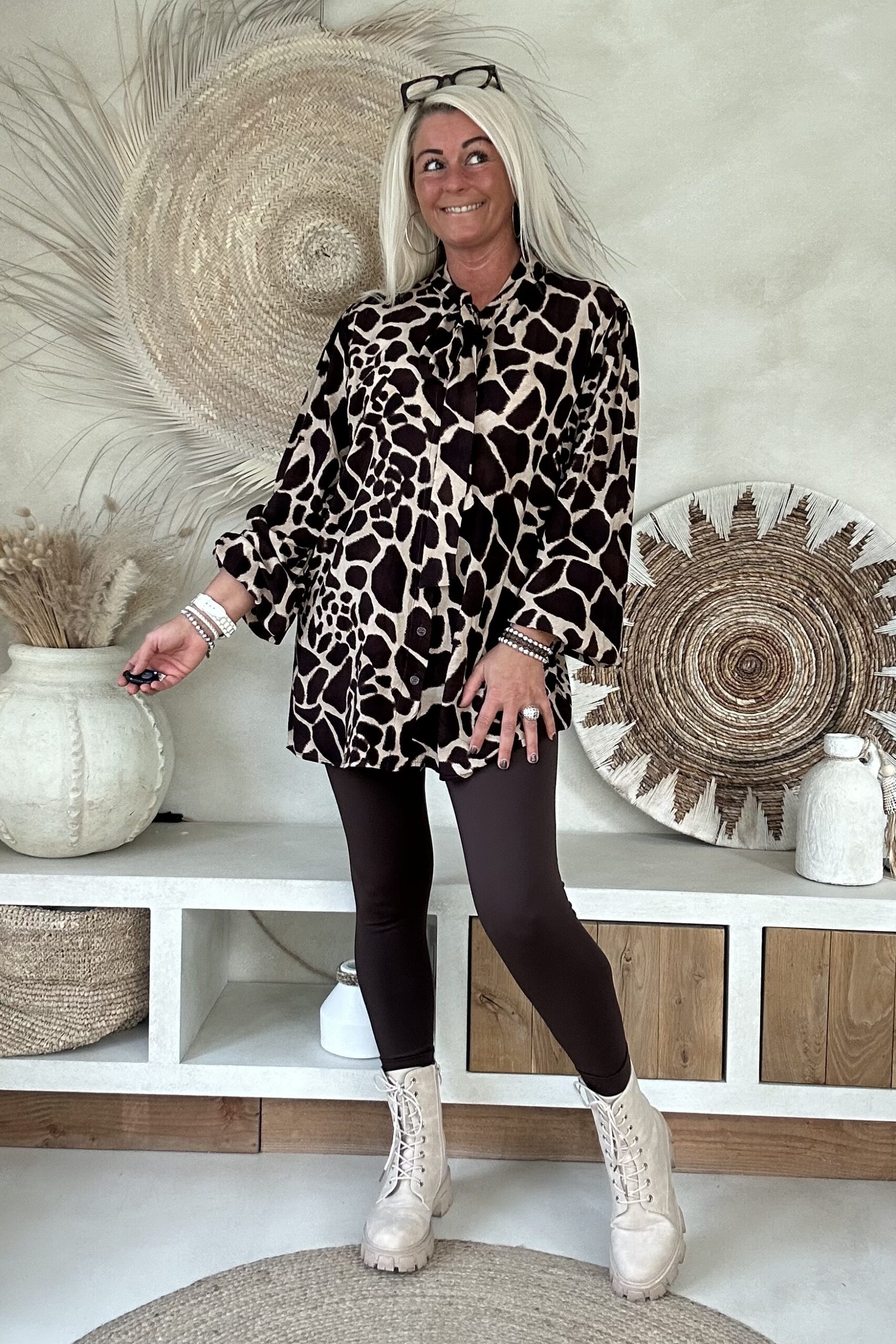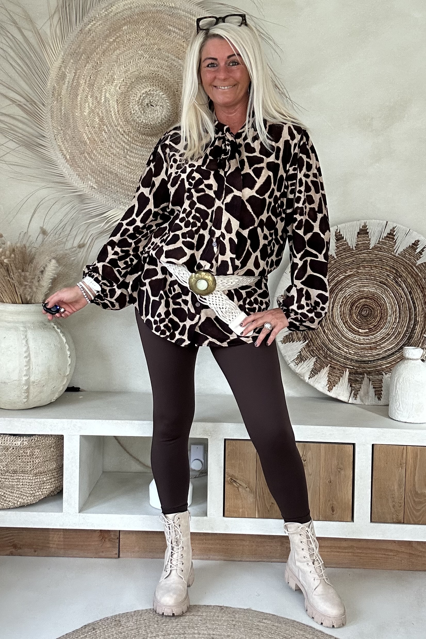 Lange blouse met strik – Giraffeprint Bruin/Beige