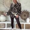 Stijlvolle lange blouse met een speelse giraffeprint in warme bruin- en beigetinten. De blouse heeft een doorknoopsluiting en een vrouwelijke strik bij de hals, wat zorgt voor een elegante en eigentijdse uitstraling. De soepele stof valt mooi langs het lichaam en draagt heerlijk comfortabel. Dankzij de elastieken boorden aan de mouwen heeft de blouse een subtiel poffend effect. Een echte eyecatcher die zowel casual als chic te combineren is.