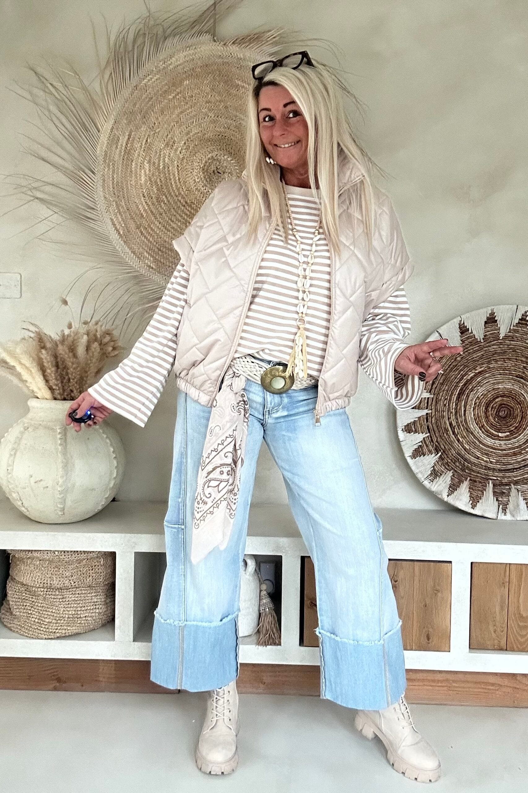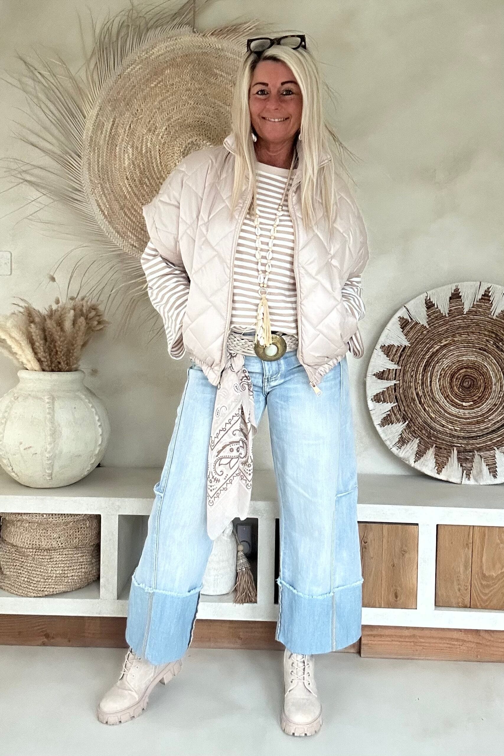 De bodywarmer is afgewerkt met een goudkleurige rits en praktische zakken aan de zijkant, waardoor hij niet alleen mooi maar ook functioneel is. Een veelzijdig item dat je er snel even bij pakt en waar je veel plezier van hebt in het voorjaar en najaar.