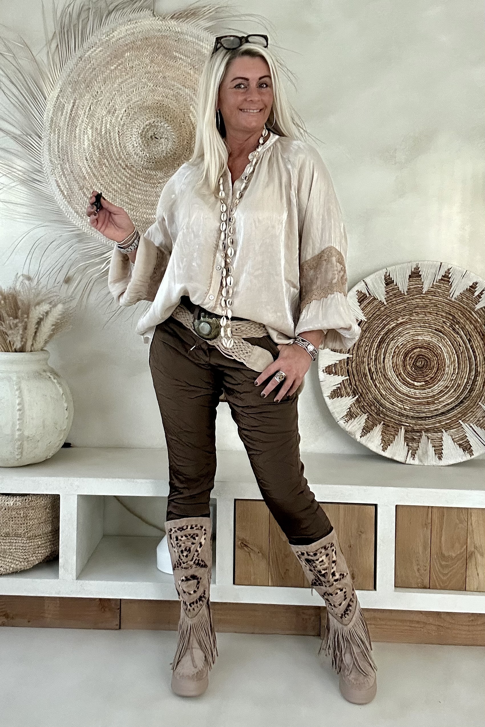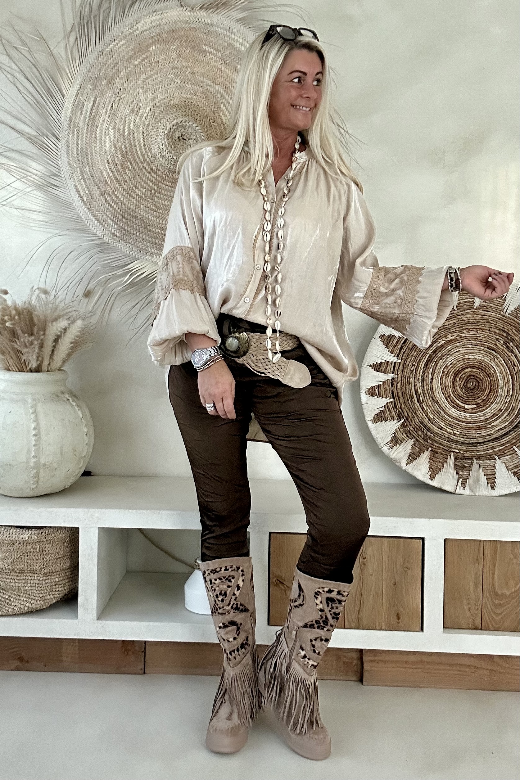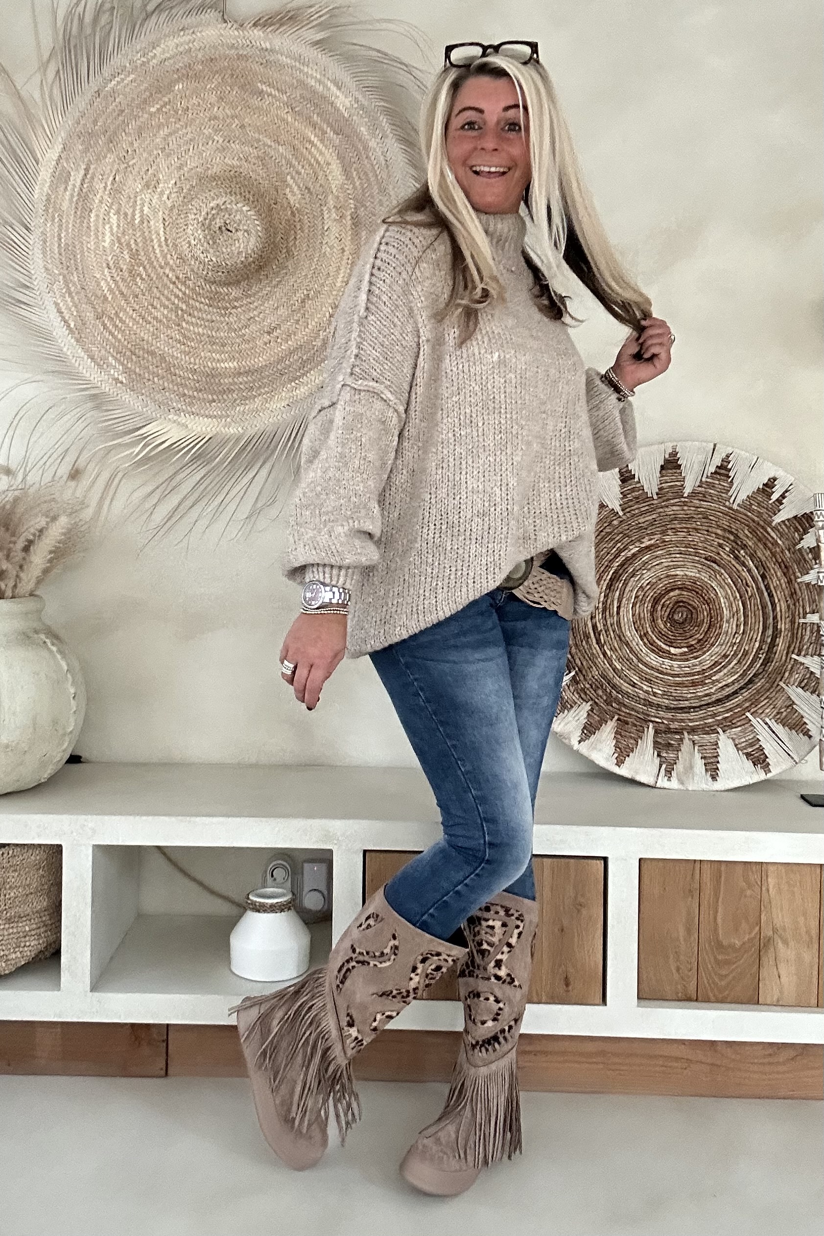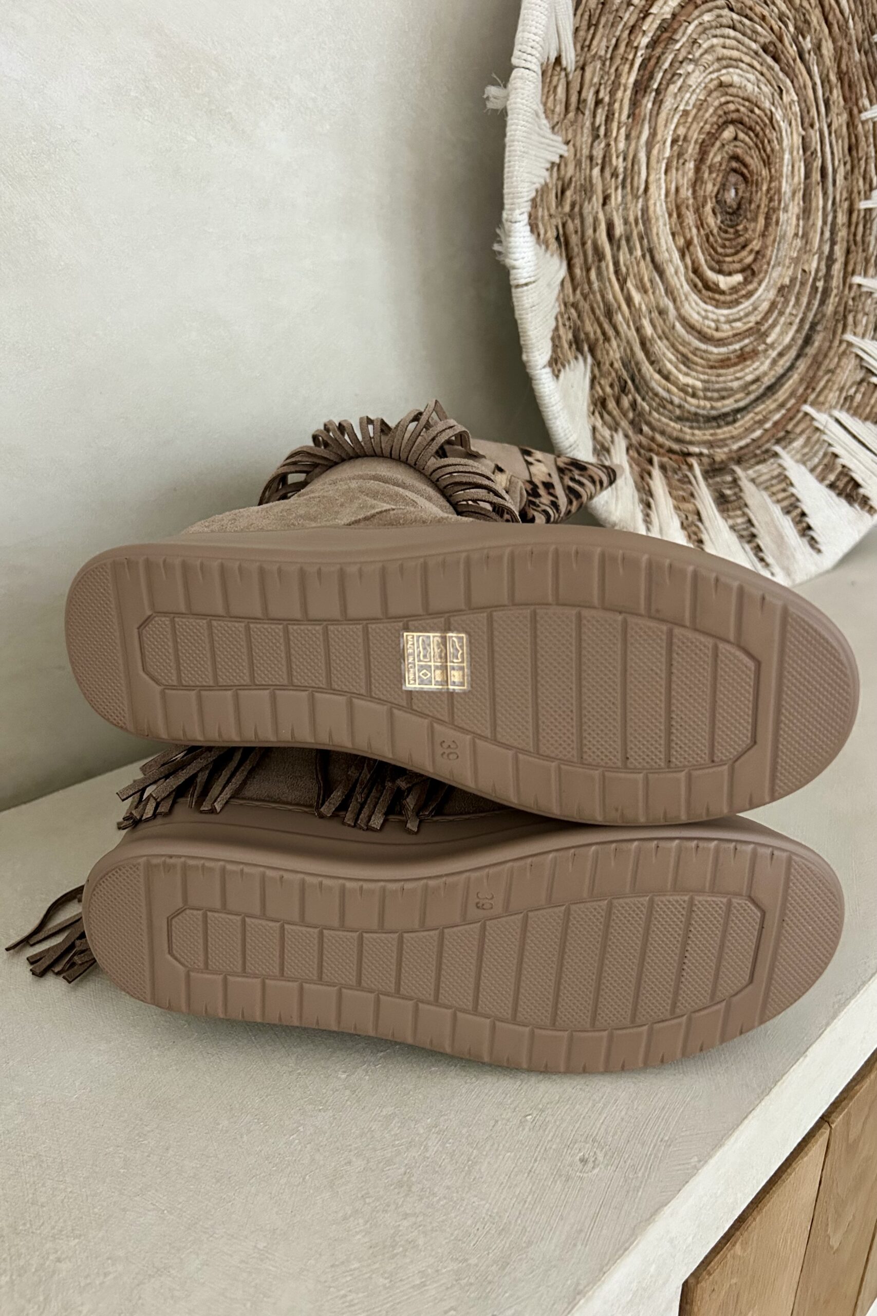 Boho Boots met Franjes & Panterdetails – Taupe Beige
