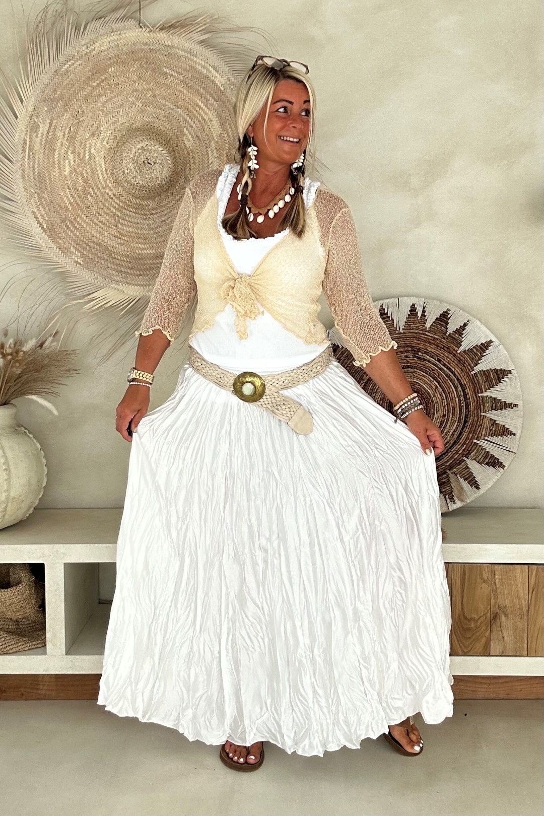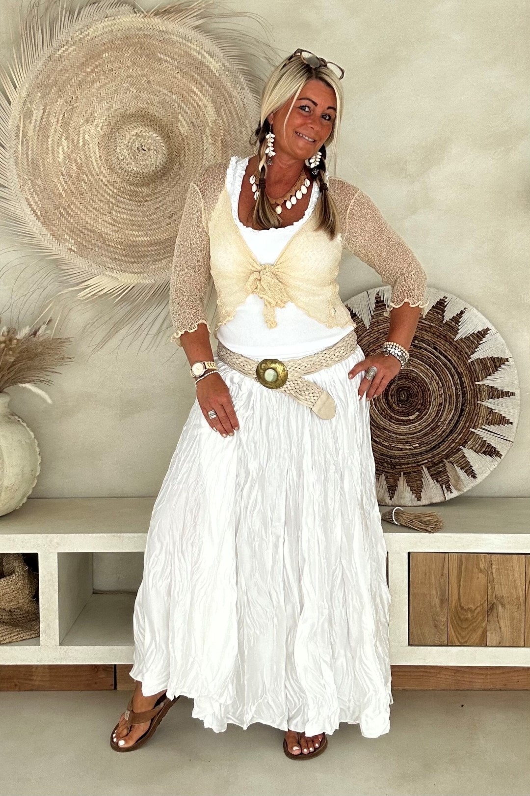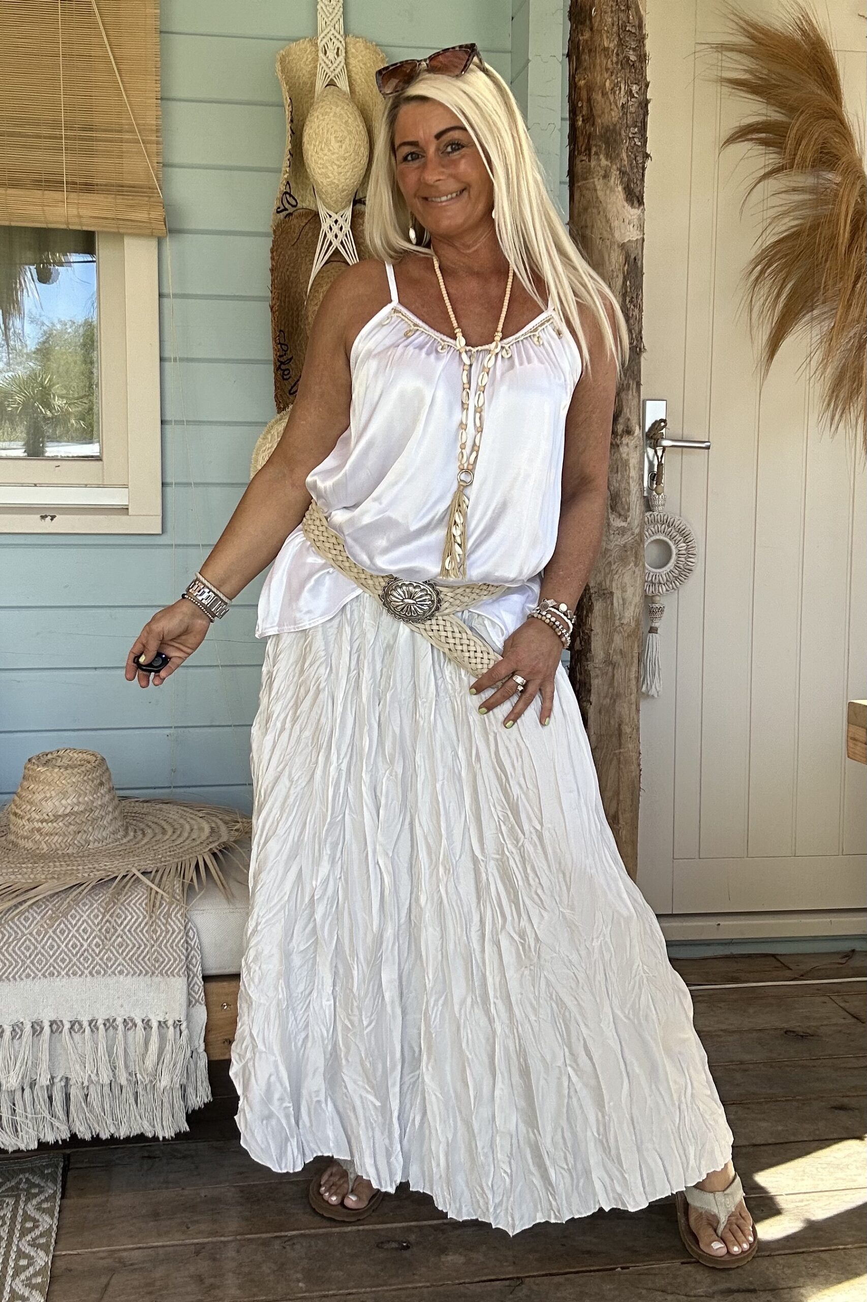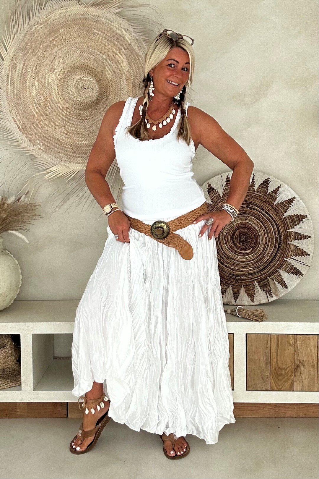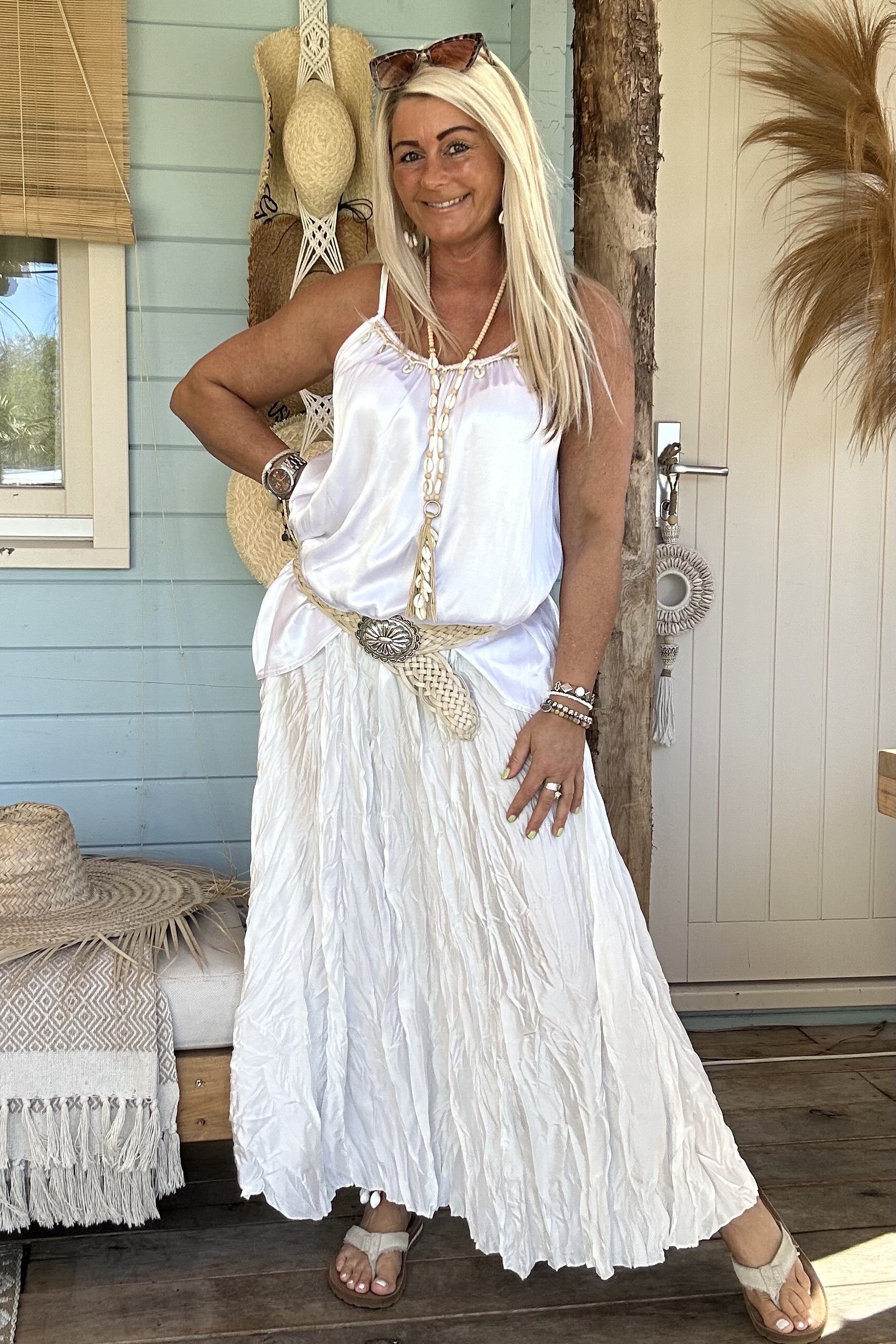 Boho Rok Satijnlook Wrinkle Fleur, Wit.