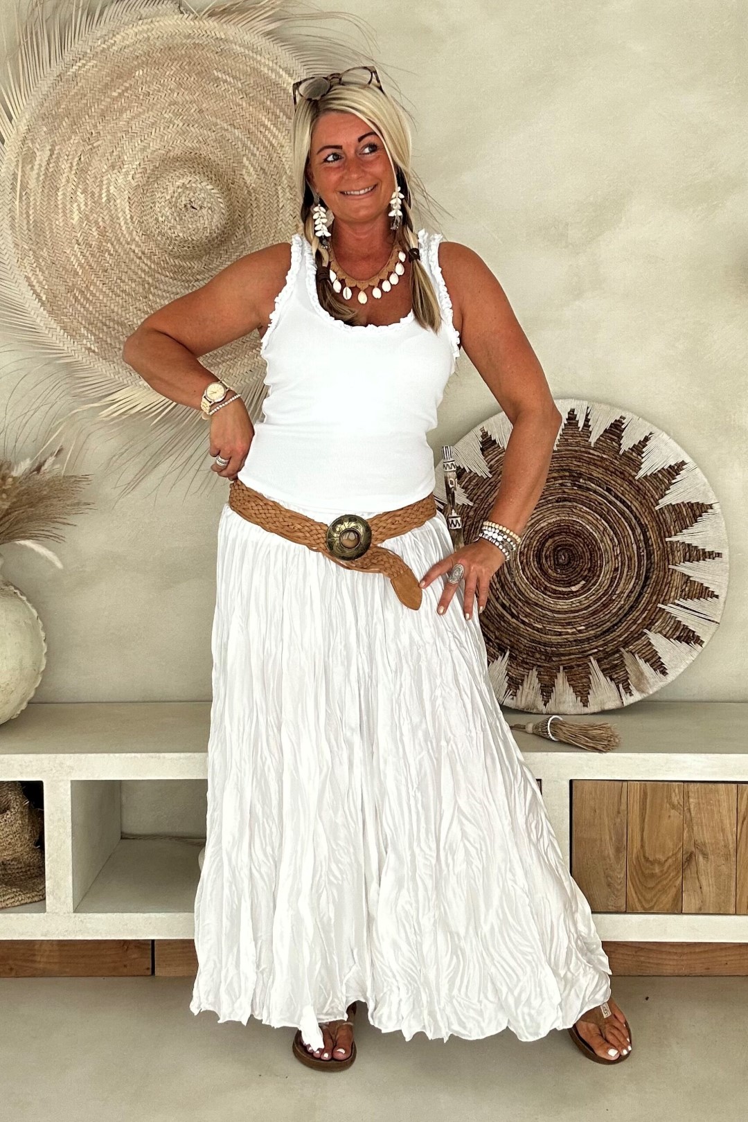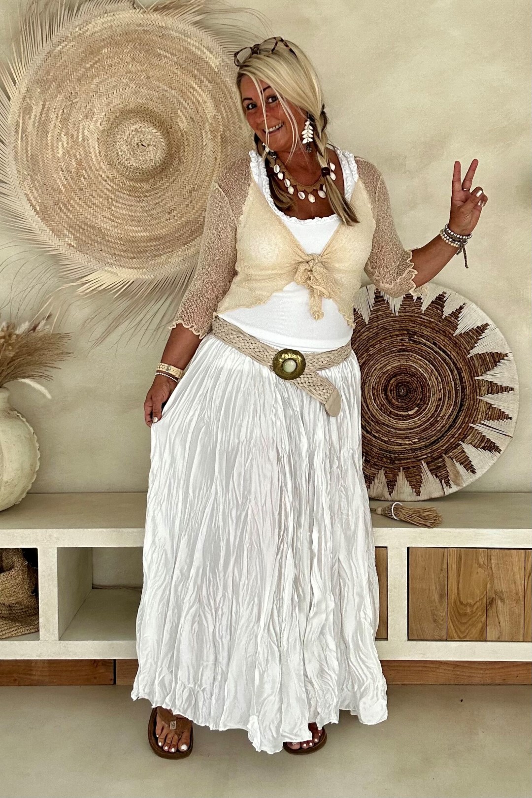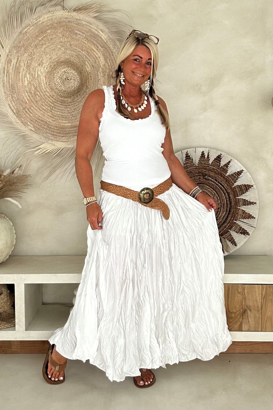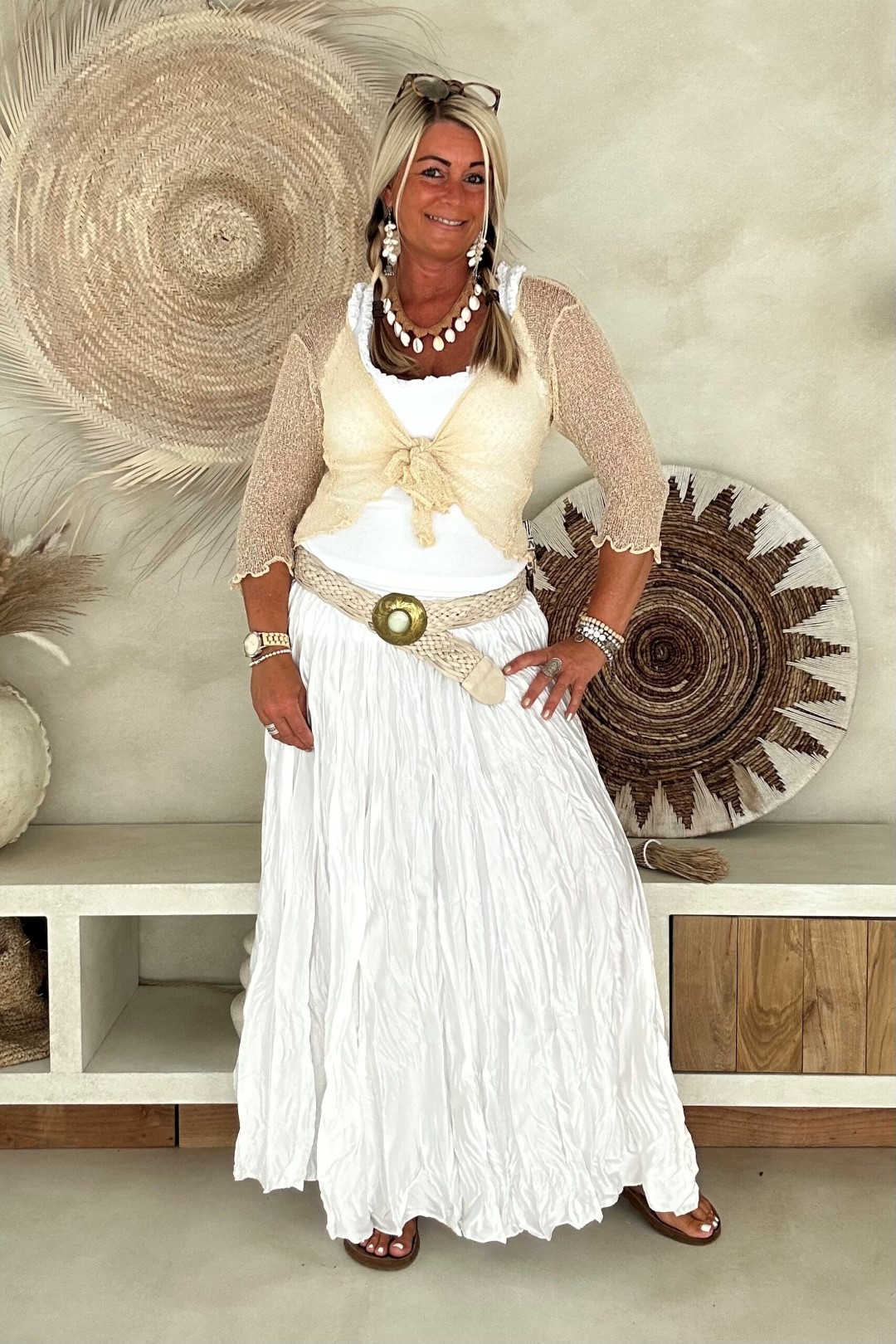 Boho Rok Satijnlook Wrinkle Fleur, Wit.