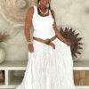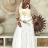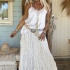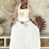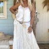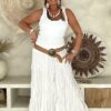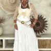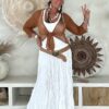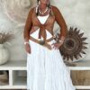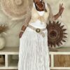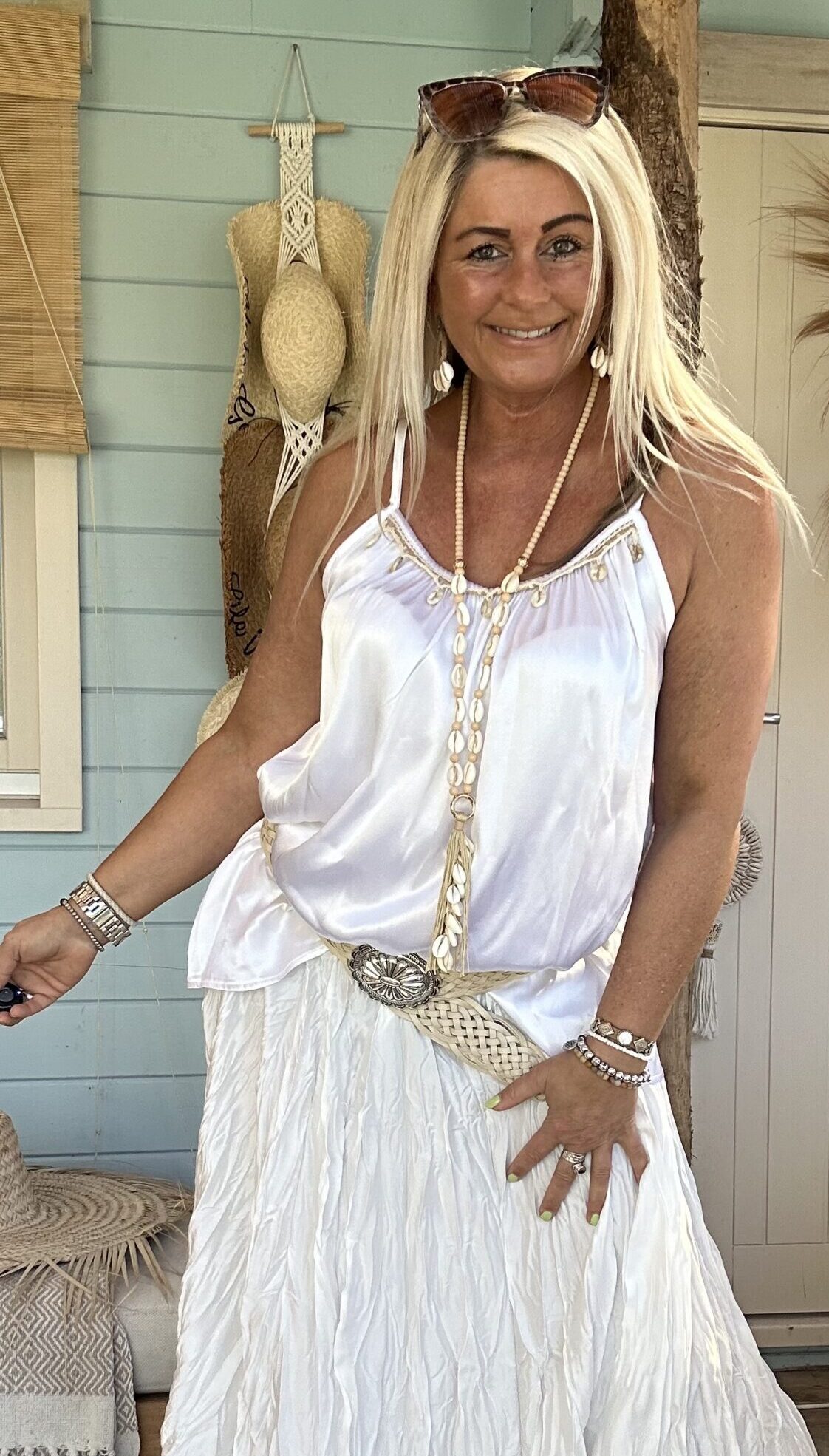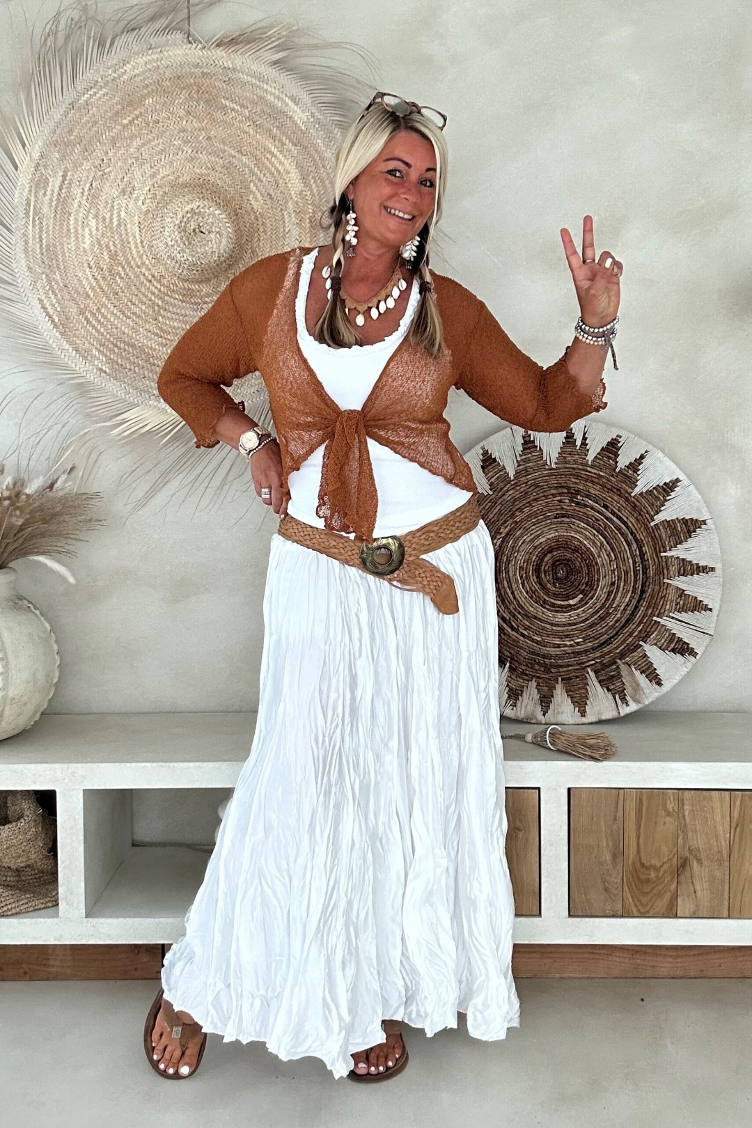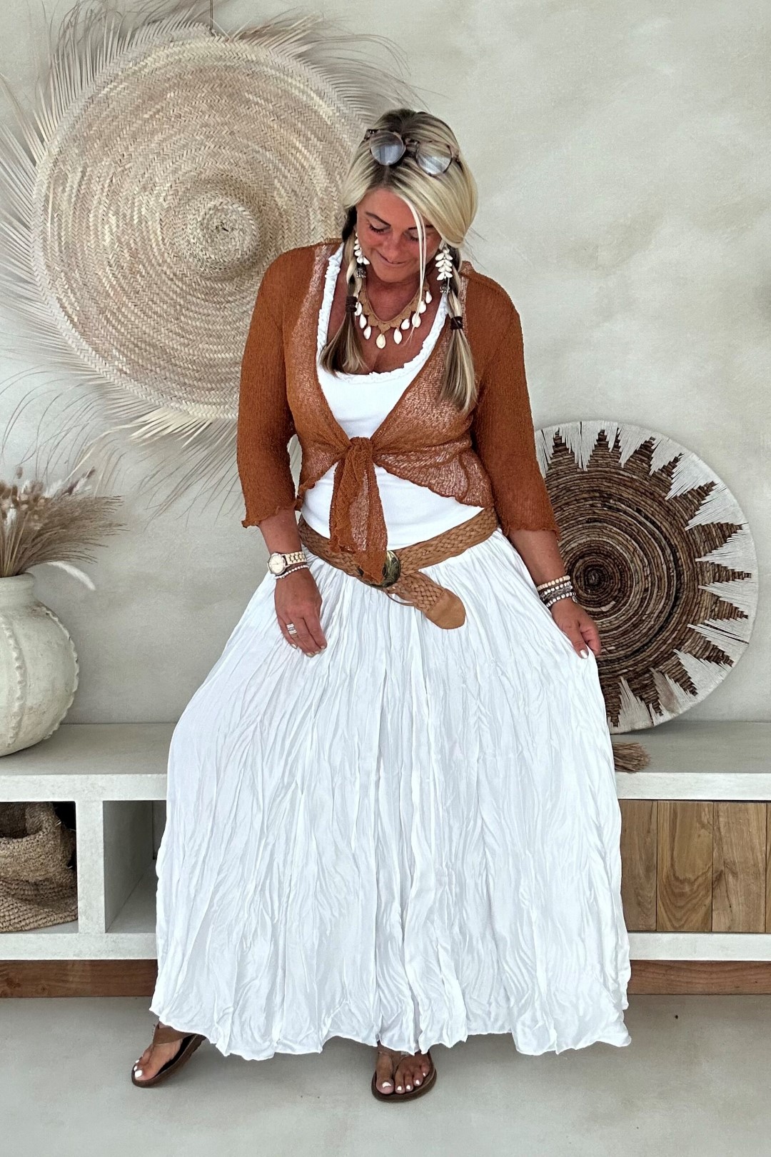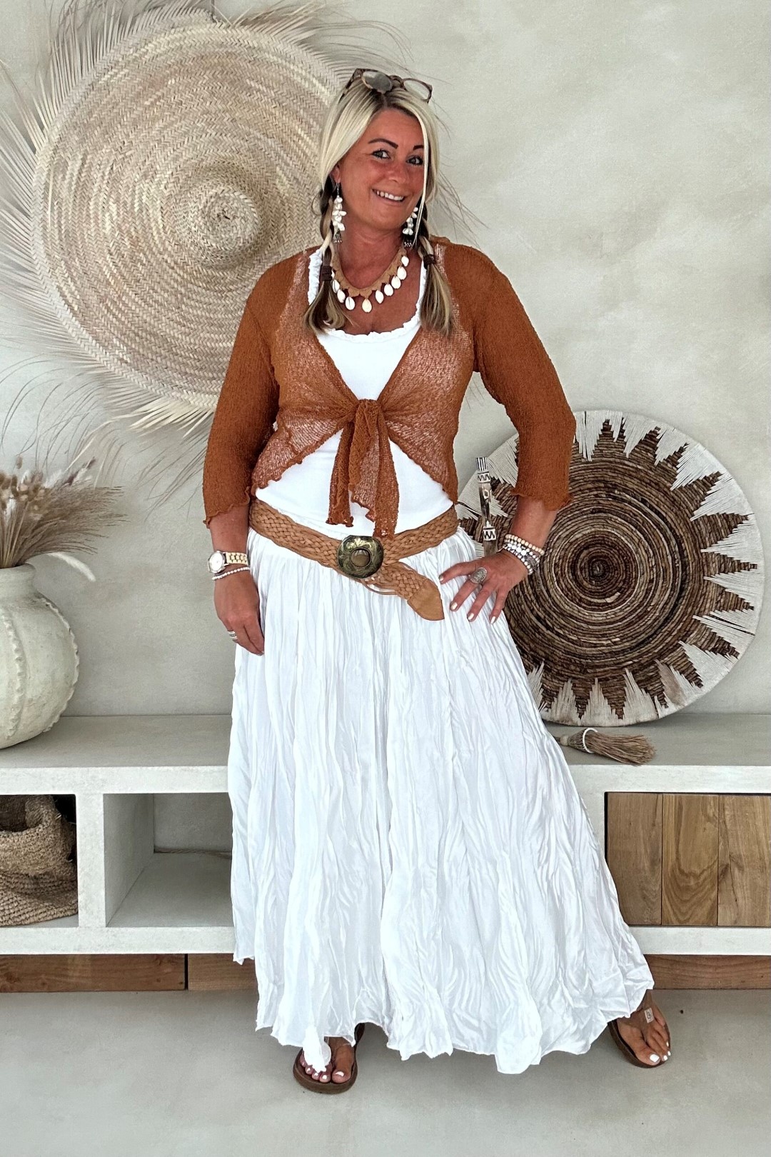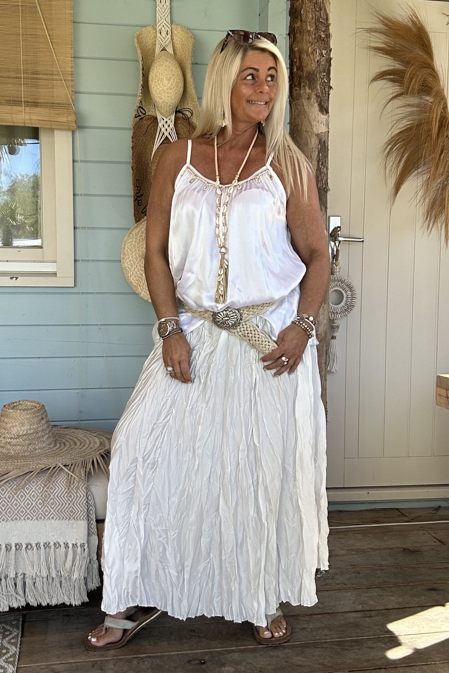 Boho Rok Satijnlook Wrinkle Fleur, Wit.