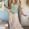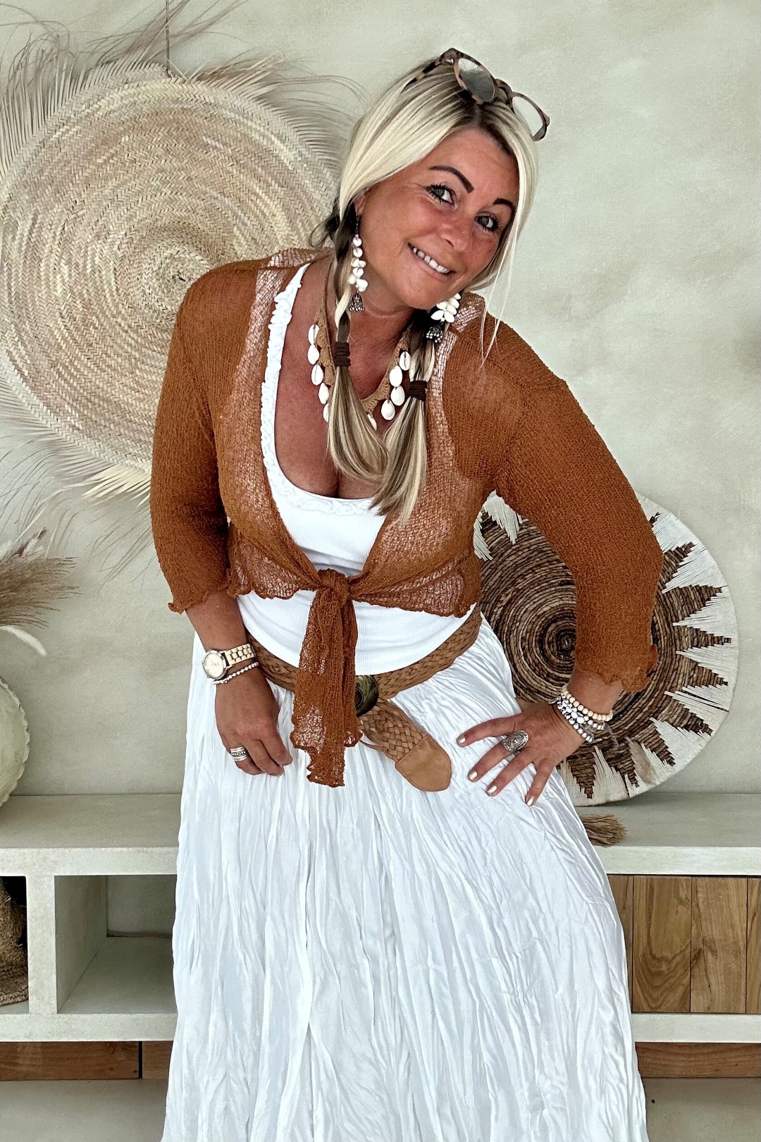 Laat je speelse kant zien met onze frivole satijnlook boho rok, voorzien van eigentijdse wrinkles/ kreukels voor een trendy twist. Deze rok is een ode aan vrouwelijkheid en vrijheid, en past perfect in elke moderne garderobe. Combineer het moeiteloos met een eenvoudige basic trui of een luchtige blouse voor een verfijnde look. Geef er een stoere draai aan met trendy boots en voeg een vleugje warmte toe met een grof gebreid vest. Met een one-size-pasvorm, geschikt voor maat 36 tot en met een kleine maat 44, biedt deze boho rok een universele charme voor elke vrouw die durft te stralen in haar eigen stijl. model draagt normaal maat 38 en is 1.66 m lang.