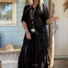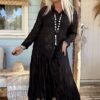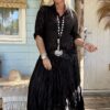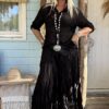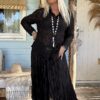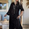Boho Rok Satijnlook Wrinkle Fleur, Zwart.