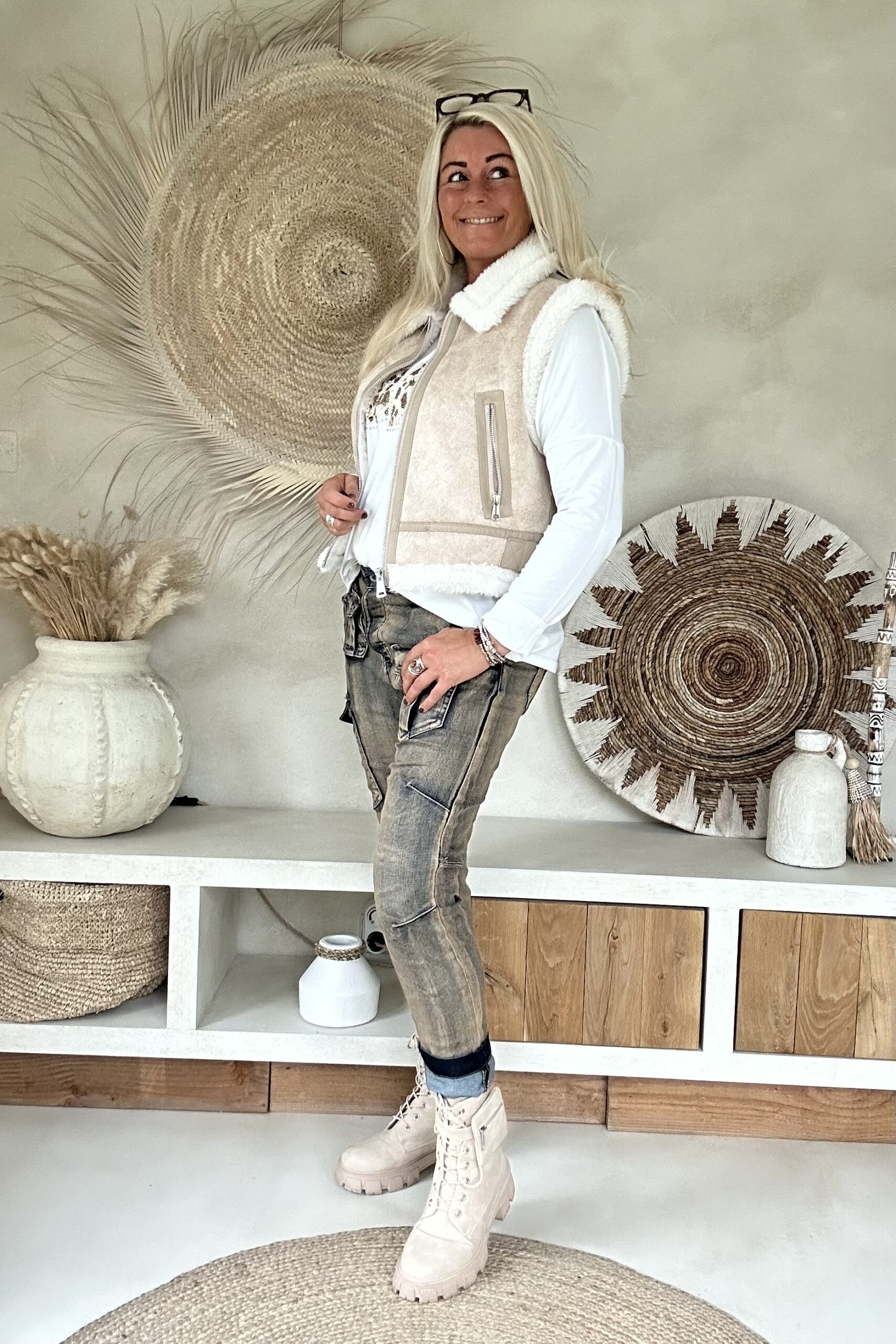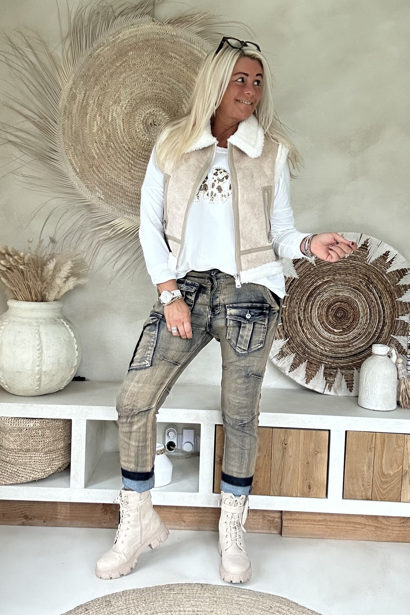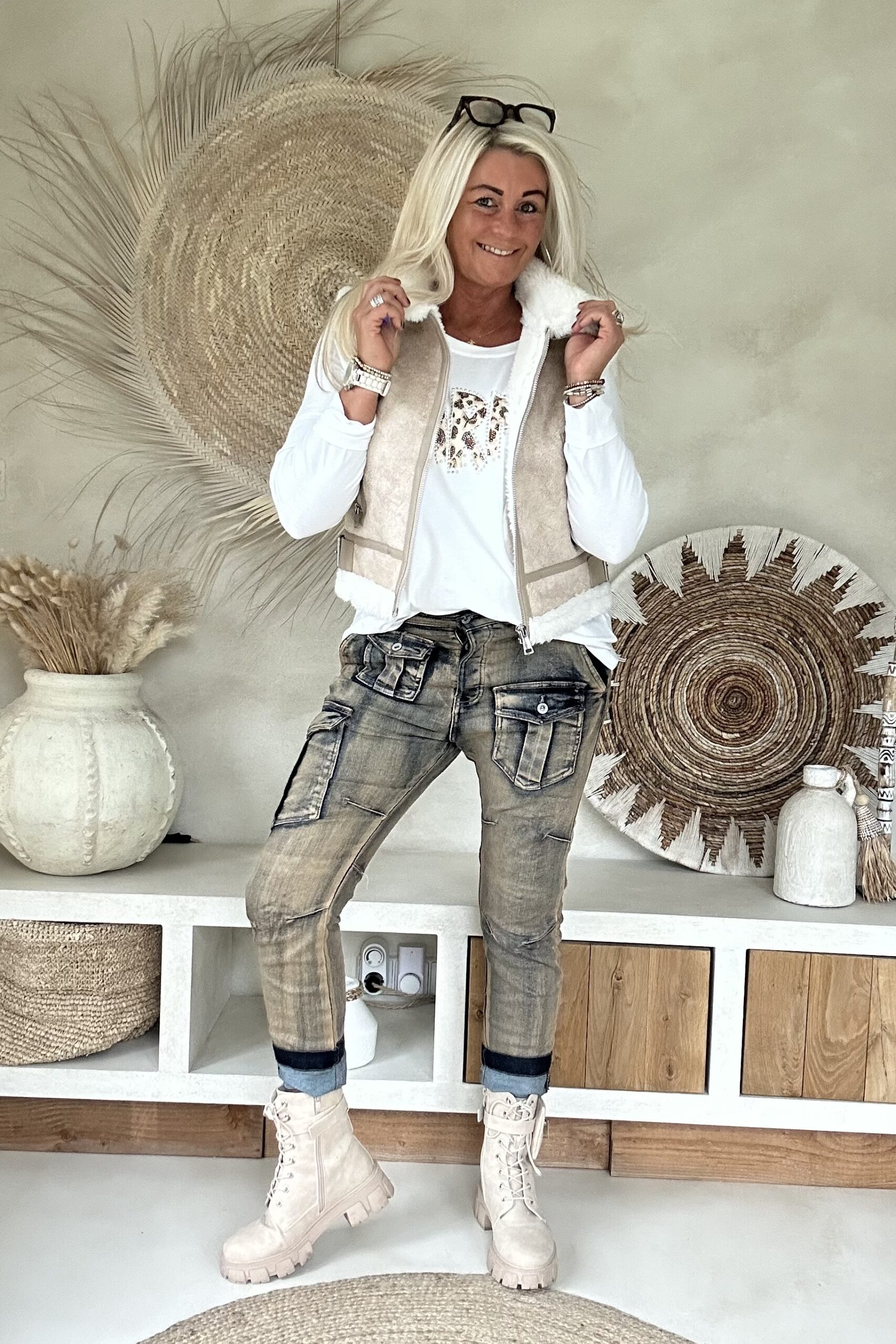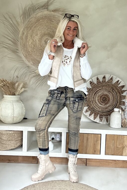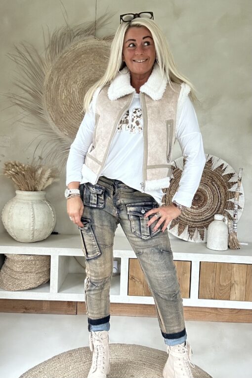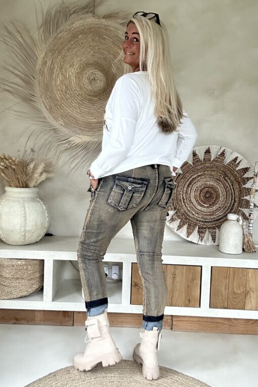 Deze stoere cargo jeans is een echte eyecatcher met zijn vintage washed effect en robuuste uitstraling. De opvallende zakken met klepsluiting en de doorgestikte naden geven de broek een karaktervolle, stoere look. Dankzij de comfortabele stretch sluit de jeans mooi aan en beweegt hij soepel mee. Perfect te combineren met een basic shirt, blazer of stoer jasje voor een trendy, nonchalante outfit met pit.