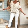 De top valt losjes en soepel om het lichaam en is perfect te combineren met zowel een stoere jeans als een elegante rok. Of je nu gaat voor casual of chic, deze top tilt je outfit moeiteloos naar een hoger niveau.