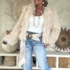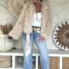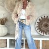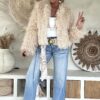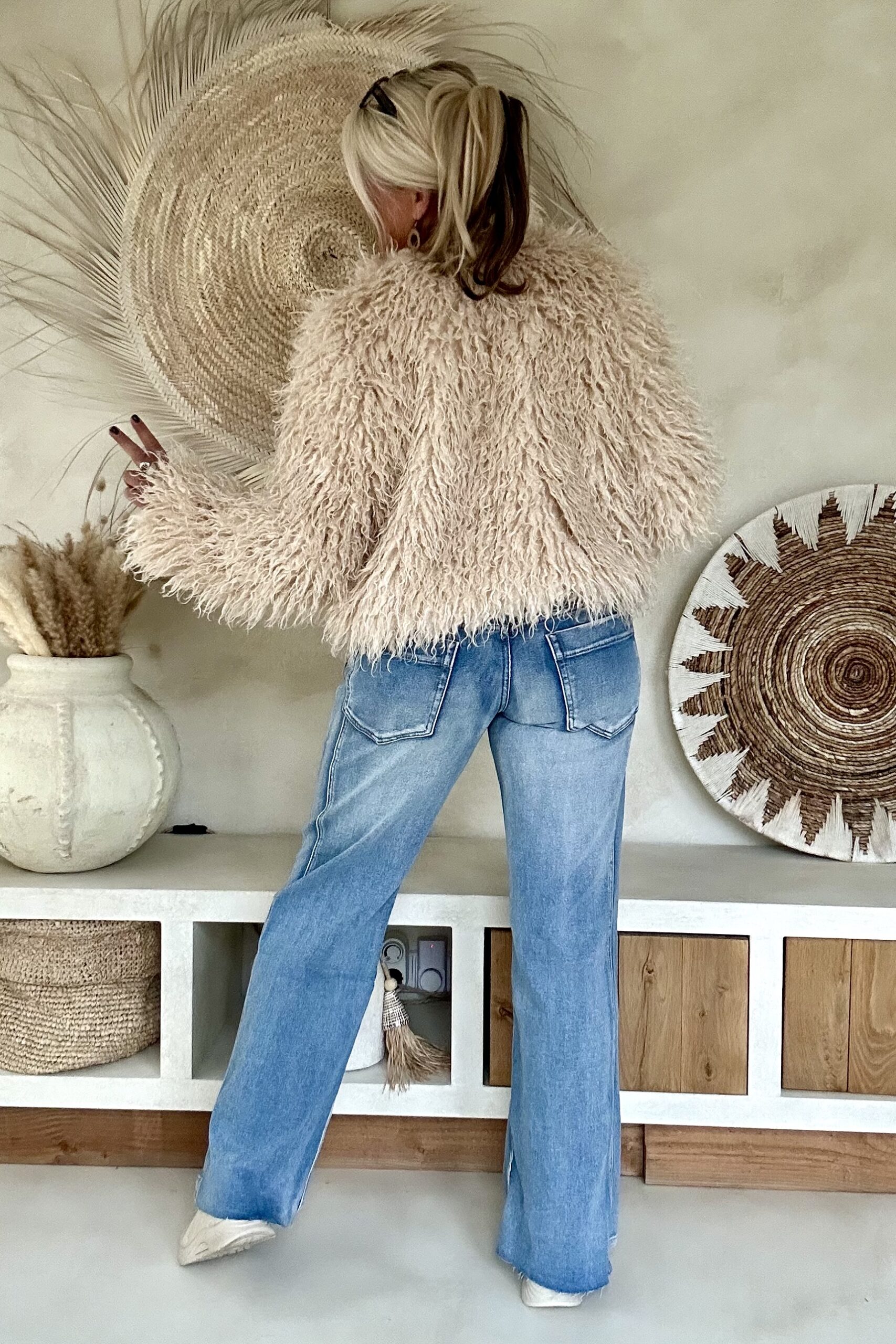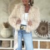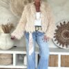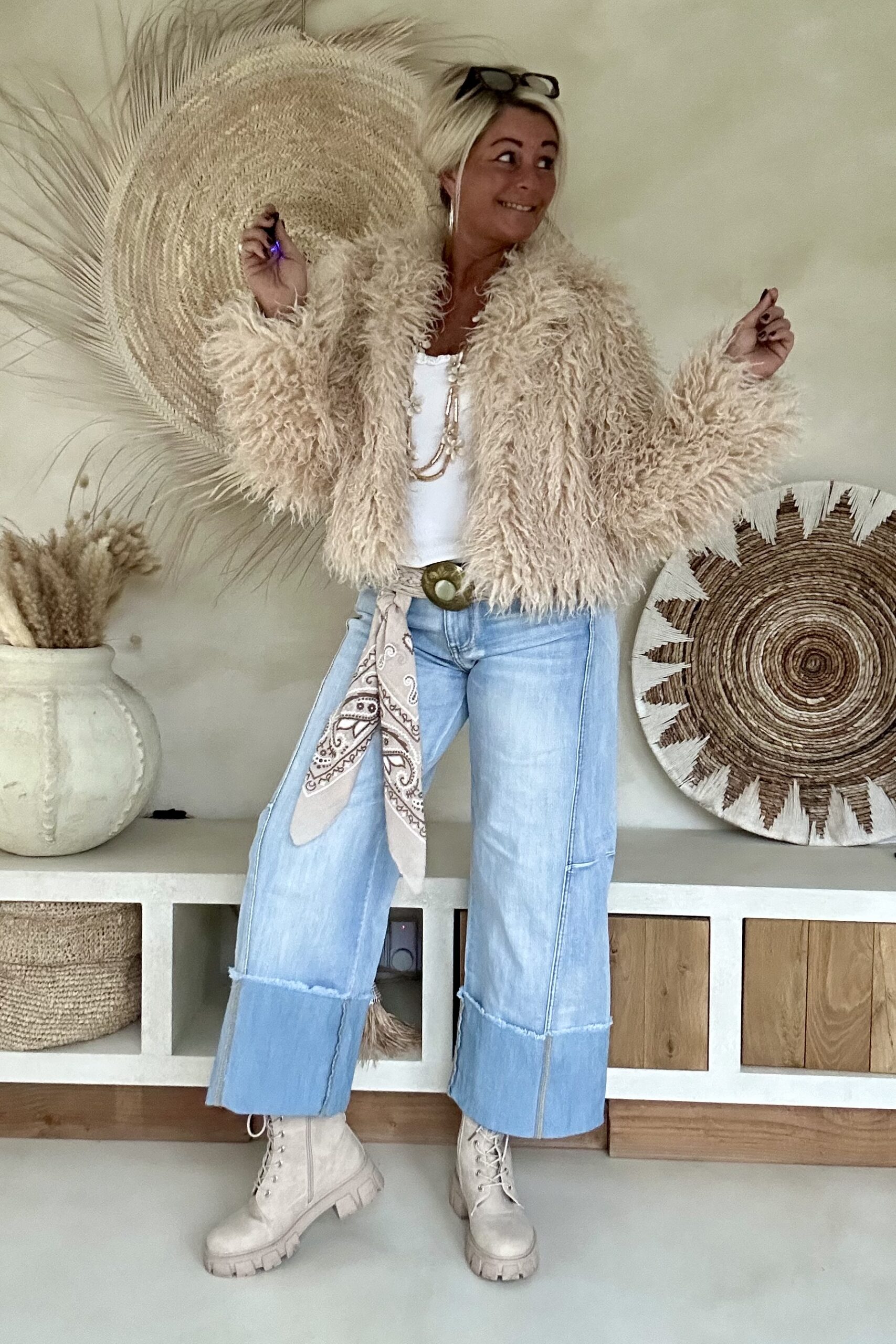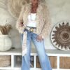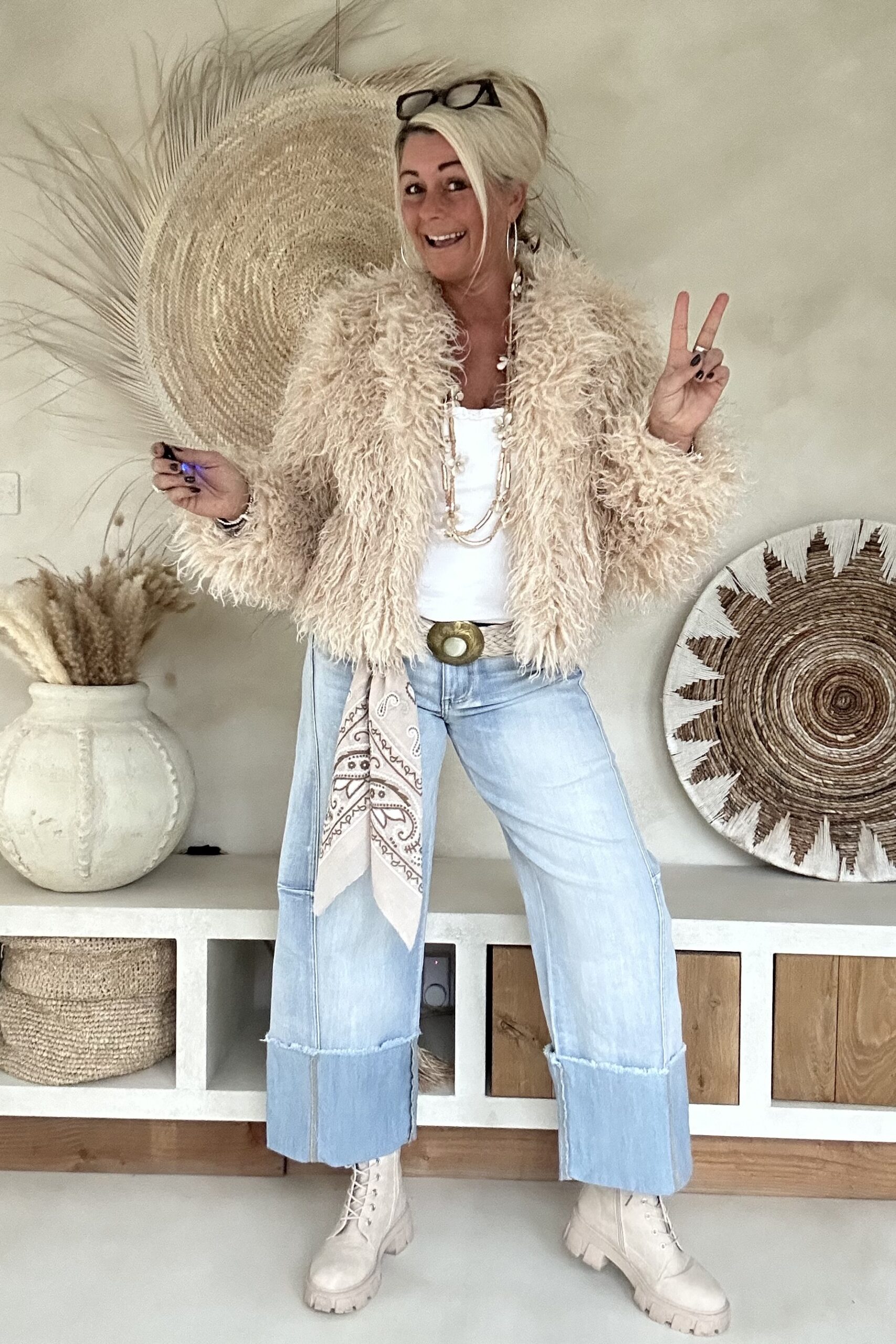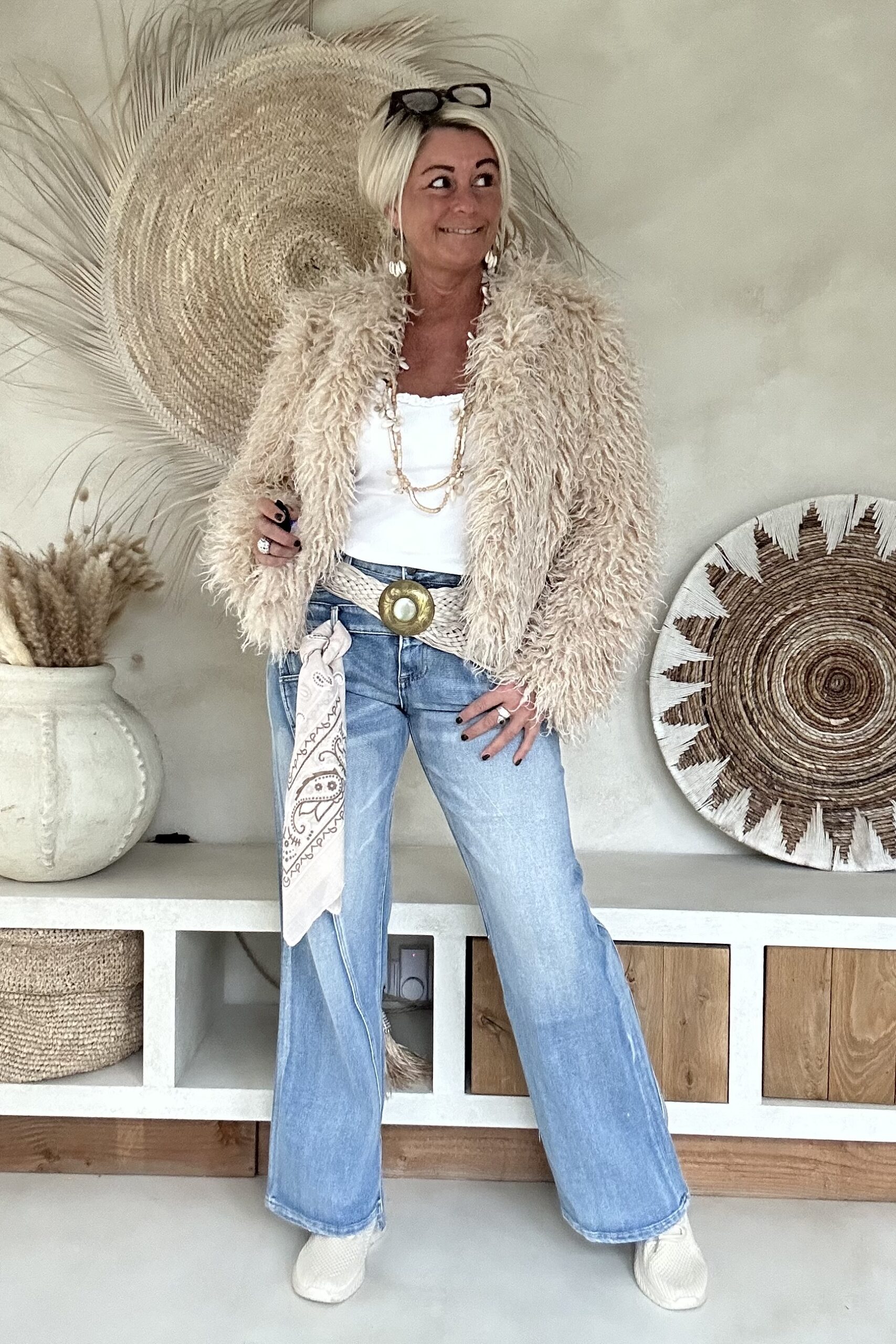 Het jasje sluit met subtiele haakjes aan de voorkant en valt soepel om het lichaam. De zachte fluffy structuur maakt ’m tot een echte eyecatcher zonder overdreven te zijn. Mooi op een jeans of de Charlie jogpant, maar ook heel tof in een boho look over een jurk. Daarnaast laat hij zich ook prima chique stylen.