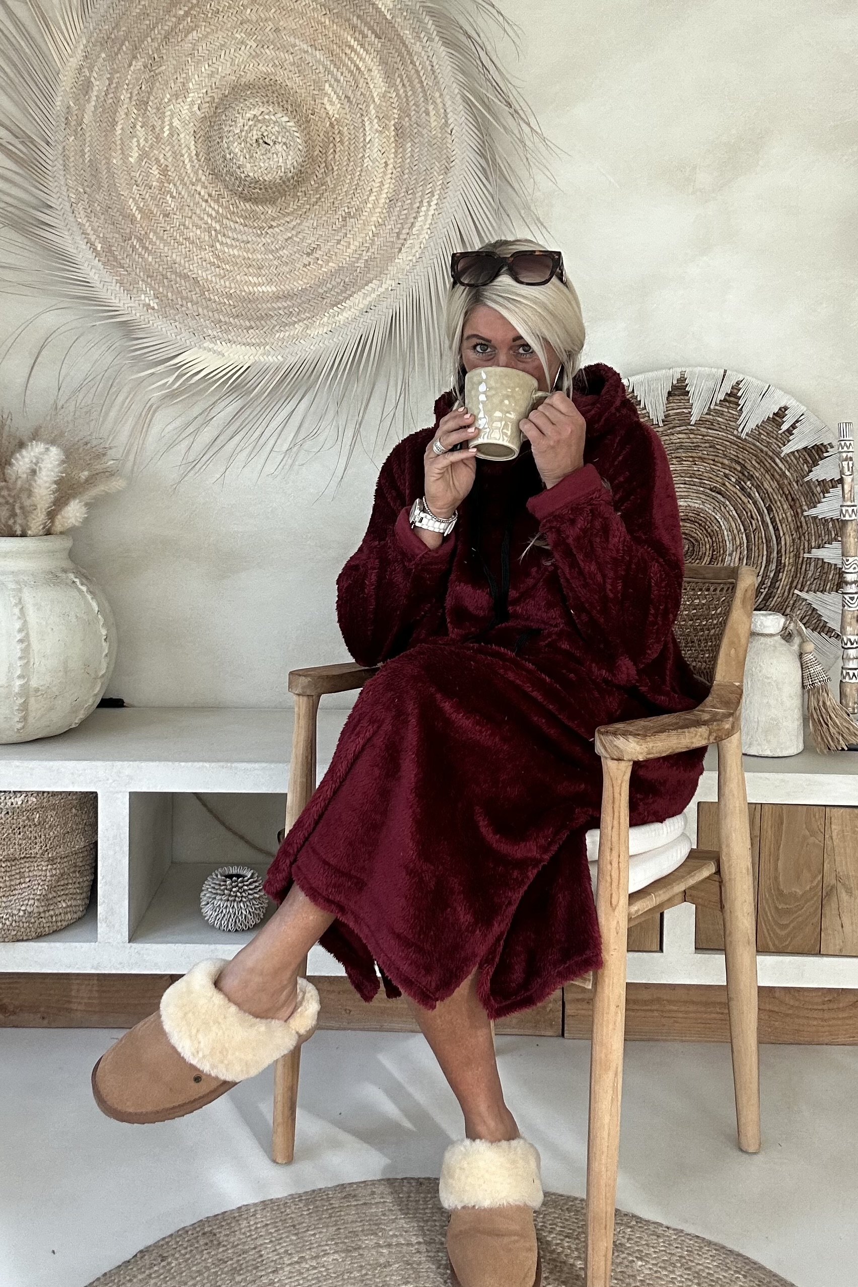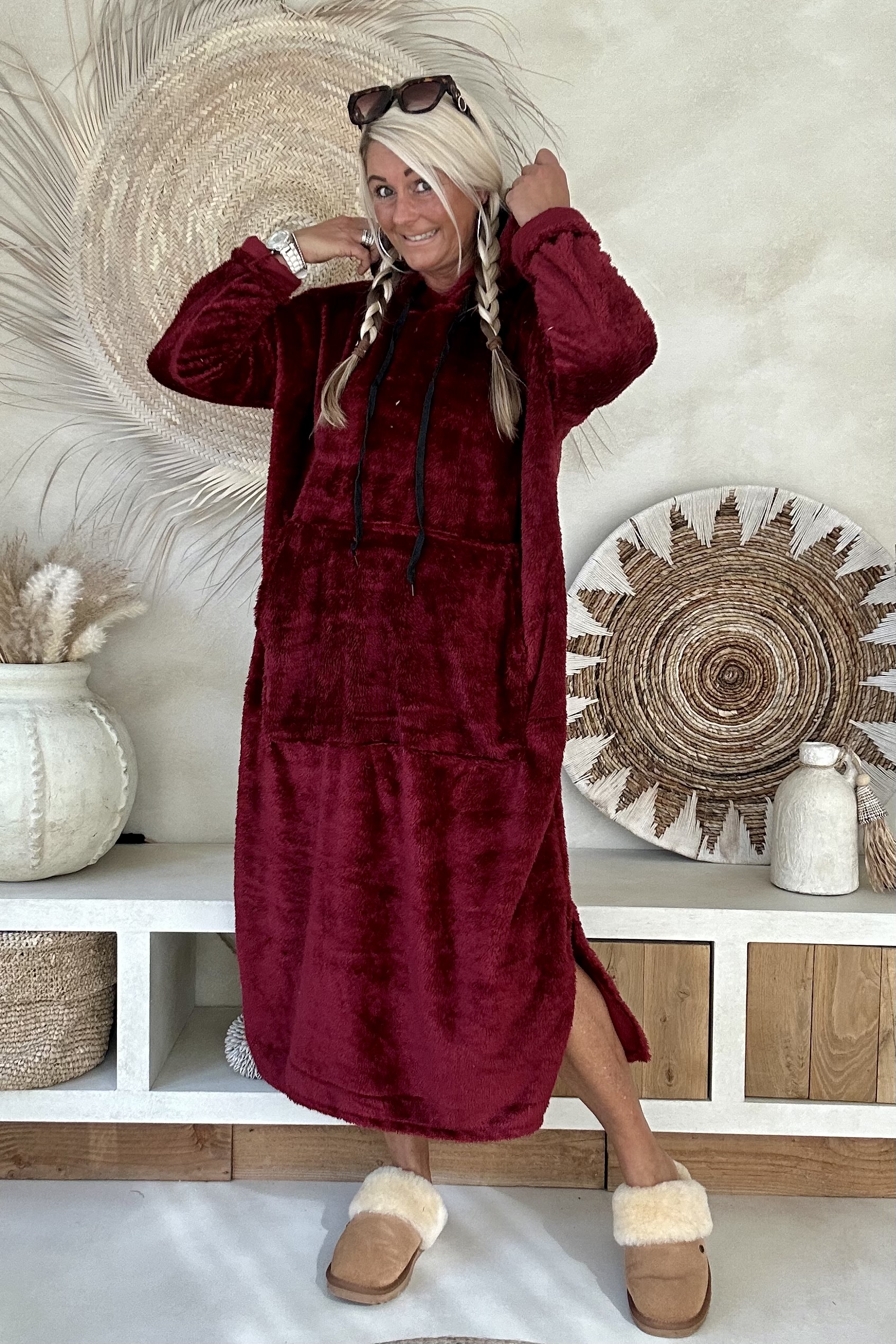 Deze heerlijke fluffy home suits zijn dé musthave voor knusse avonden op de bank, relaxte weekenddagen of koude winterochtenden. Ze voelen superzacht aan en geven je meteen dat cozy gevoel van warmte en comfort. Dankzij de capuchon, grote buidelzak en lange pasvorm kruip je er helemaal in weg. Perfect om jezelf in te verstoppen tijdens een filmavond of om gewoon lekker comfortabel door het huis te lopen.