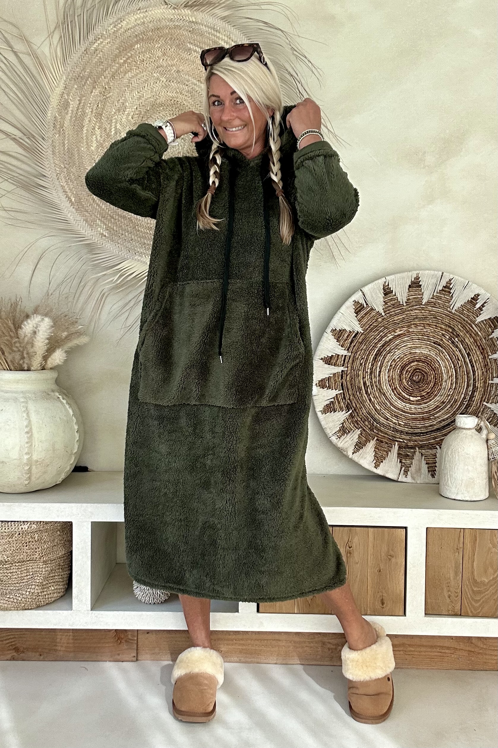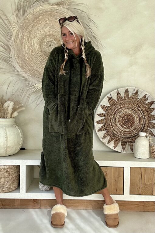 Deze heerlijke fluffy home suits zijn dé musthave voor knusse avonden op de bank, relaxte weekenddagen of koude winterochtenden. Ze voelen superzacht aan en geven je meteen dat cozy gevoel van warmte en comfort. Dankzij de capuchon, grote buidelzak en lange pasvorm kruip je er helemaal in weg. Perfect om jezelf in te verstoppen tijdens een filmavond of om gewoon lekker comfortabel door het huis te lopen.