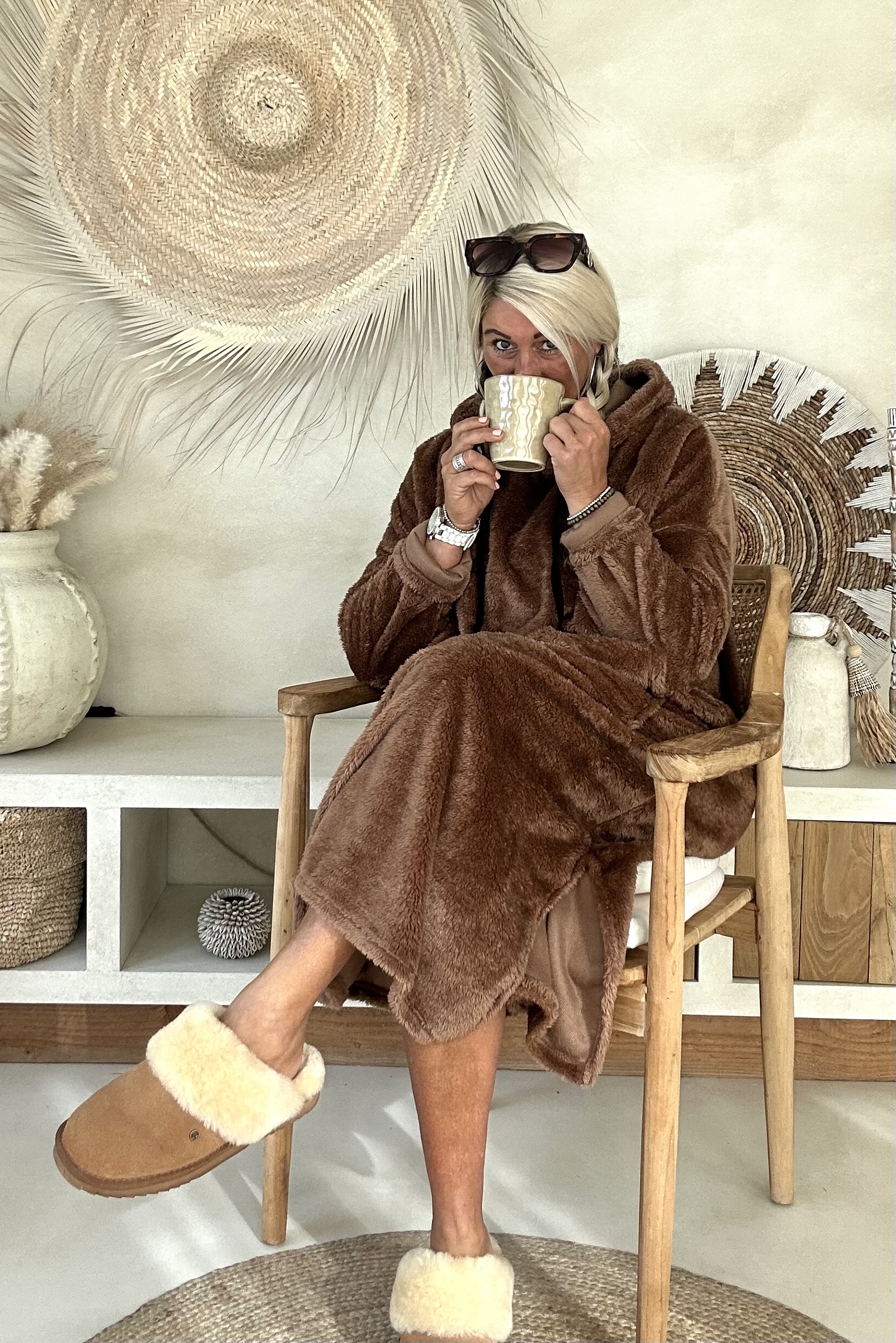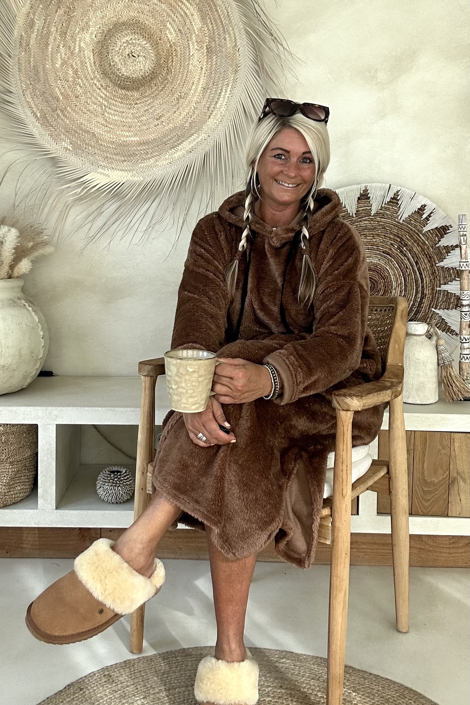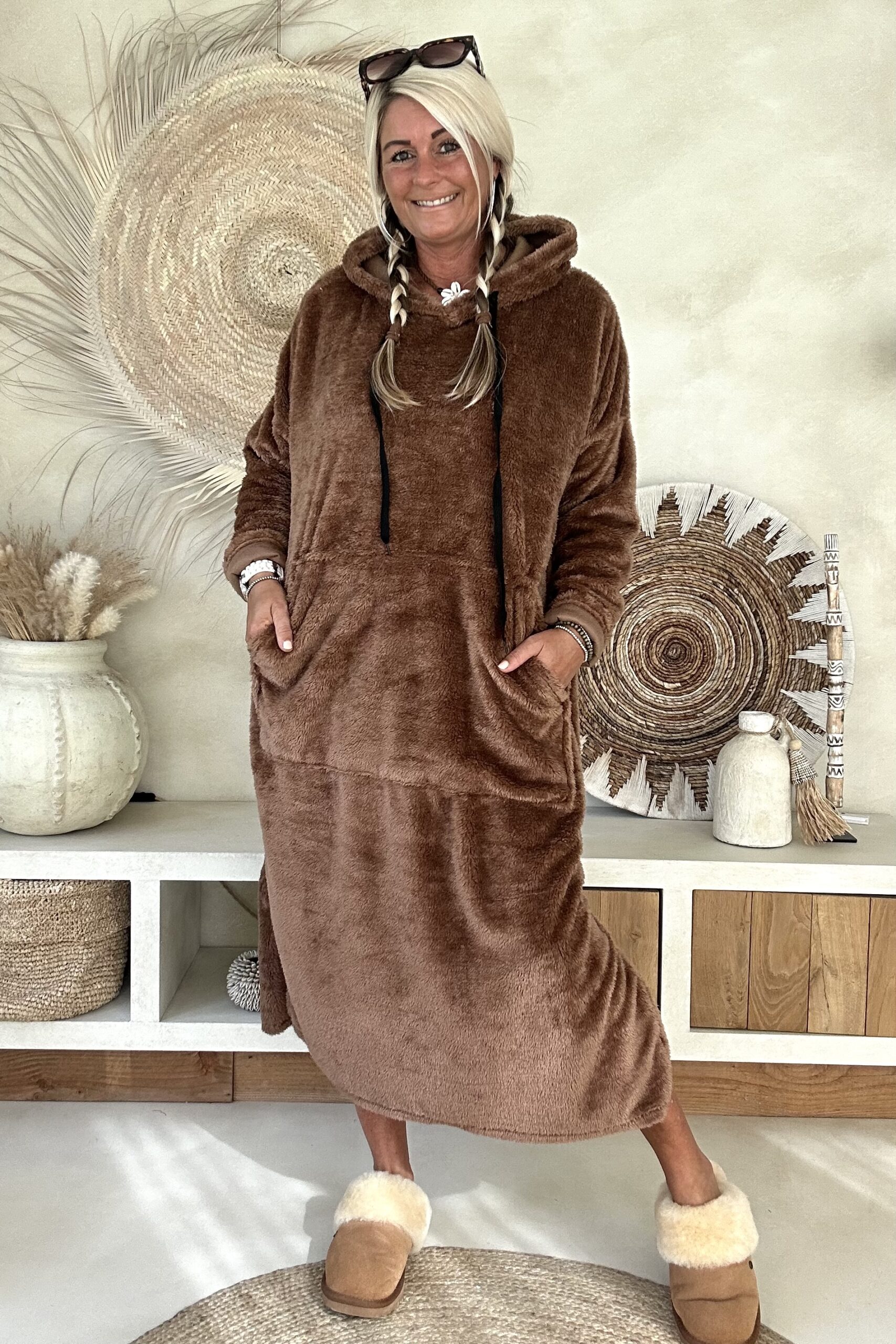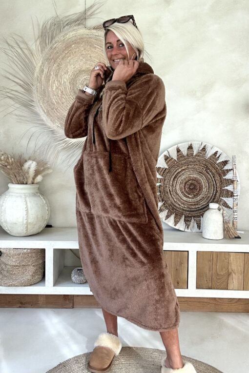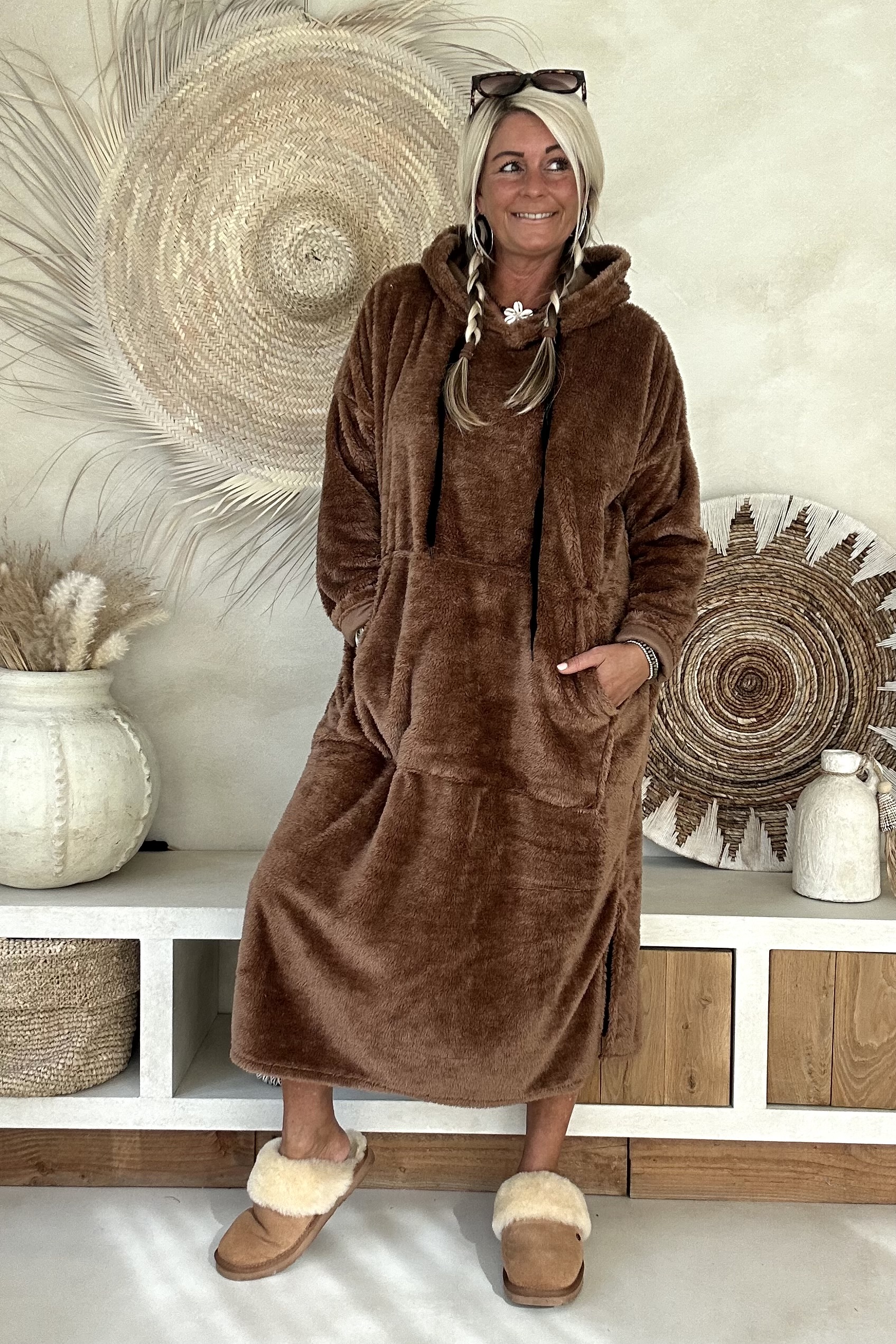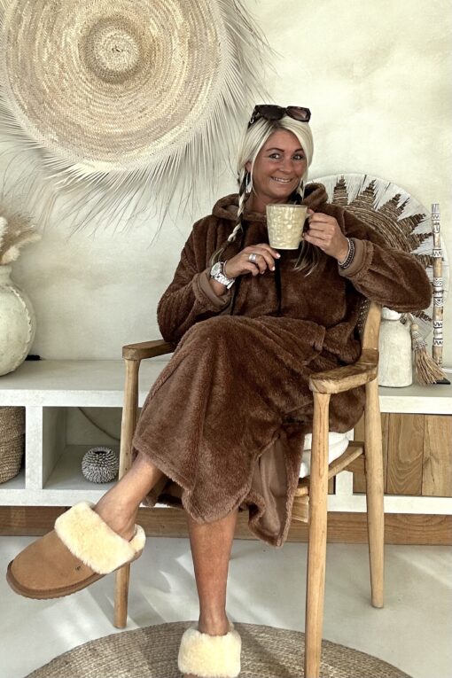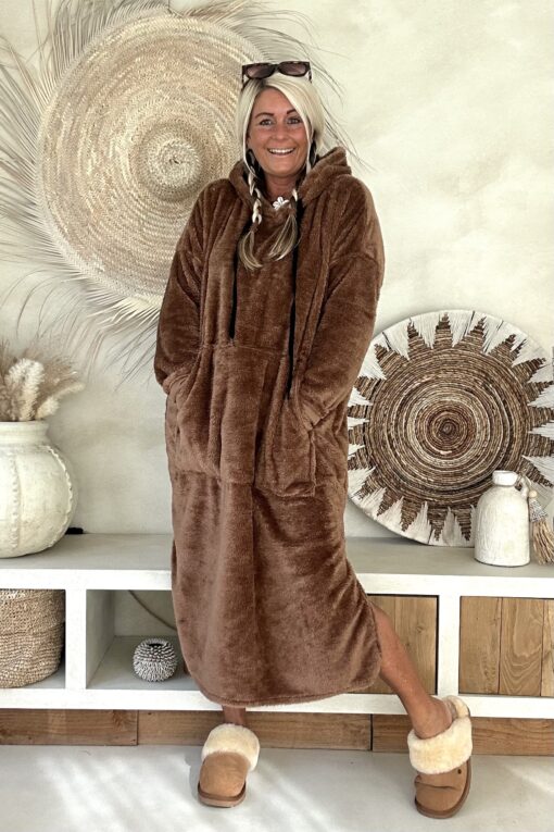 Deze heerlijke fluffy home suits zijn dé musthave voor knusse avonden op de bank, relaxte weekenddagen of koude winterochtenden. Ze voelen superzacht aan en geven je meteen dat cozy gevoel van warmte en comfort. Dankzij de capuchon, grote buidelzak en lange pasvorm kruip je er helemaal in weg. Perfect om jezelf in te verstoppen tijdens een filmavond of om gewoon lekker comfortabel door het huis te lopen.