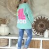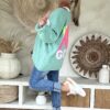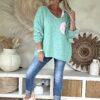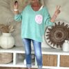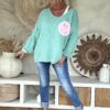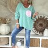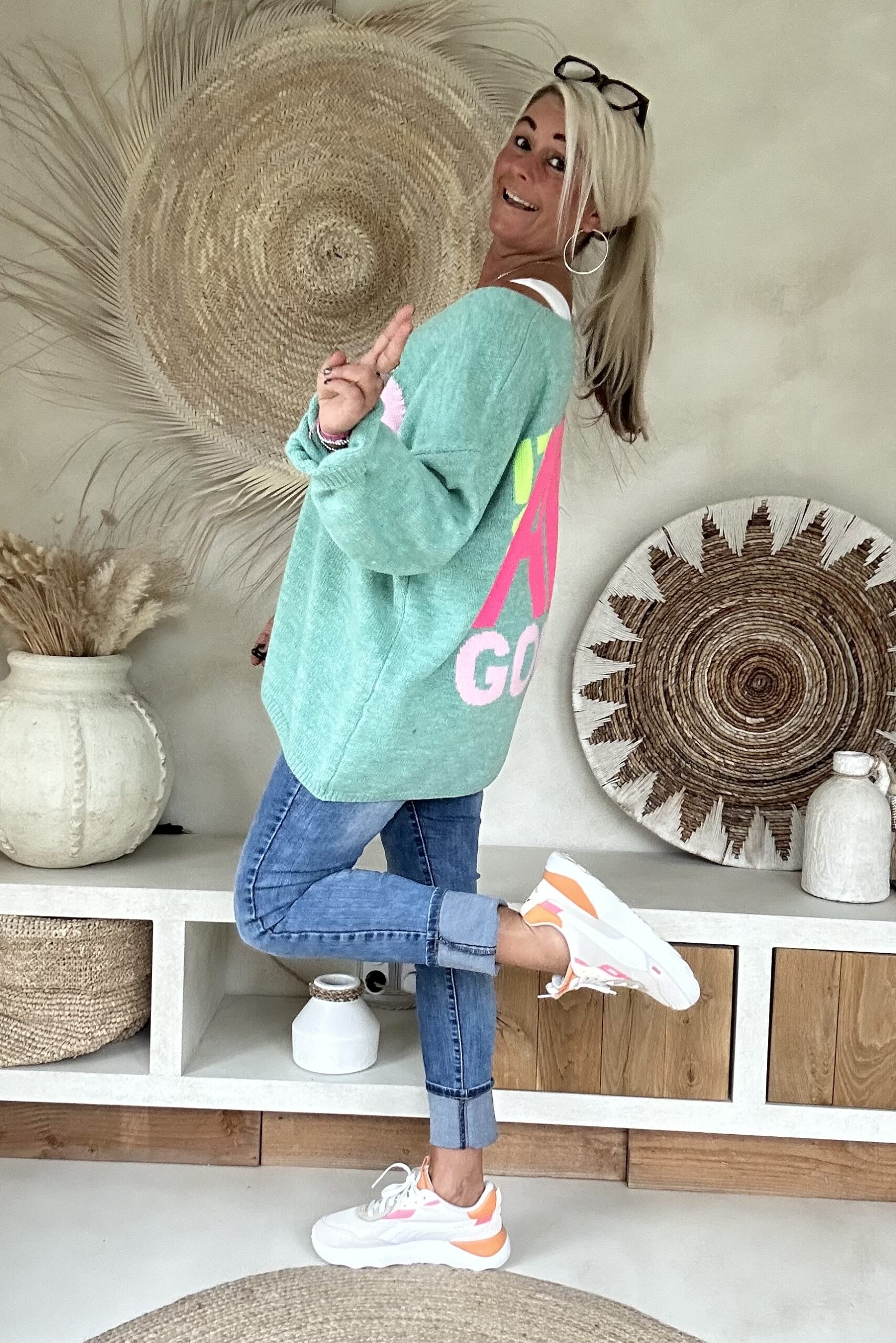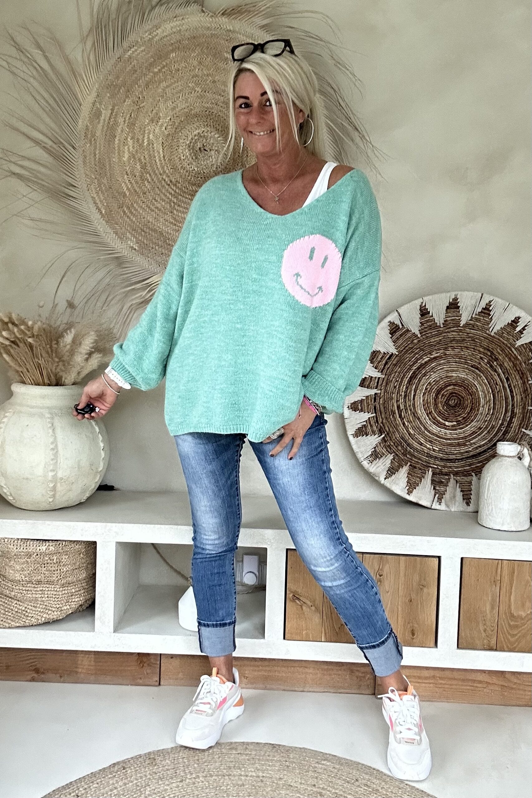 Gebreide Trui Macy met Smiley en Backprint, Aqua.