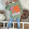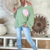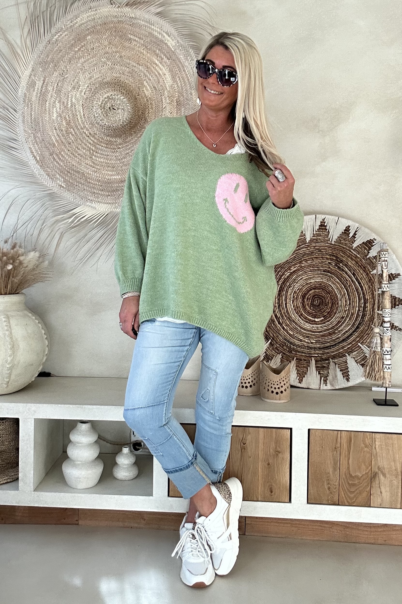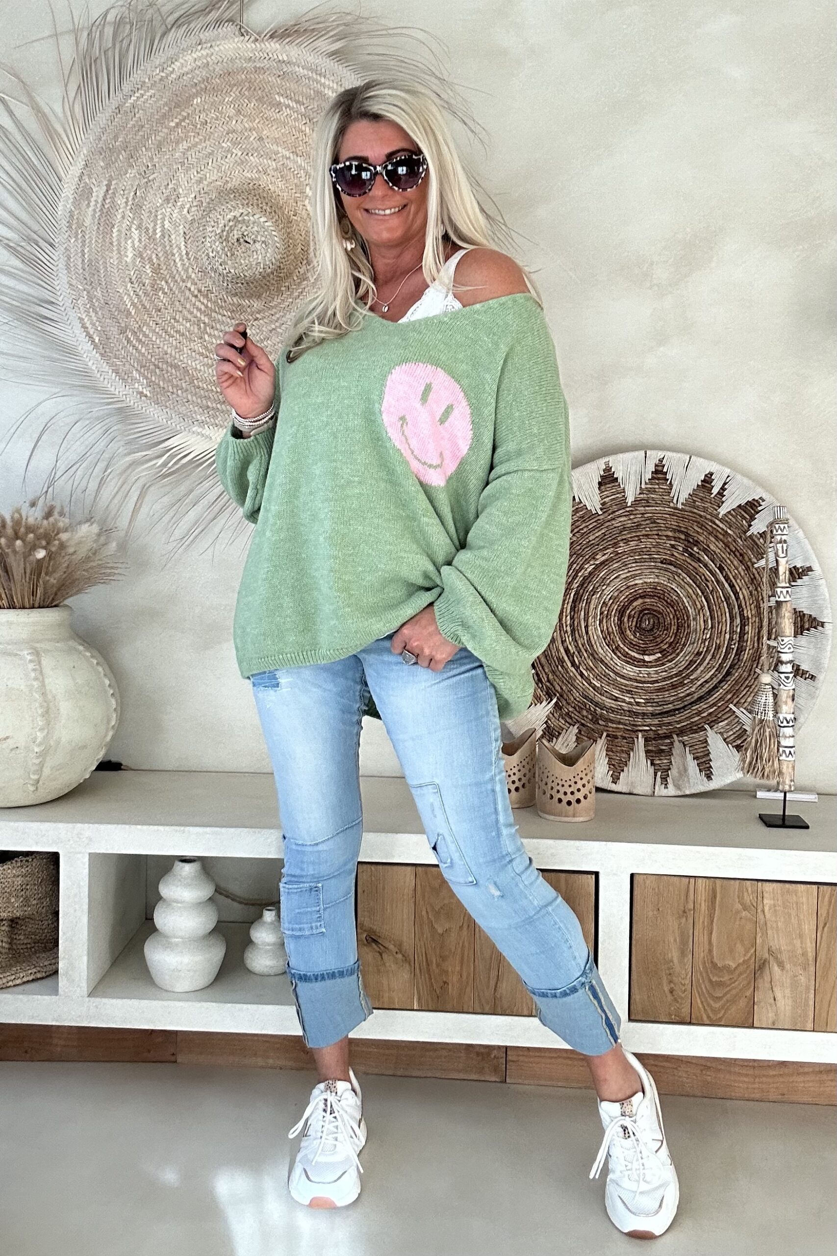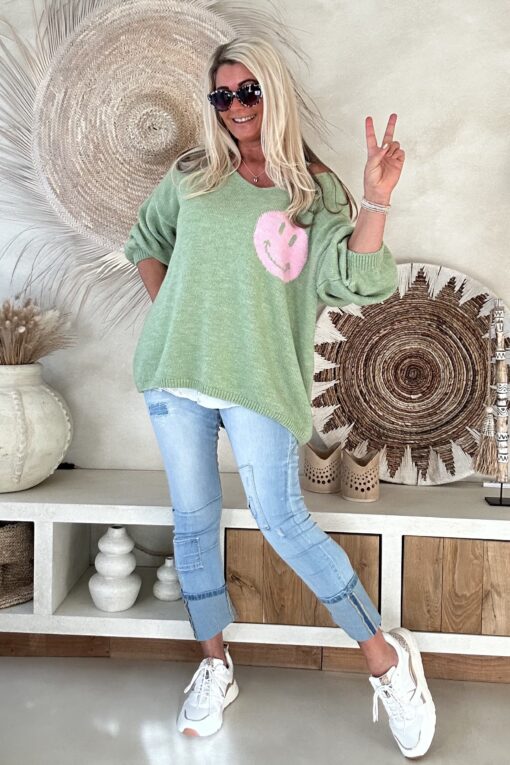 Gebreide Trui Macy met Smiley en Backprint, Groen.