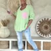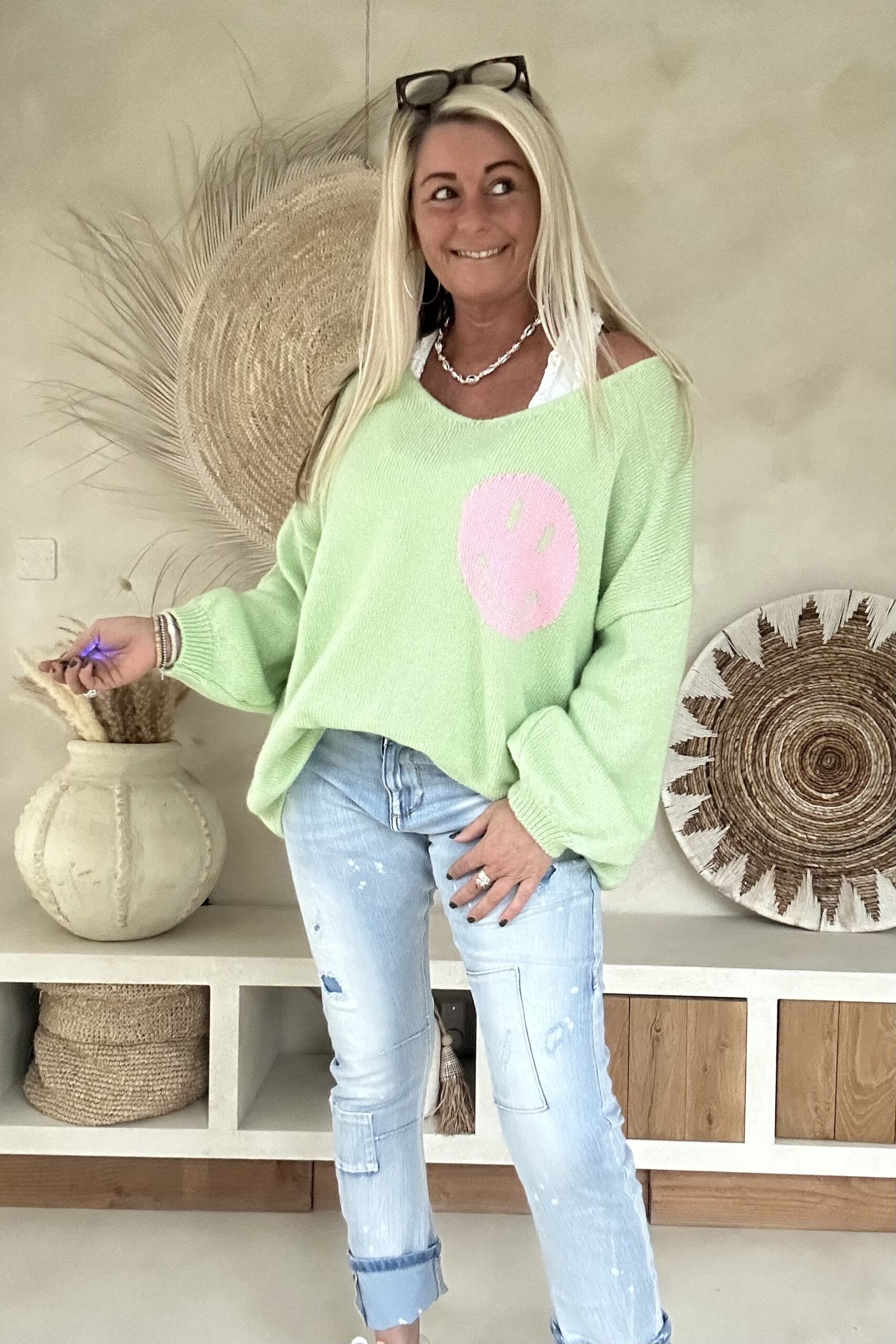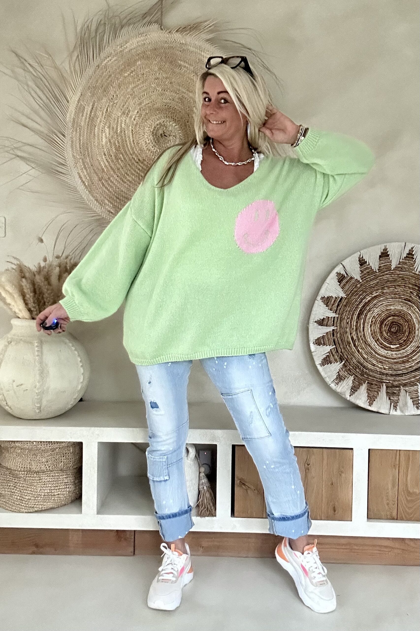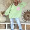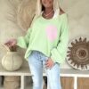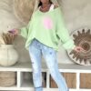 Gebreide Trui Macy met Smiley en Backprint, Pastel Groen.
