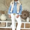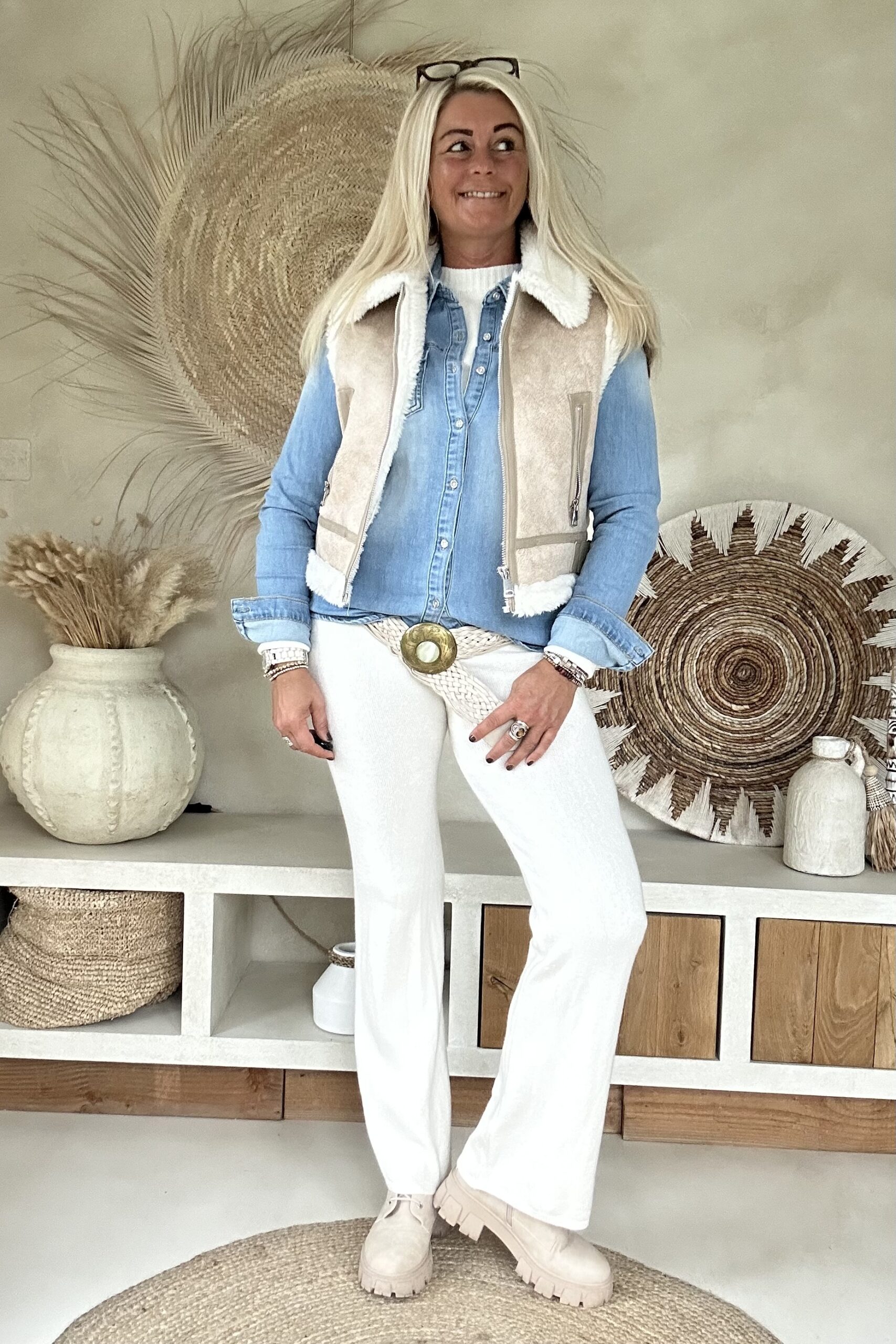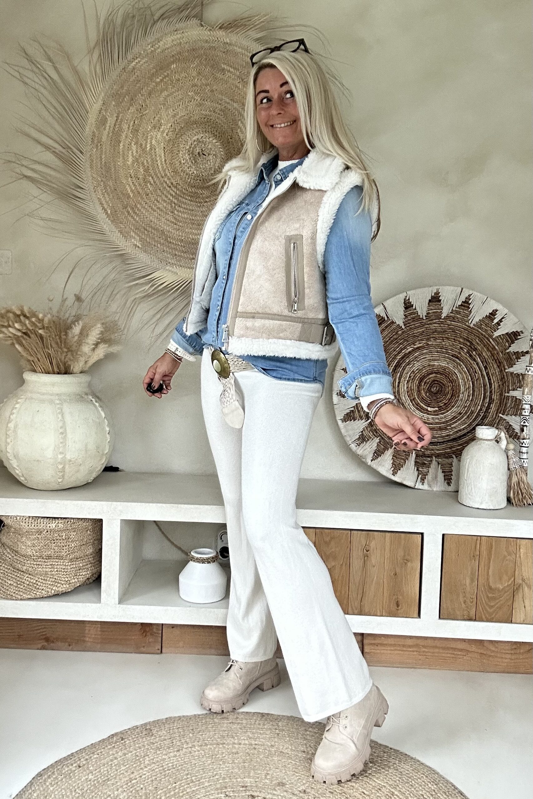 Deze imitatie lammy bodywarmer is een stoer en stijlvol item dat je outfit meteen een cozy uitstraling geeft. Het model heeft een rits aan de voorzijde en twee handige zakken. De zachte voering en de warme look maken hem ideaal voor laagjes in de koudere seizoenen. One size, passend t/m maat 40. Leuk en veelzijdig te dragen op een jeans, maar ook helemaal boho met een jurk, rok of flared broek.