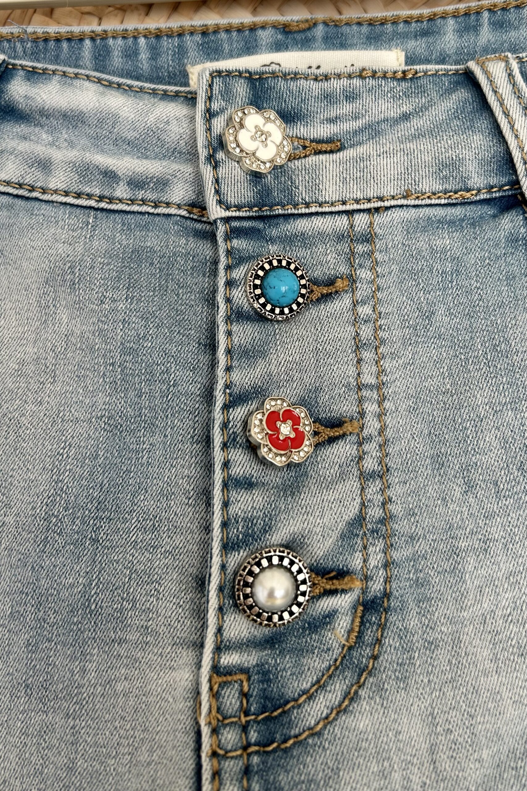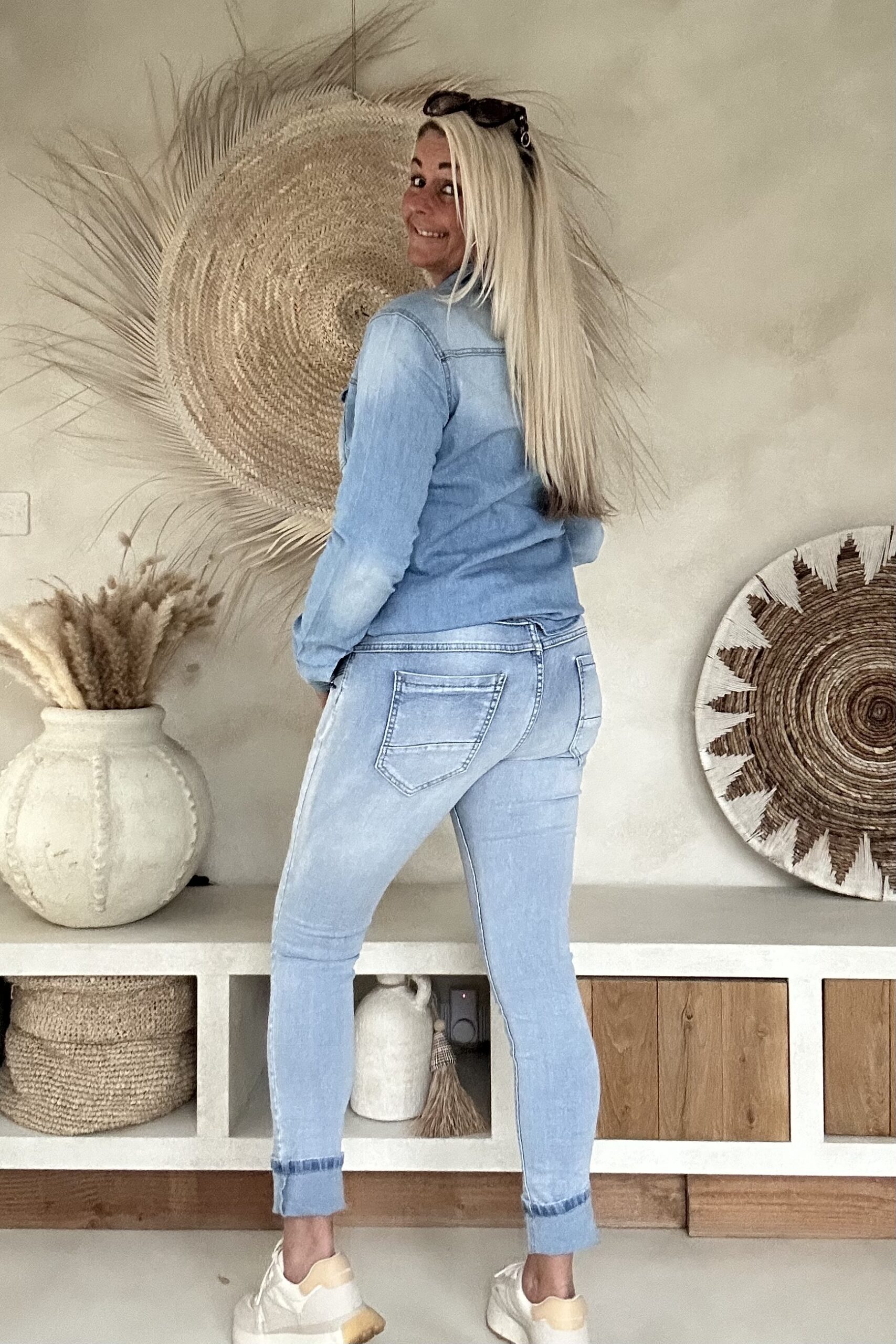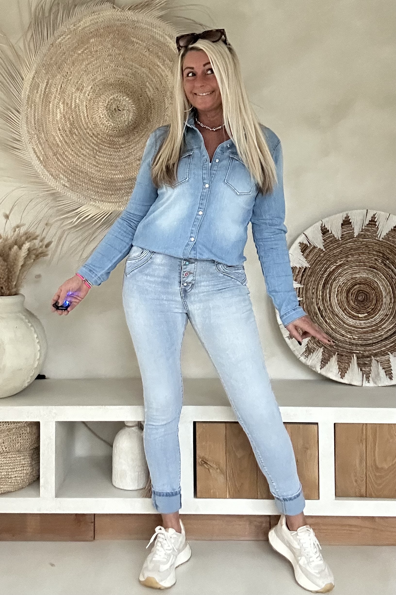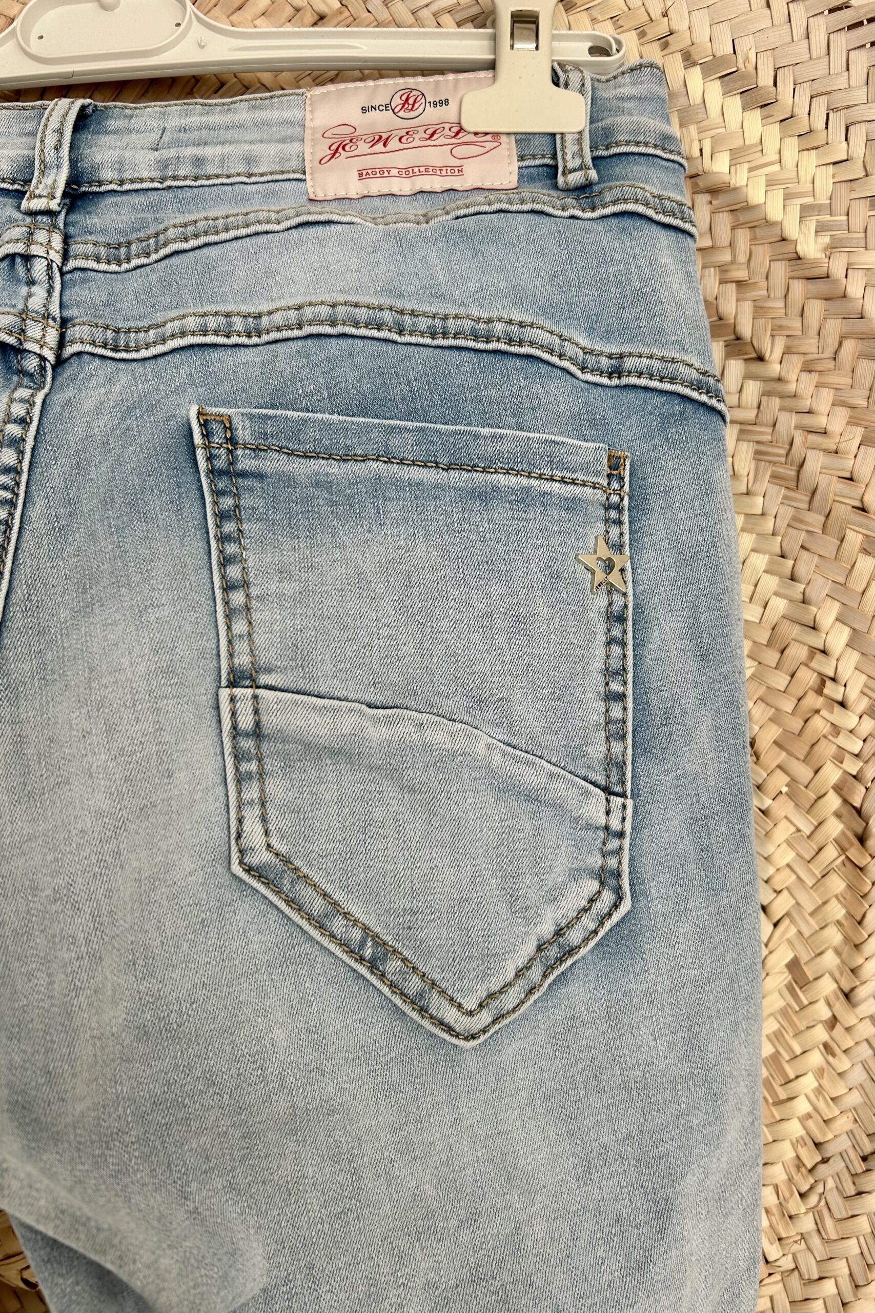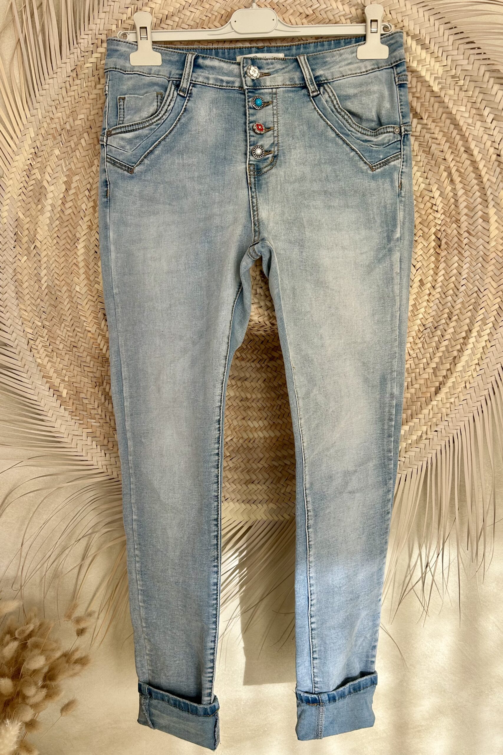 Jewelly Baggy Jeans Licht Blauw met Bewerkte knopen. (JP2627)