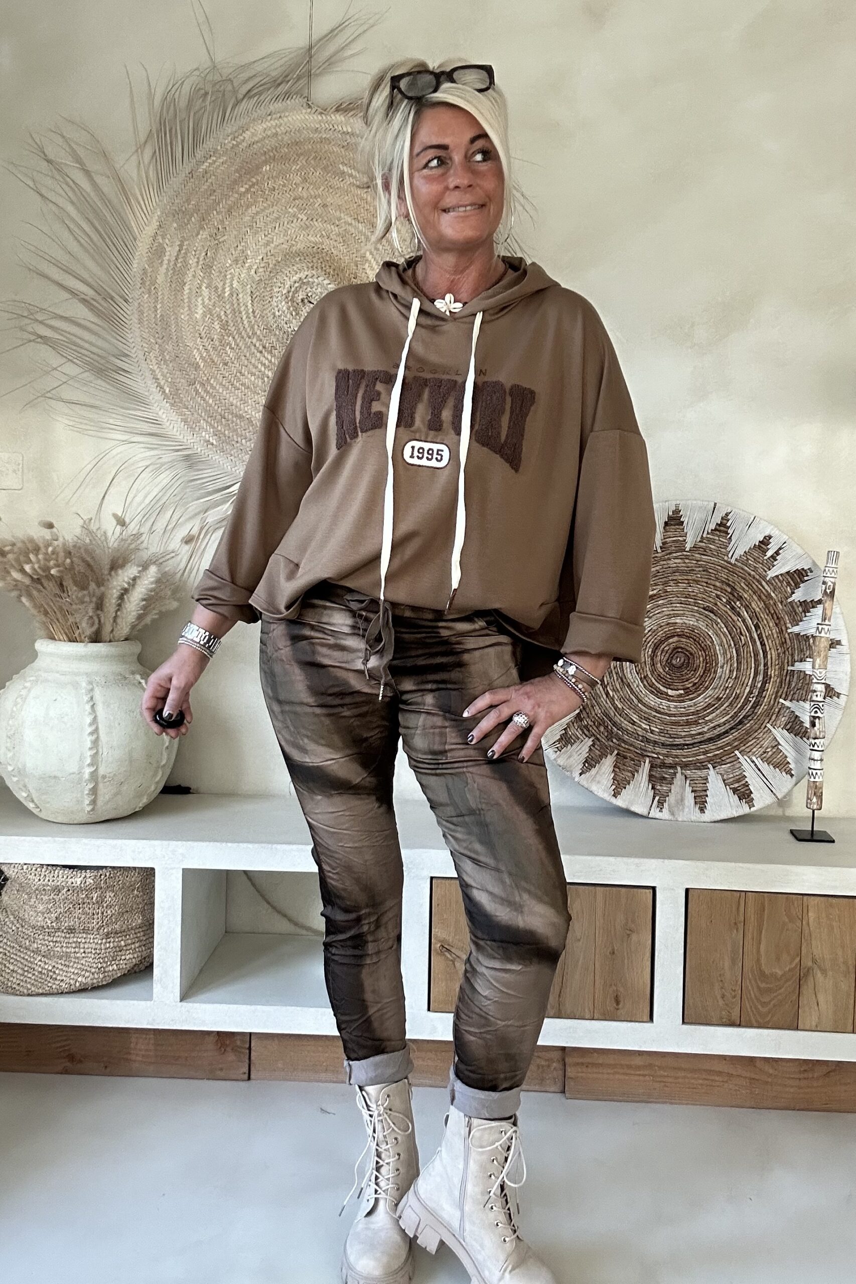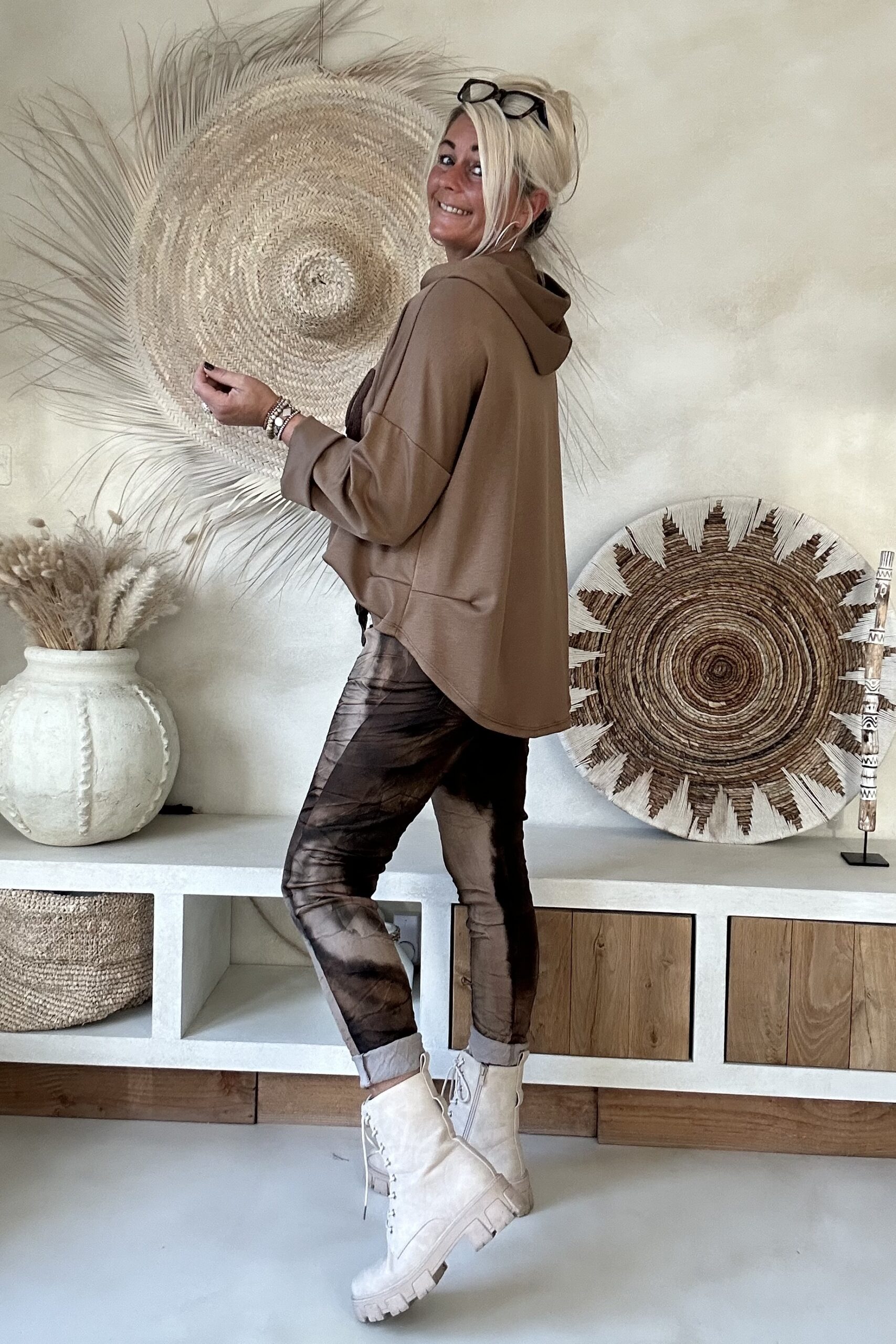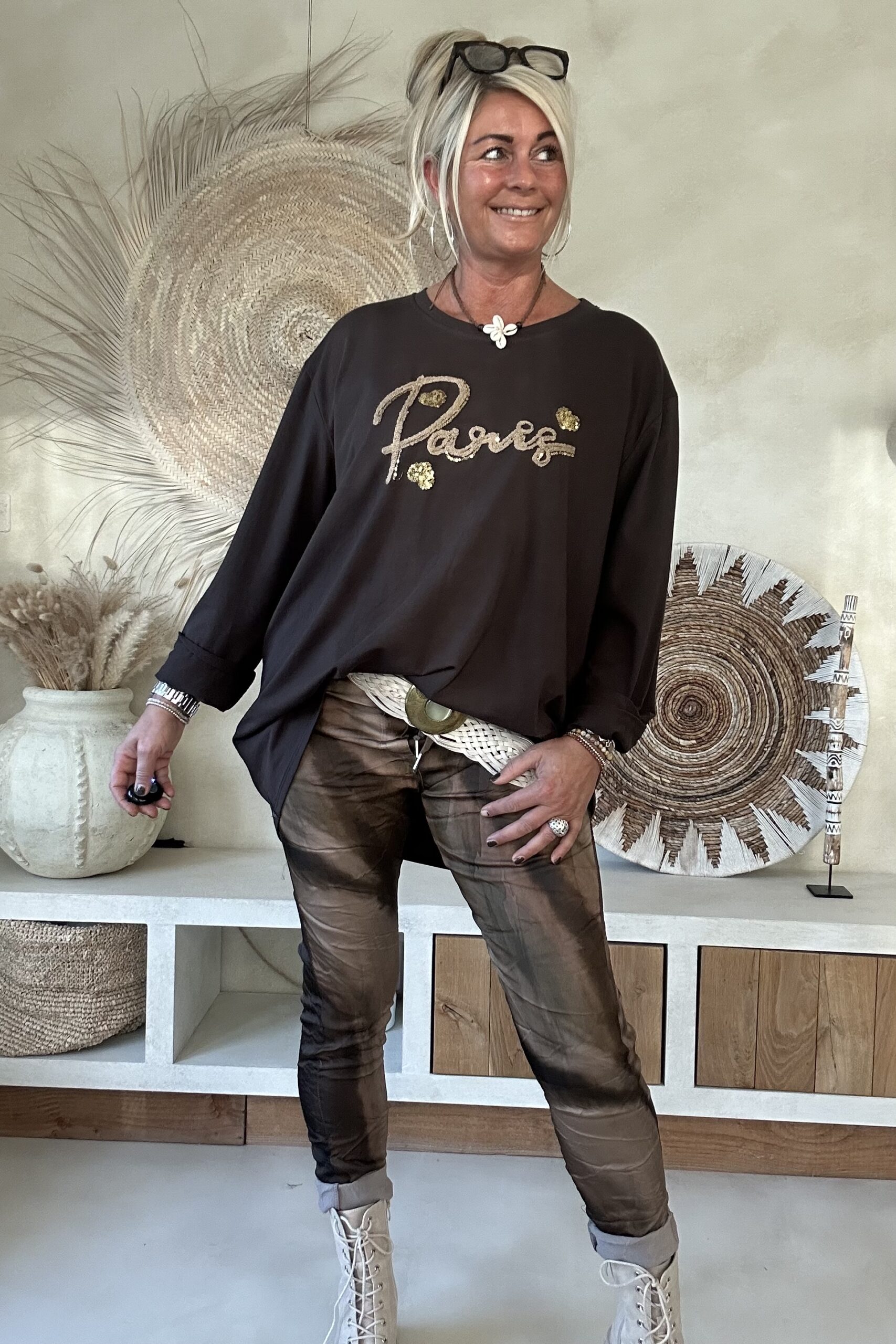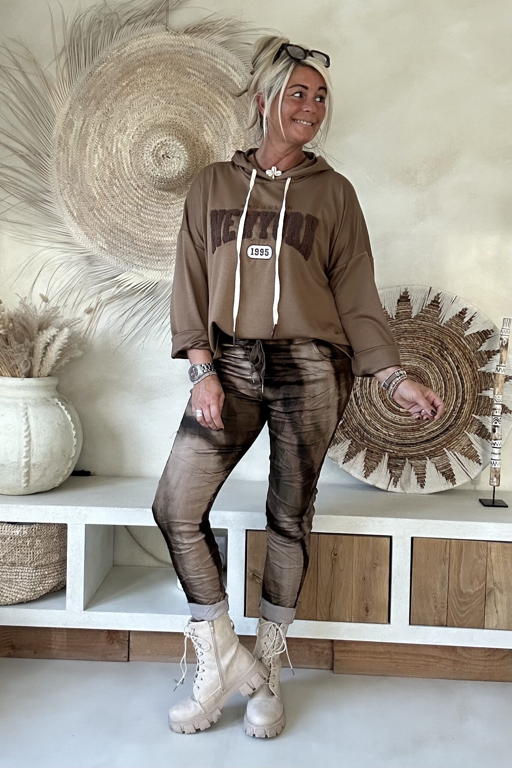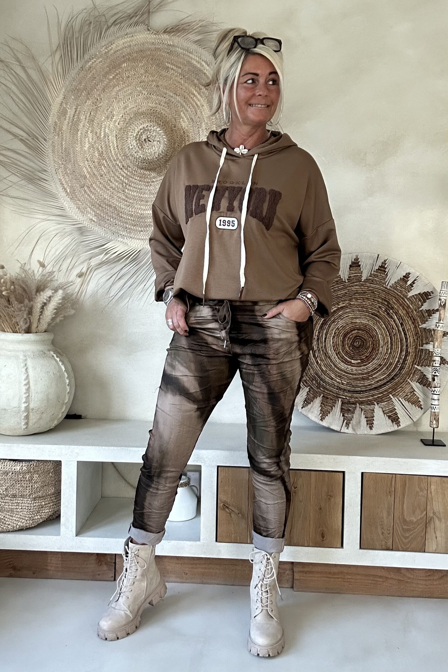 • Elastieken band met aantrek koord in de taille.