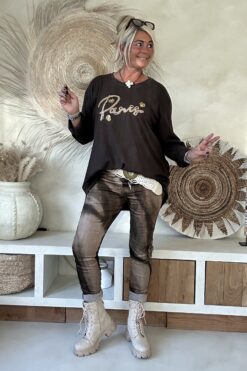 Jogpant Satijnglans Charlie Flame, Bruin/Groen.