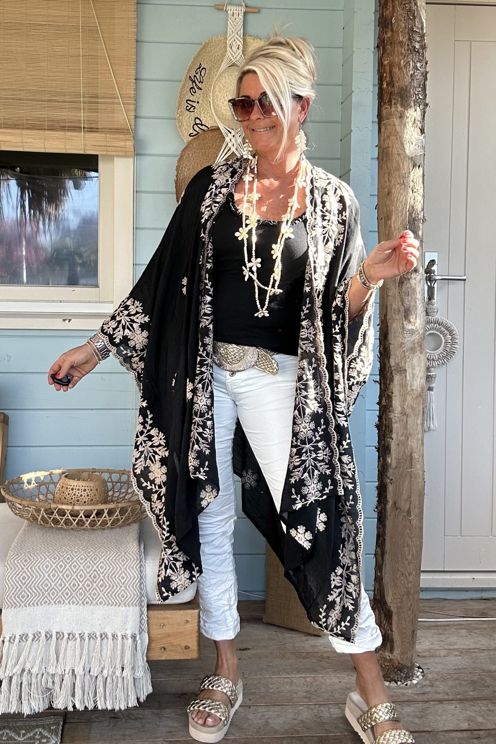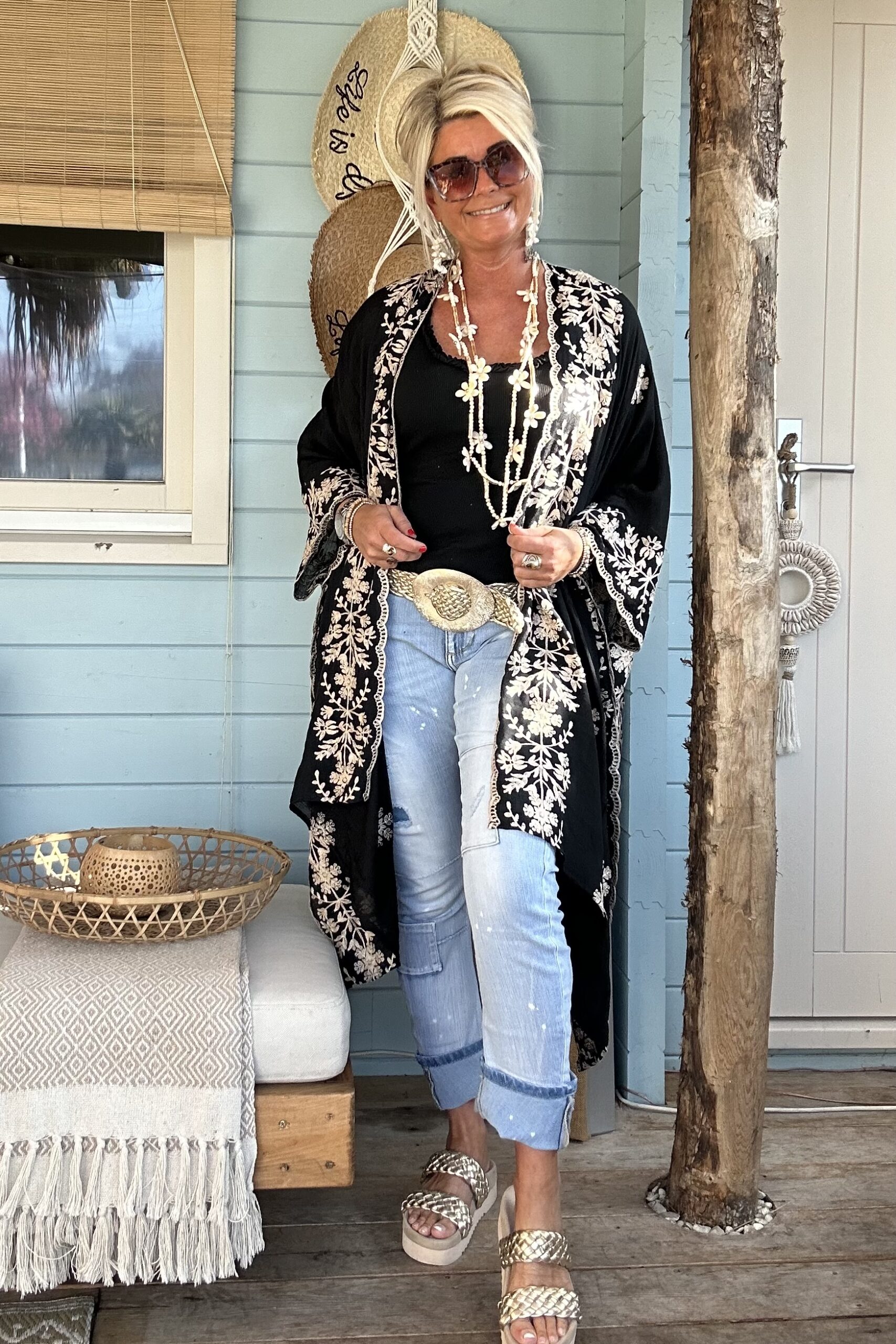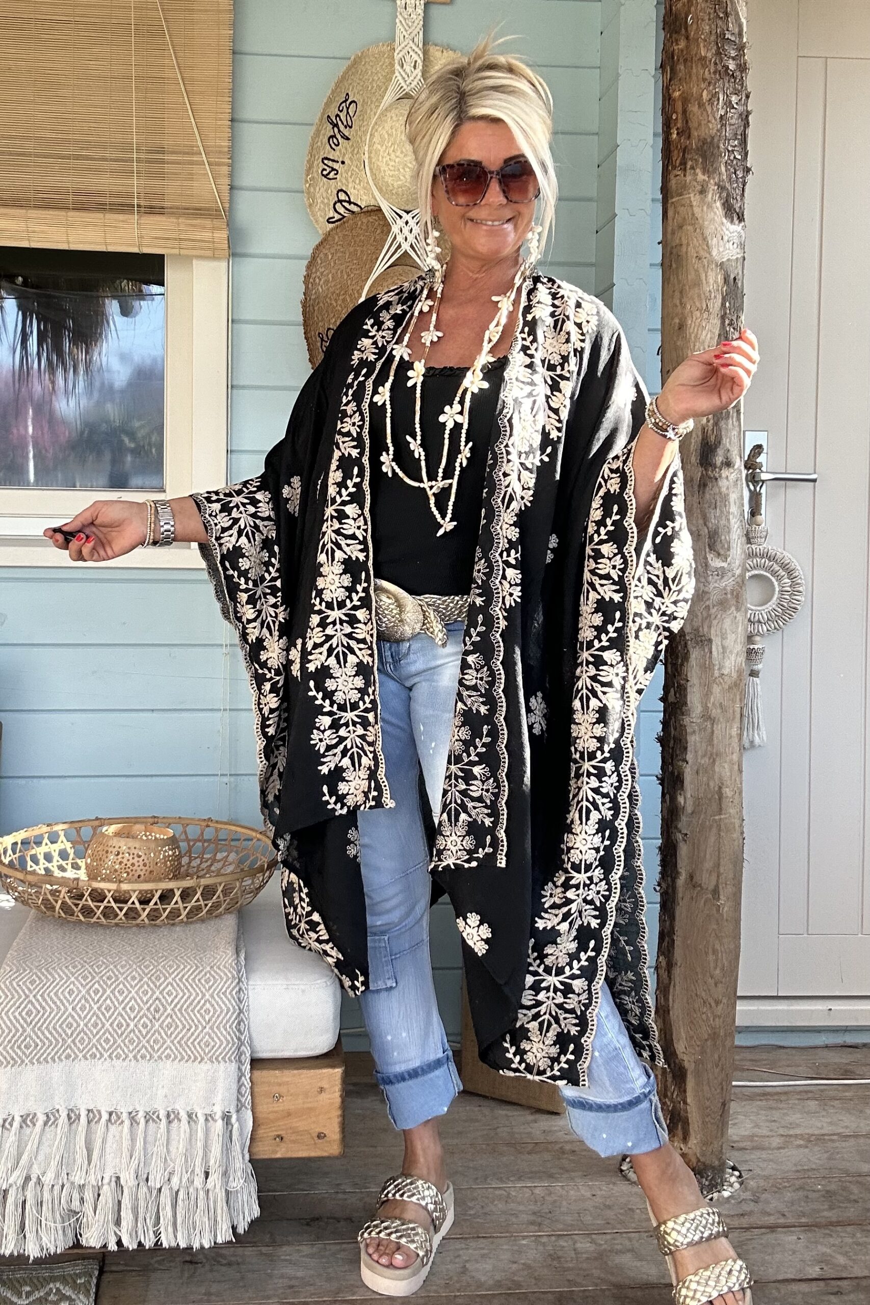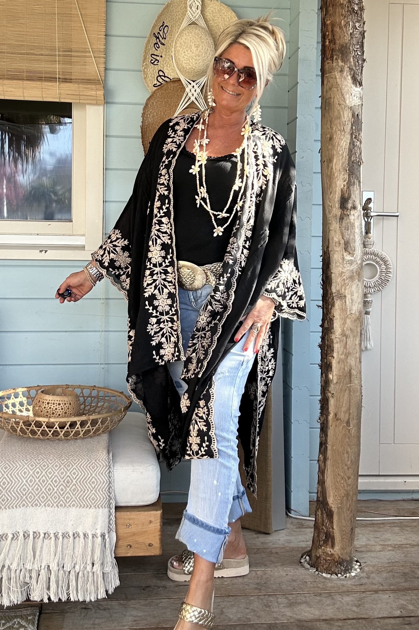 Luchtige Kimono / Poncho met Borduursels