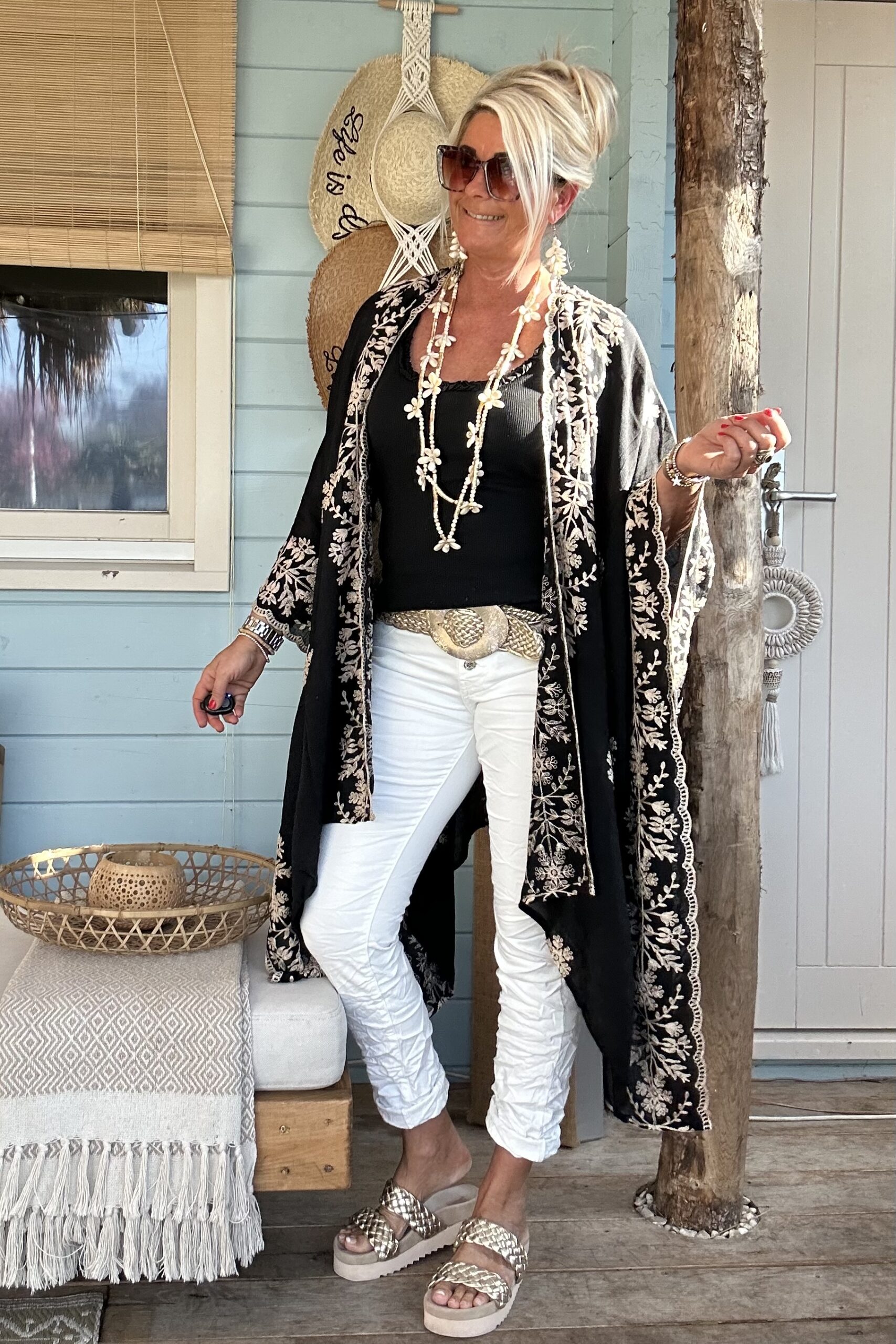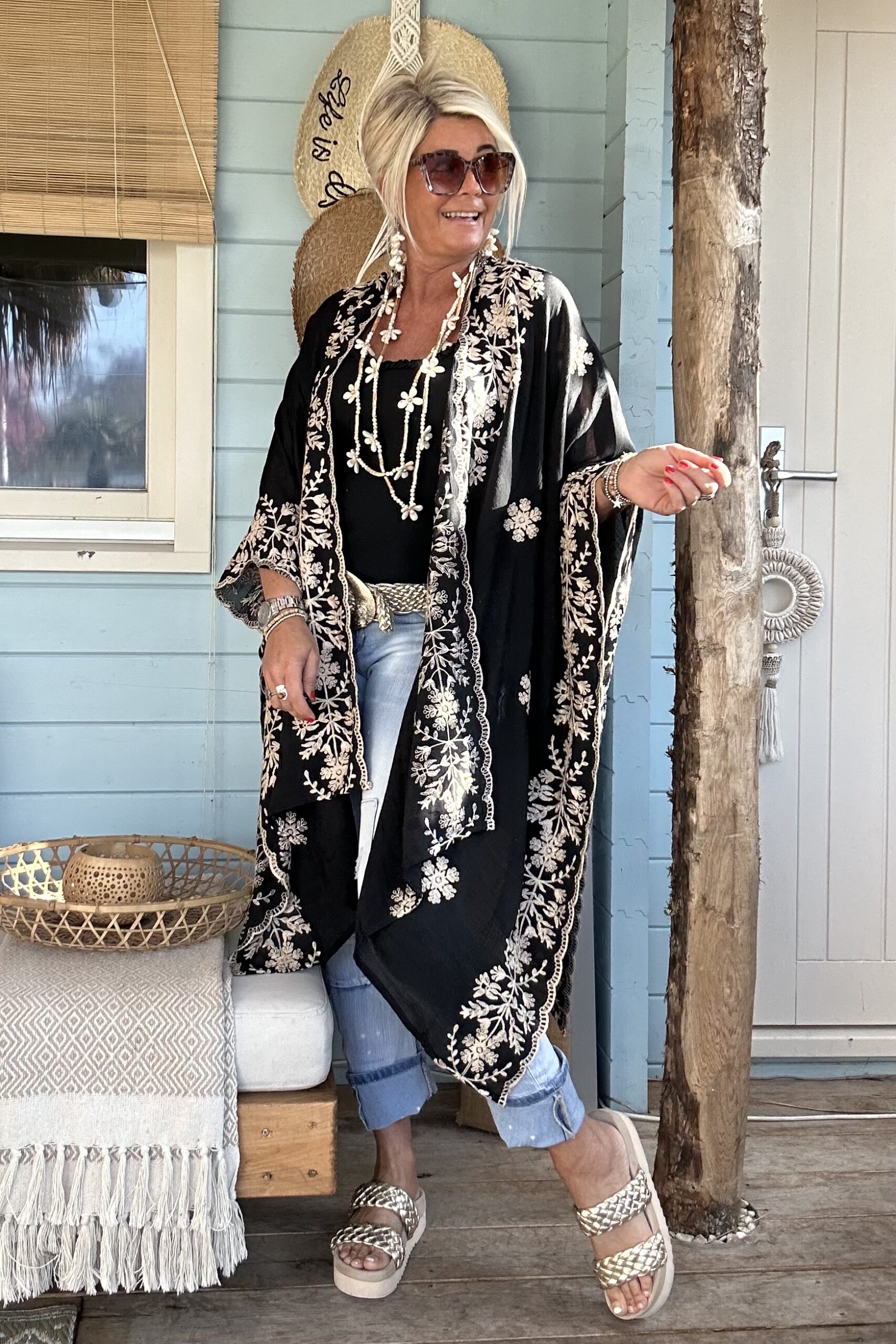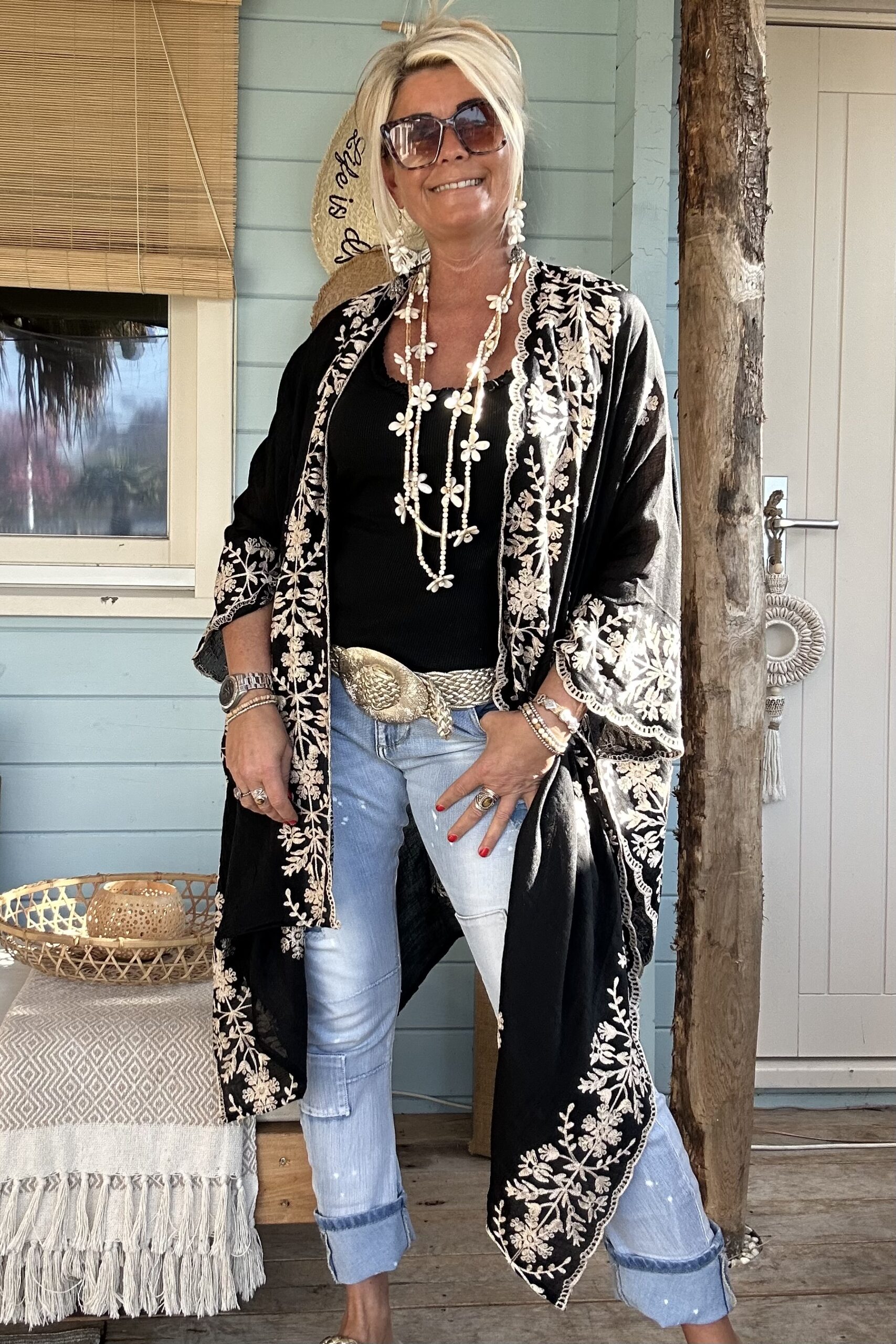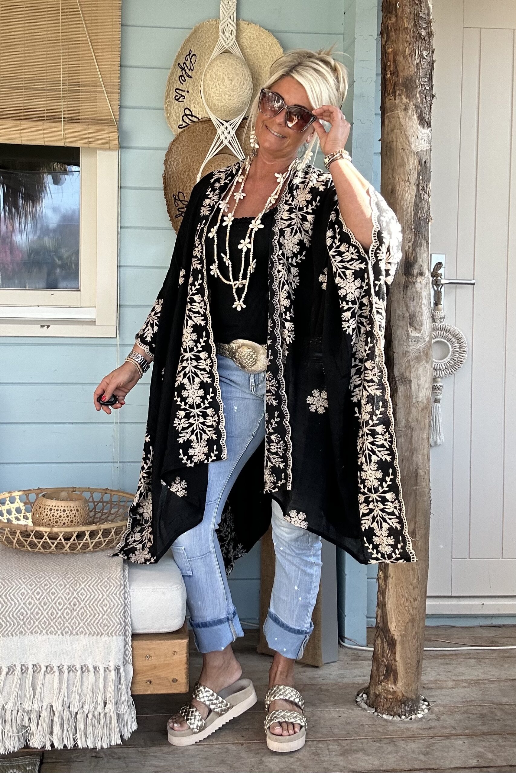 Luchtige Kimono / Poncho met Borduursels