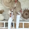 Deze knitwear omslagdoek is zo’n item dat je er in het voorjaar steeds weer bij pakt 🤍 De zachte, gebreide structuur in een warme naturel tint geeft direct een boho en stijlvolle uitstraling. Dankzij de imitatie leren lus met riempje blijft de omslagdoek mooi op z’n plek en krijgt het geheel net dat stoere detail.
