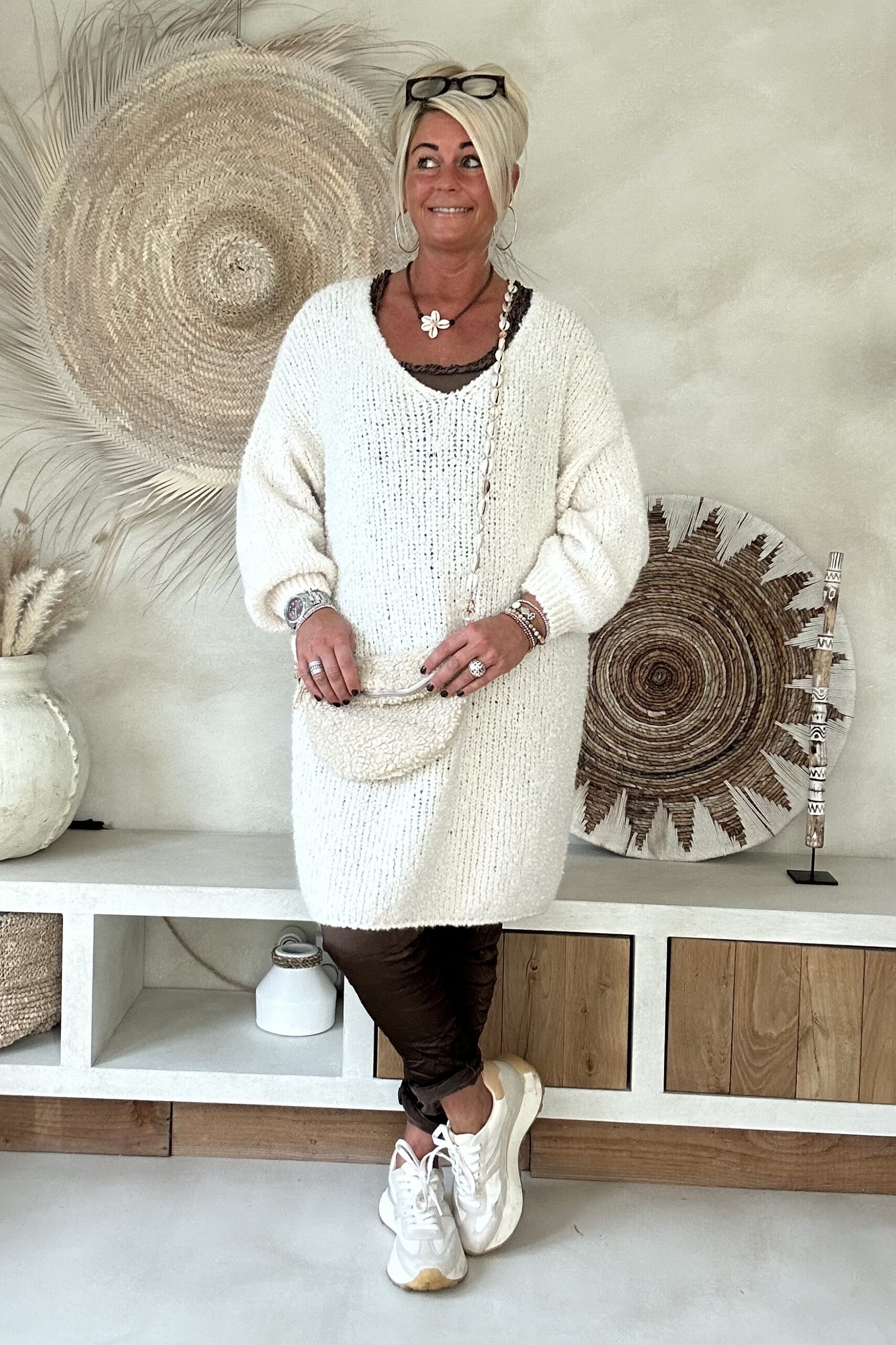 Vleermuis Trui Trudy met afneembaar Bandje, Ecru.