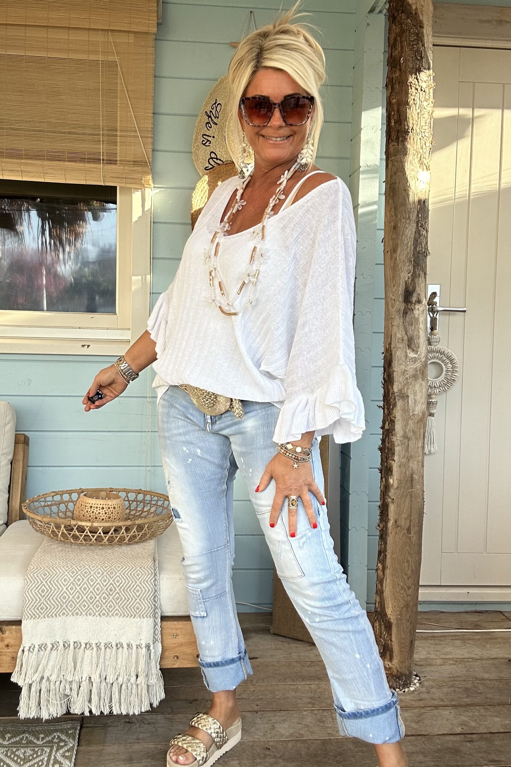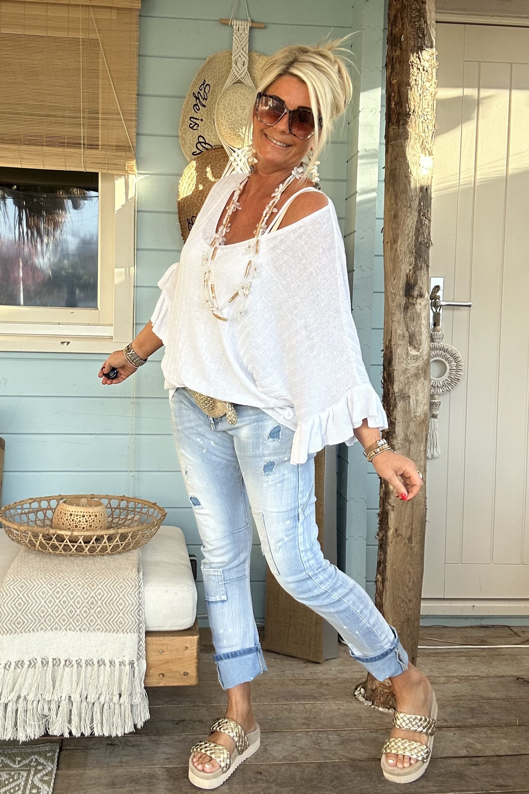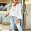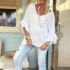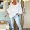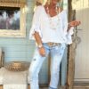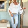 Deze prachtige knitwear trui Tessa straalt elegantie uit met zijn V-hals, korte vlindermouwen en charmante volants. Het delicate ontwerp voegt een vleugje vrouwelijkheid toe aan elke outfit. Deze trui is ontworpen om te passen tot en met een ruime maat 42, kleine 44 waardoor het een veelzijdige keuze is voor verschillende lichaamstypes. Of je het nu combineert met een rok voor een verfijnde look of met je favoriete jeans voor een meer casual uitstraling, deze trui voegt een vleugje stijl toe aan elke gelegenheid. Met zijn zachte en comfortabele knitwear stof is deze trui perfect voor het komende seizoen en daarbuiten.