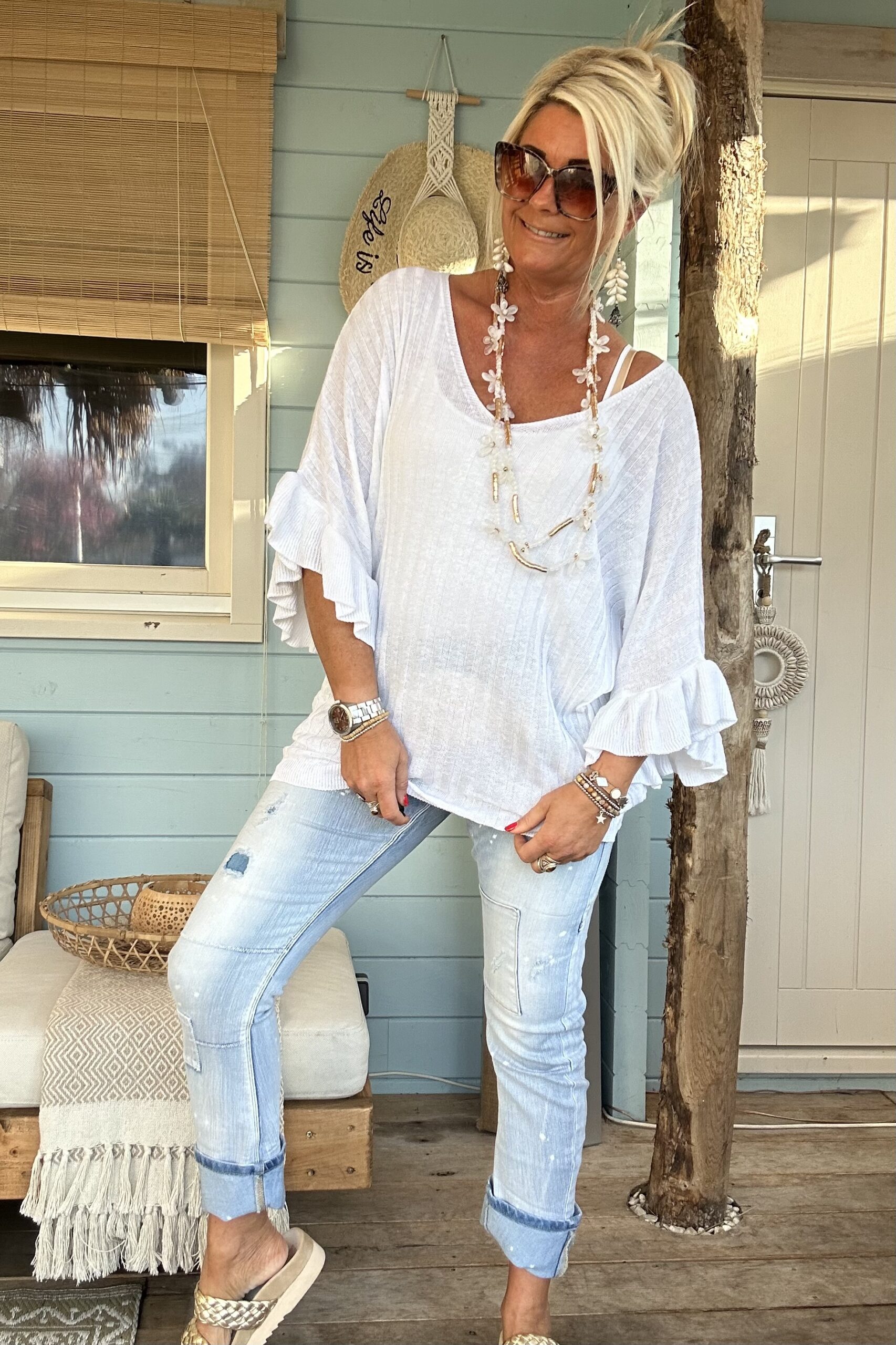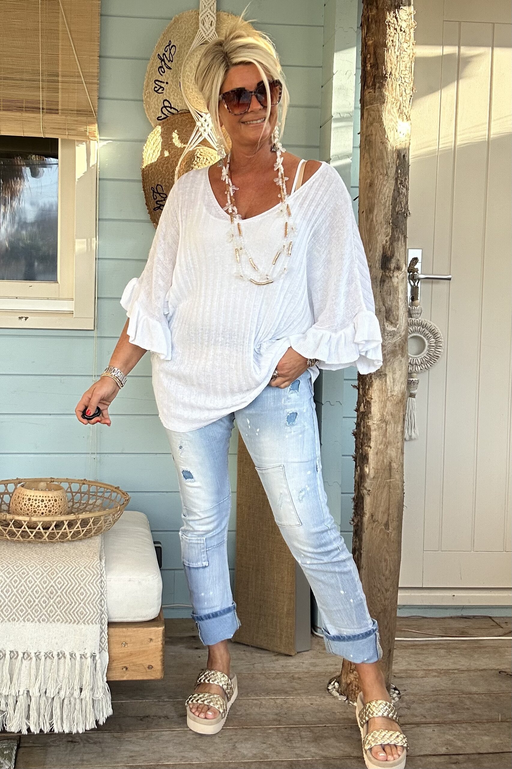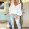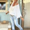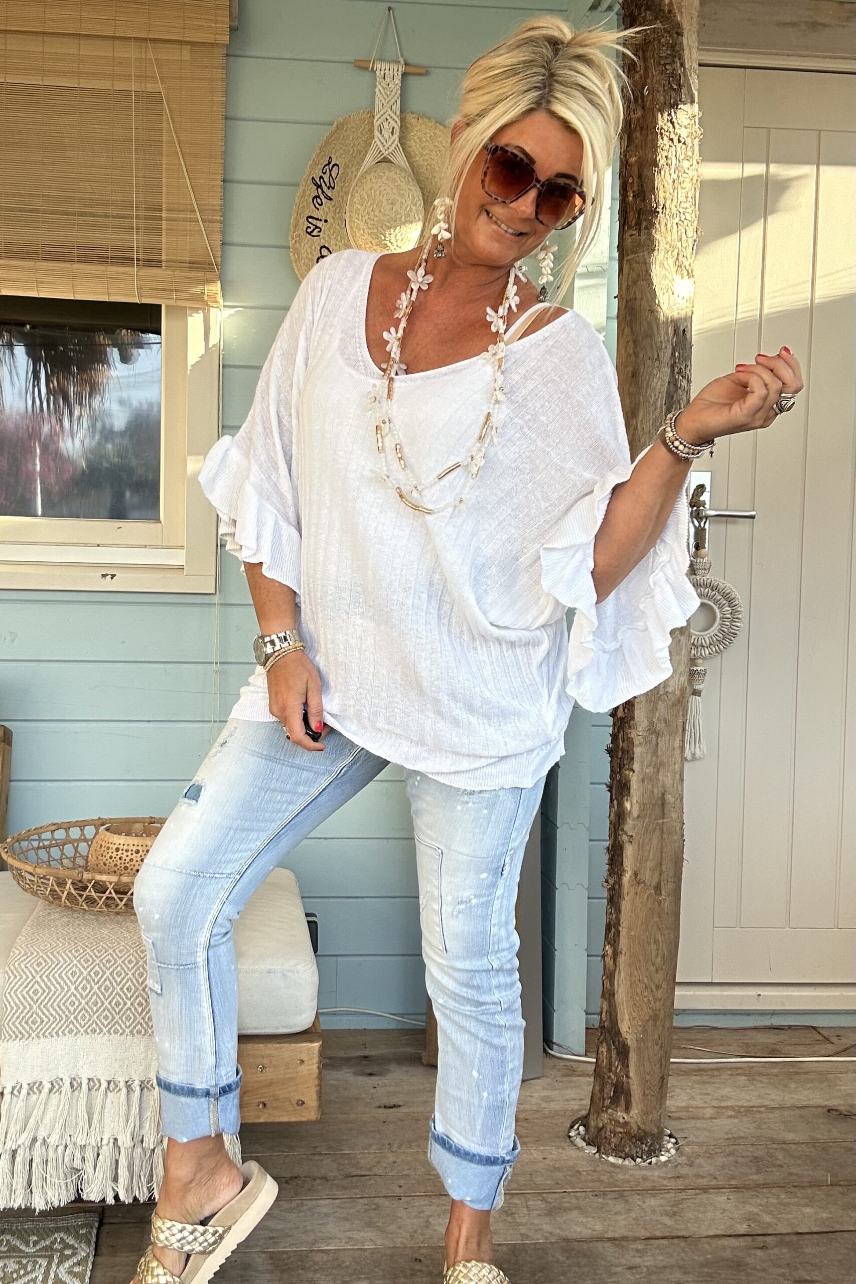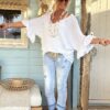 Knitwear trui Tessa korte Vlinder mouw met Volants Wit.