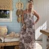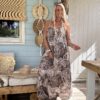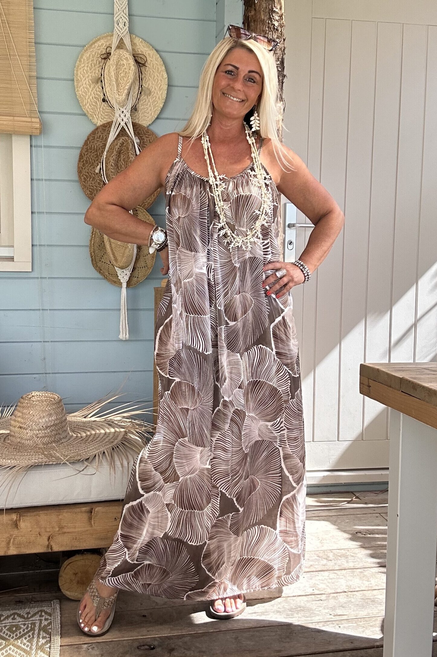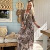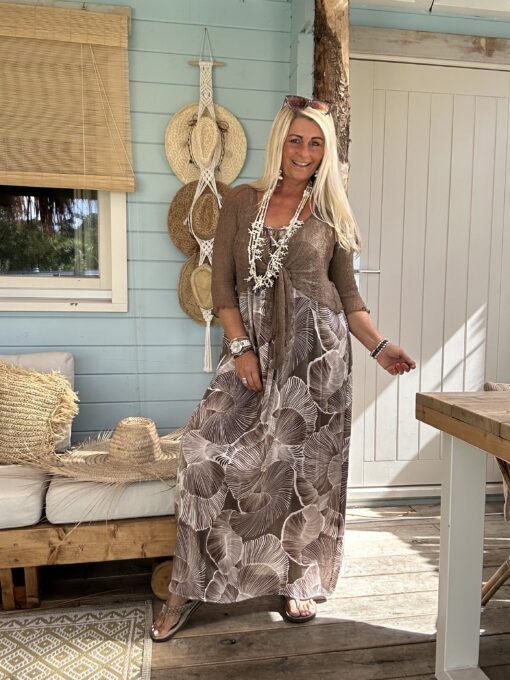 Deze elegante en zomerse maxijurk is een echte eyecatcher met haar subtiele glanseffect en luchtig vallende stof. Het stijlvolle dessin in natuurlijke tinten geeft de jurk een verfijnde, bohemian uitstraling. De soepelvallende pasvorm zorgt voor een comfortabele en vrouwelijke look.
