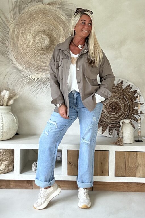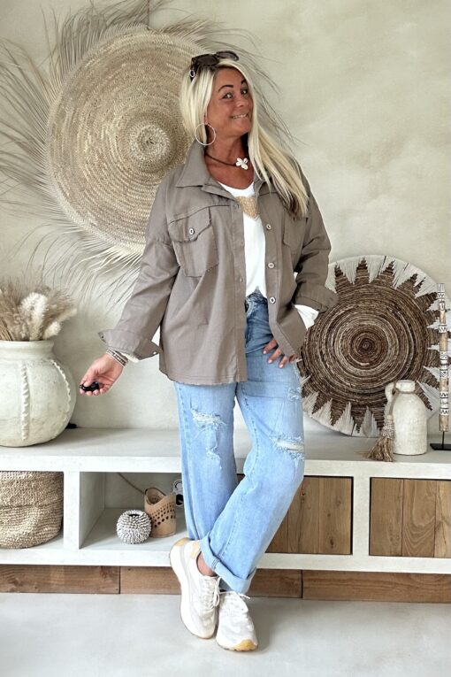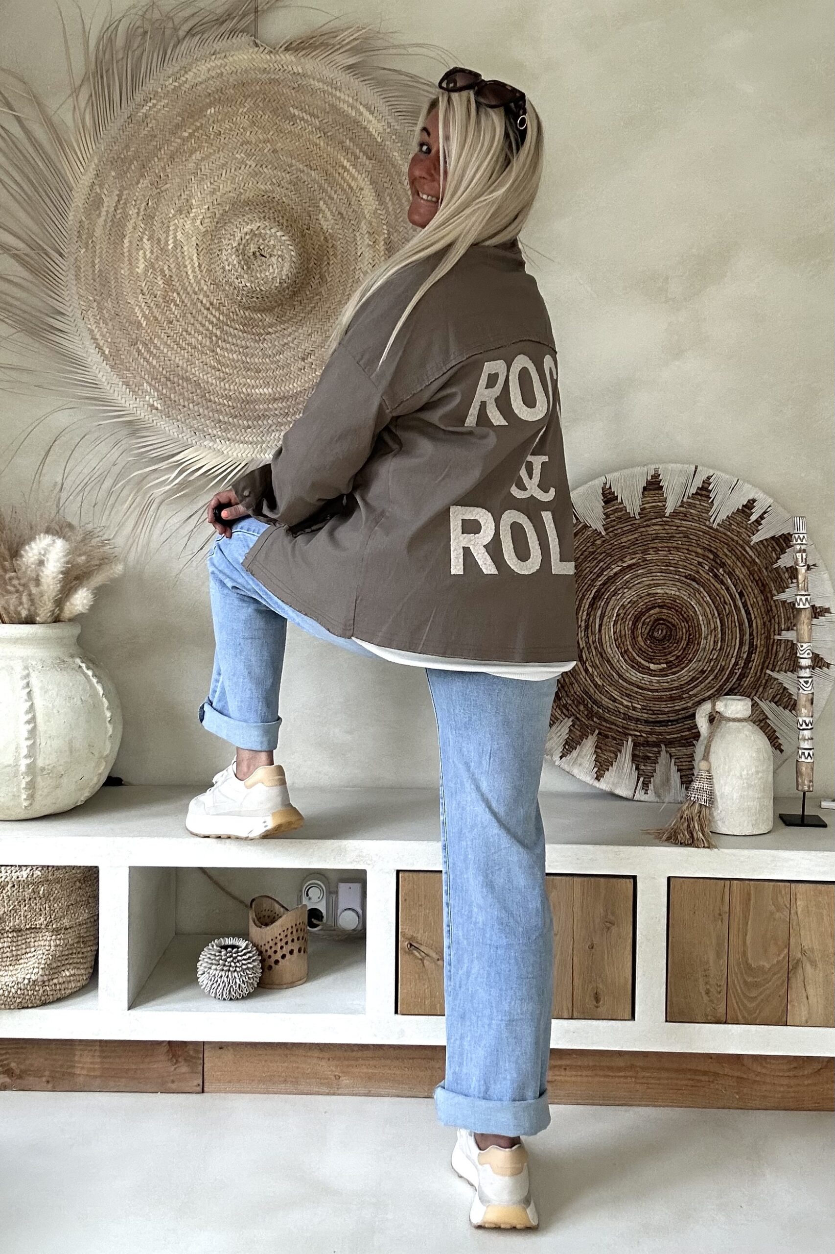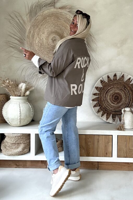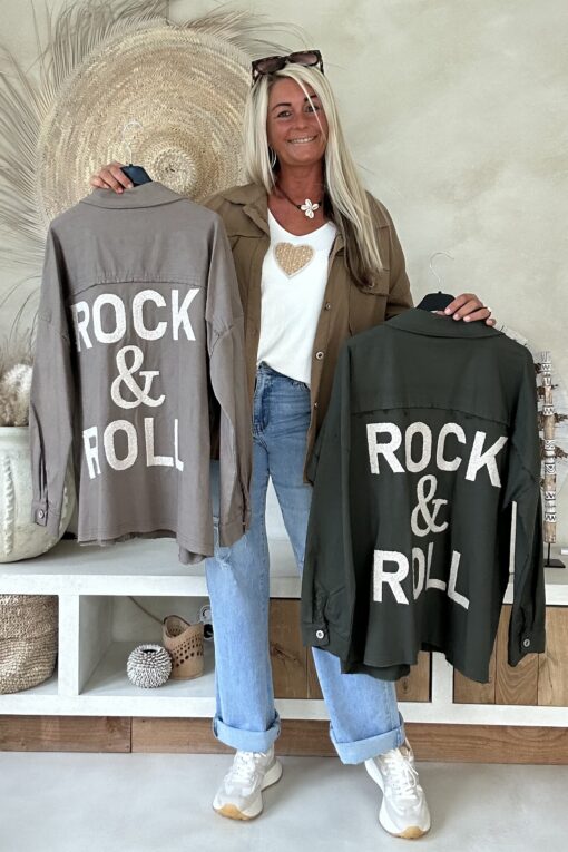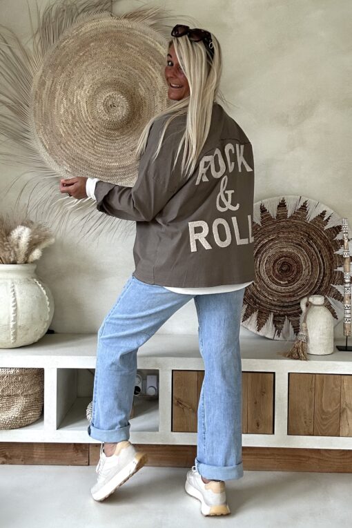 Deze oversized blouse is een echte eyecatcher. Op de achterkant pronken grote teddy letters met de tekst ROCK & ROLL, wat de blouse een stoere en trendy uitstraling geeft. De stof heeft veel stretch waardoor hij heerlijk comfortabel zit en makkelijk meebeweegt. Aan de voorkant sluit de blouse met knopen, zodat je hem zowel open als dicht kunt dragen. Dankzij het oversized model valt hij lekker nonchalant en past hij moeiteloos tot en met maat 44. Perfect om casual te combineren met een jeans en sneakers, of juist om je outfit net dat beetje extra pit te geven.