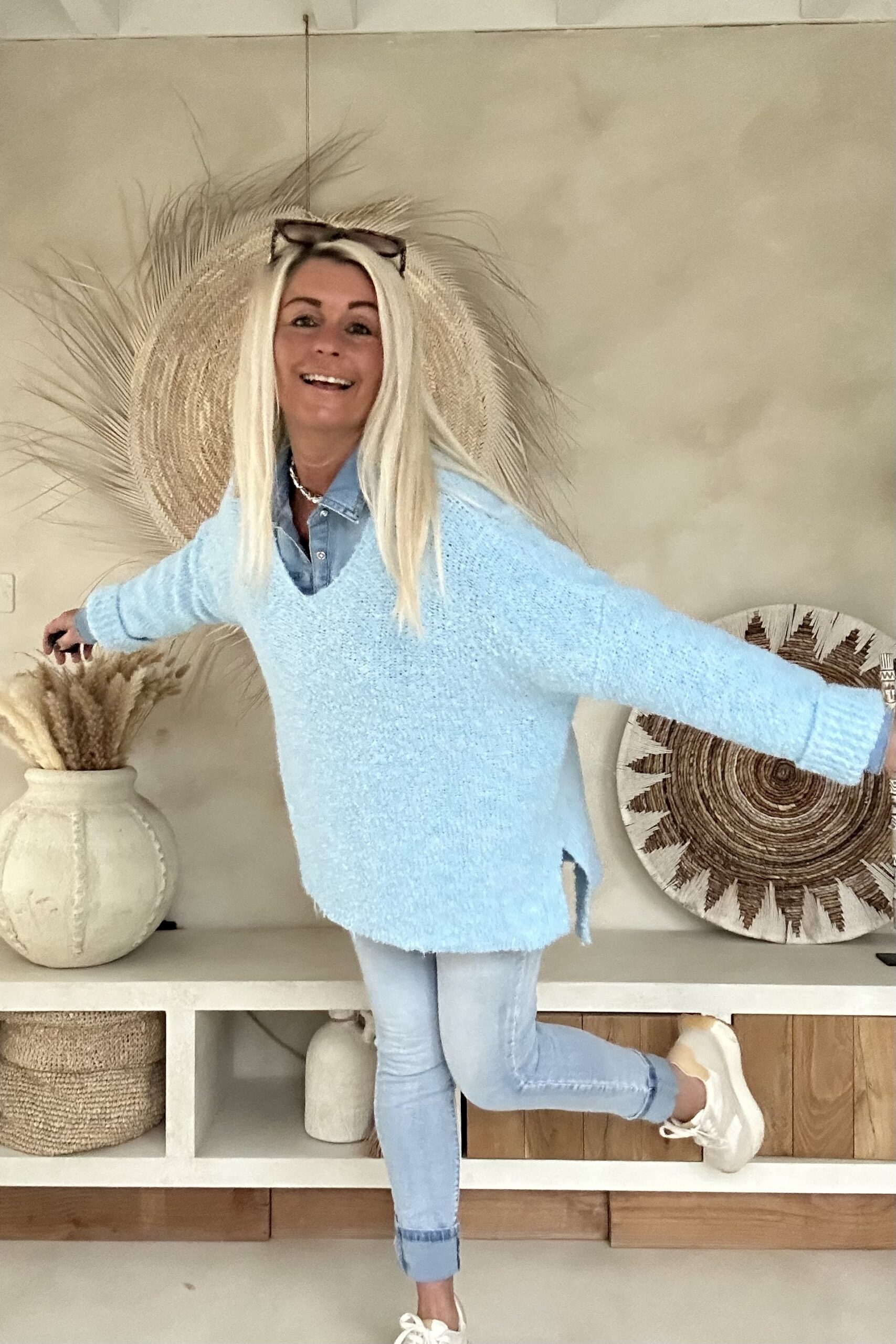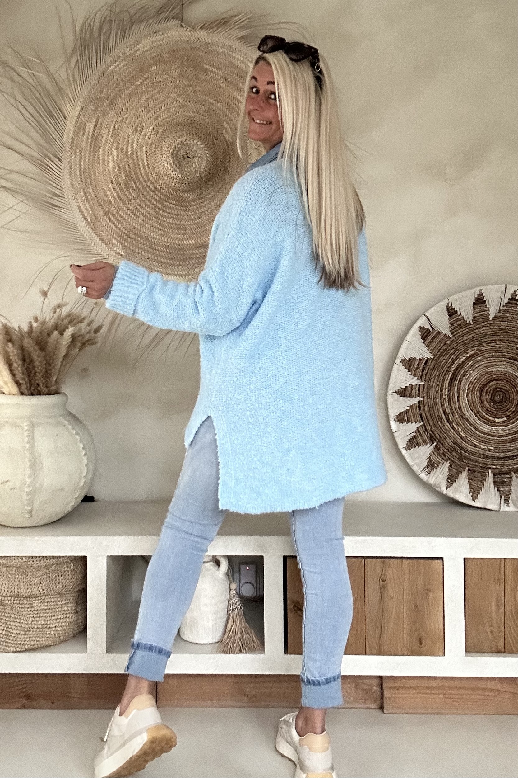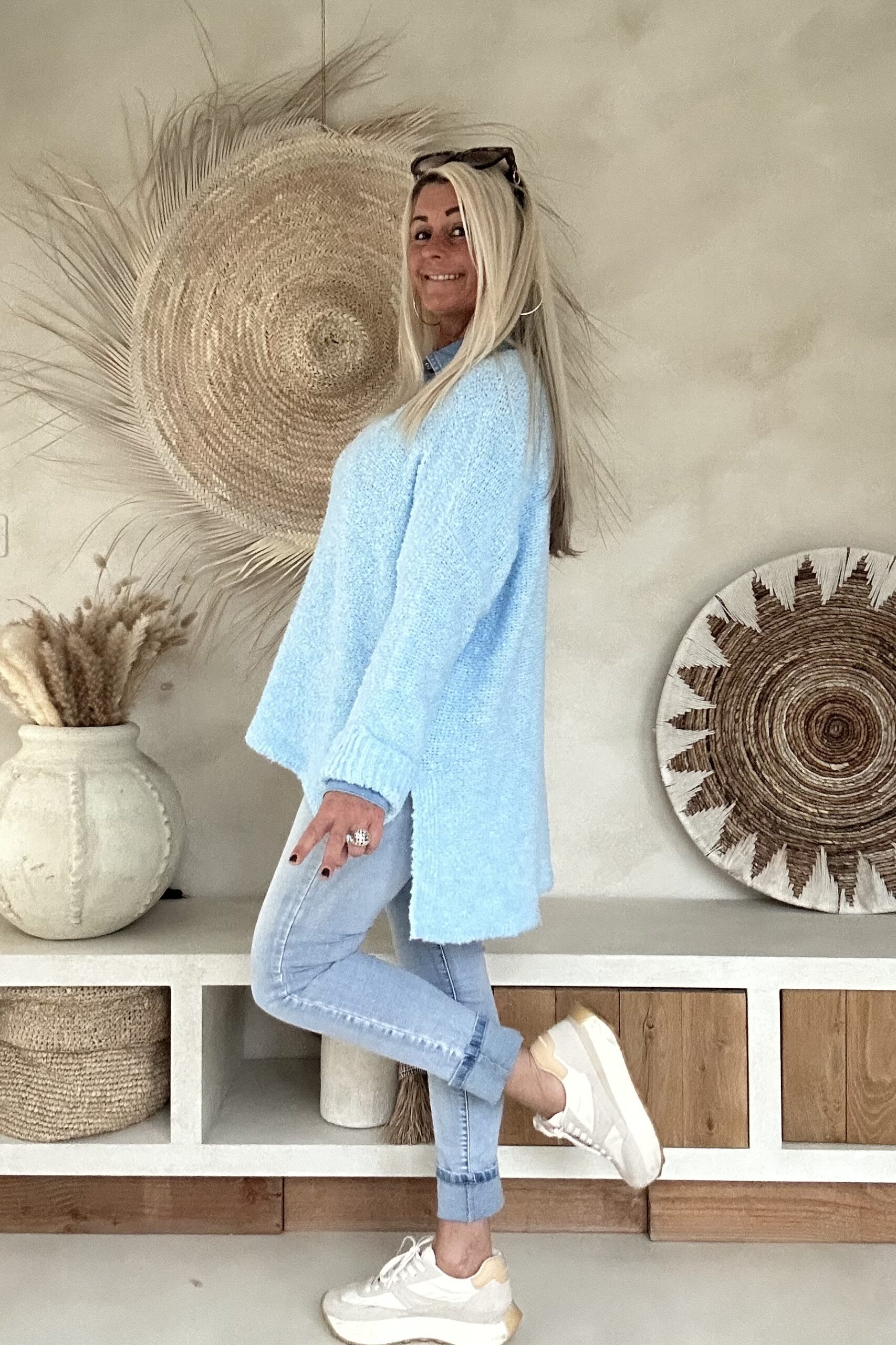 Deze comfortabele trui is uitgevoerd in een zachte, luchtig gebreide kwaliteit en valt mooi soepel om het lichaam. De V-hals zorgt voor een vrouwelijke en open uitstraling, terwijl de langere achterkant een speels en modern effect geeft. Door de losse knit en fijne materiaalmix voelt de trui prettig aan en is hij ideaal voor dagelijks gebruik. Een veelzijdig item dat zowel casual als iets gekleder (bijvoorbeeld met blouse eronder) gedragen kan worden.