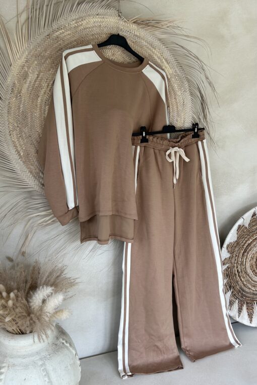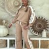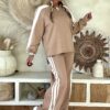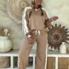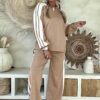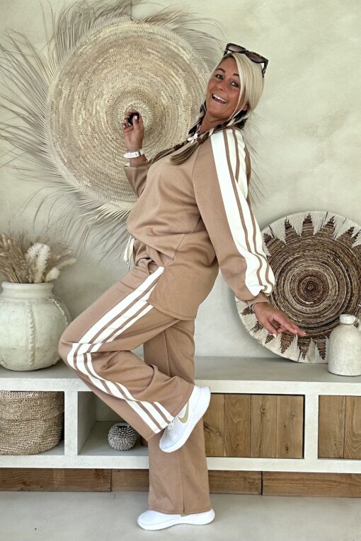 Retro Trainingspak/Joggingpak in camel met Strepen