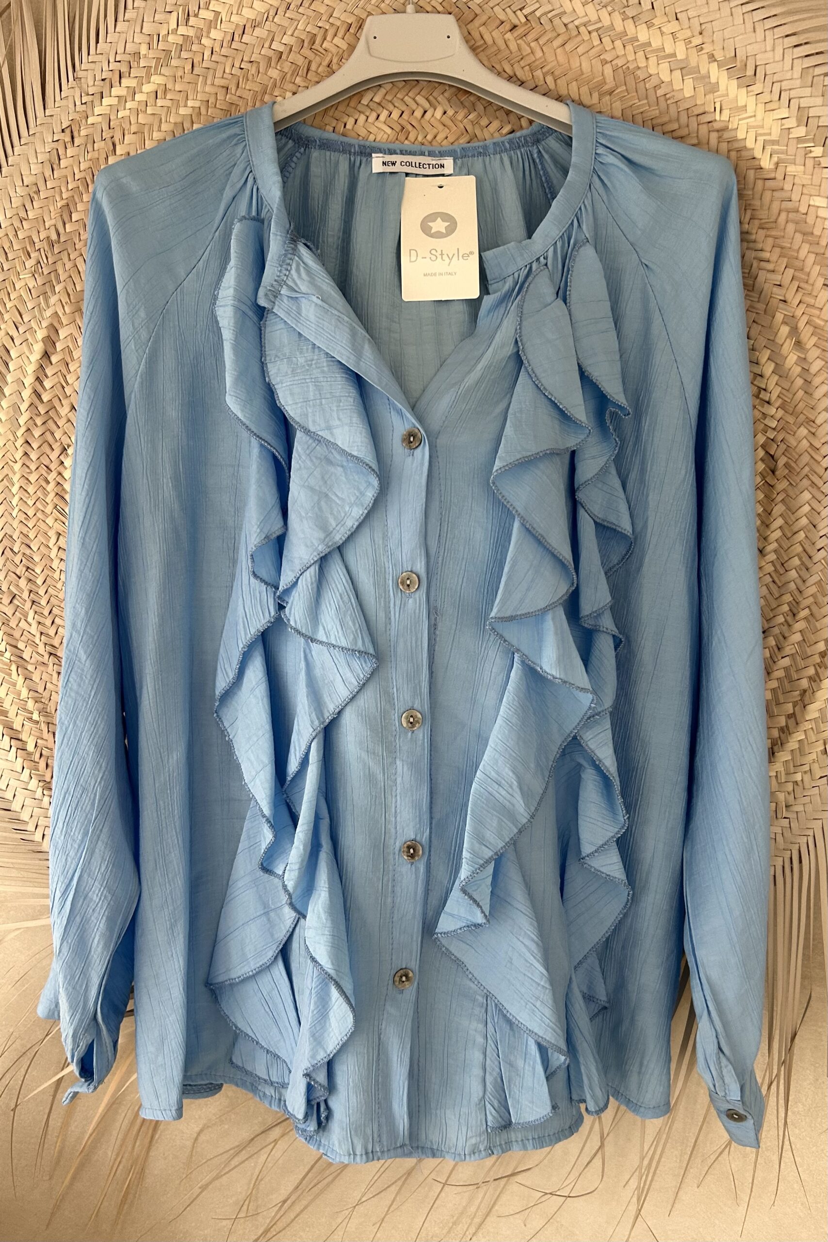 Ruffle Blouse Rilana, Blauw.