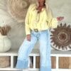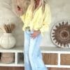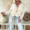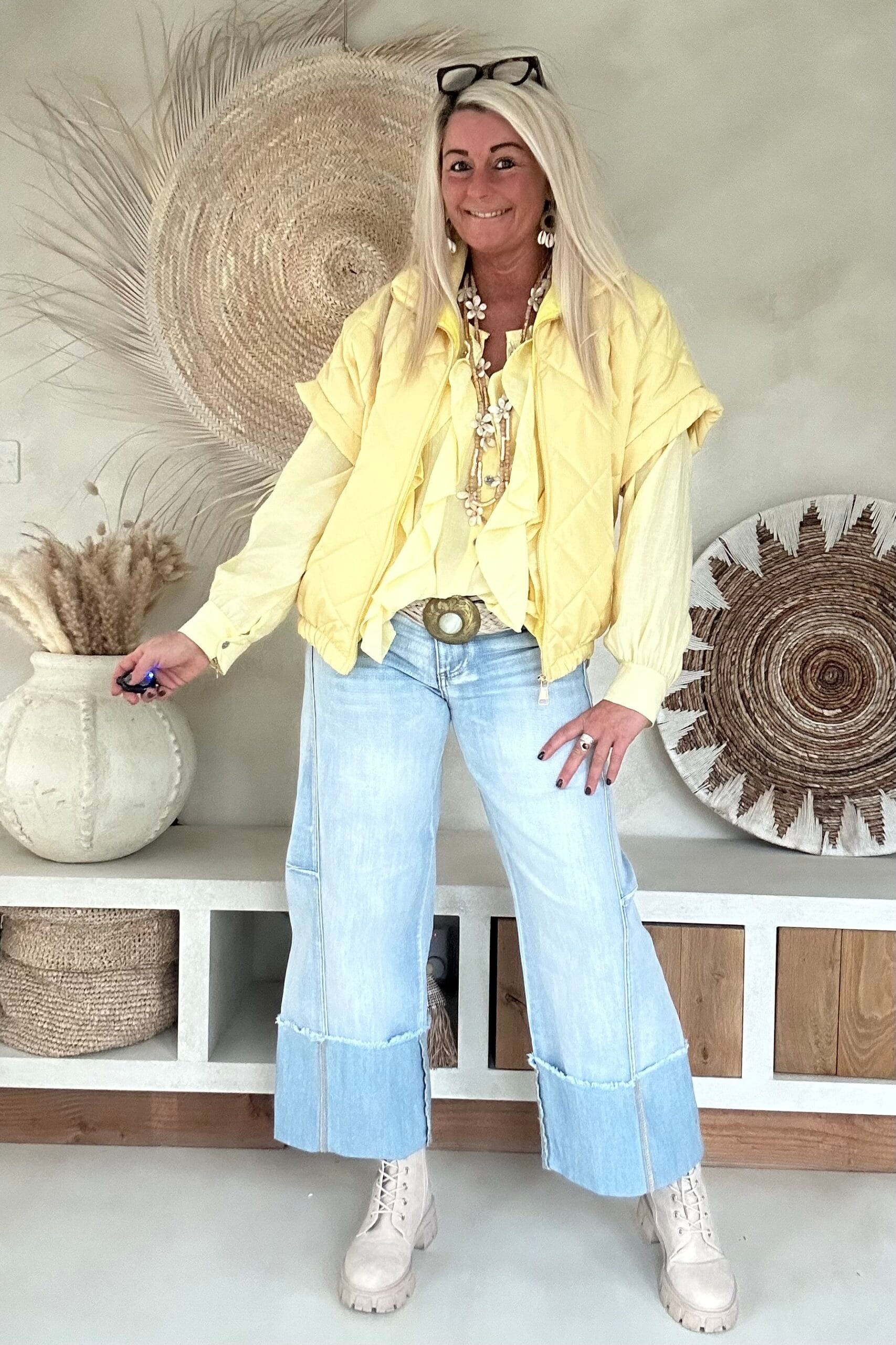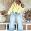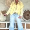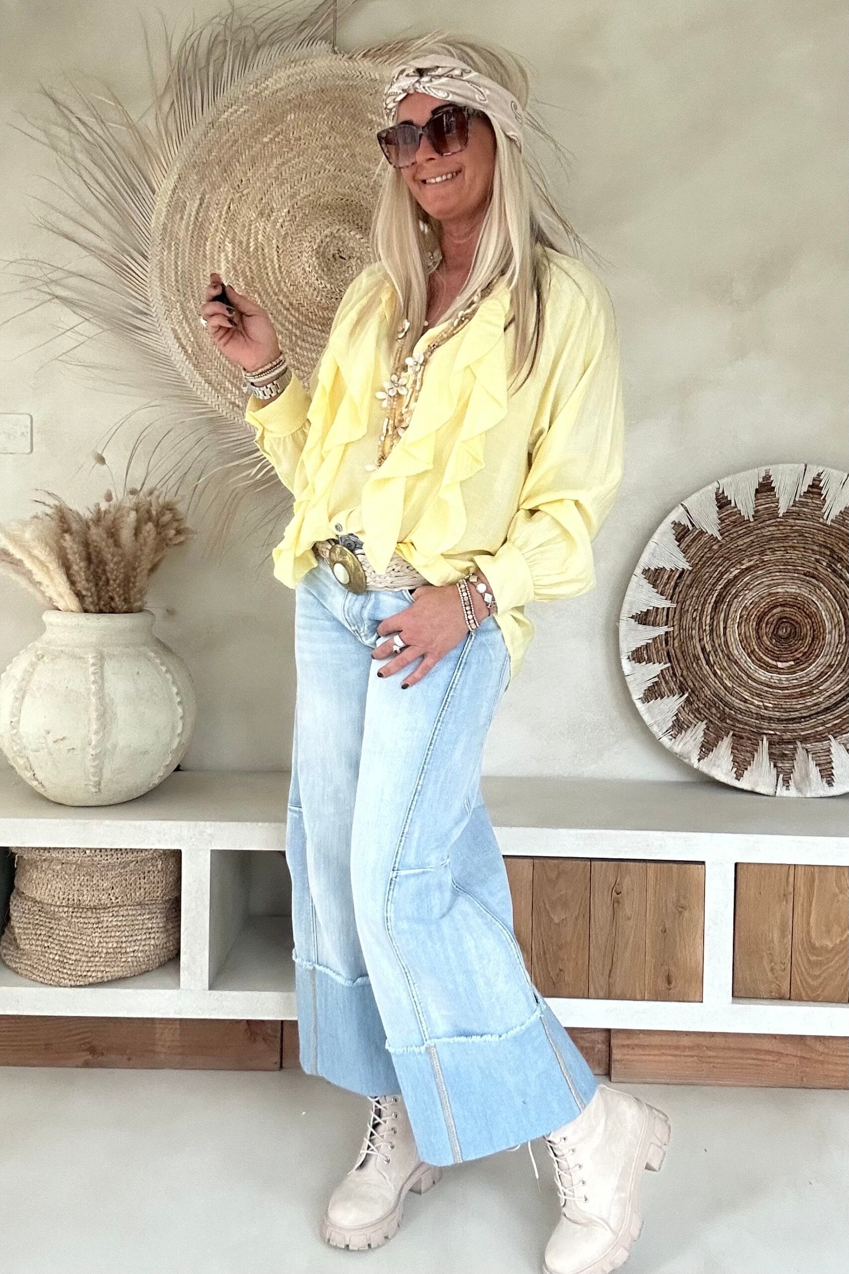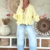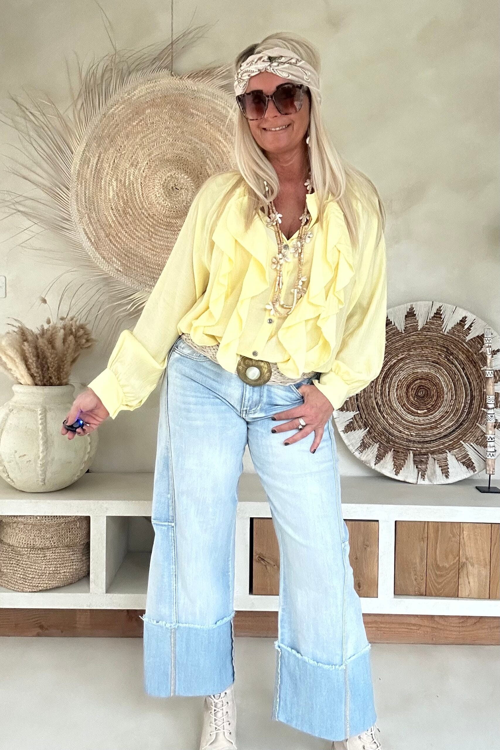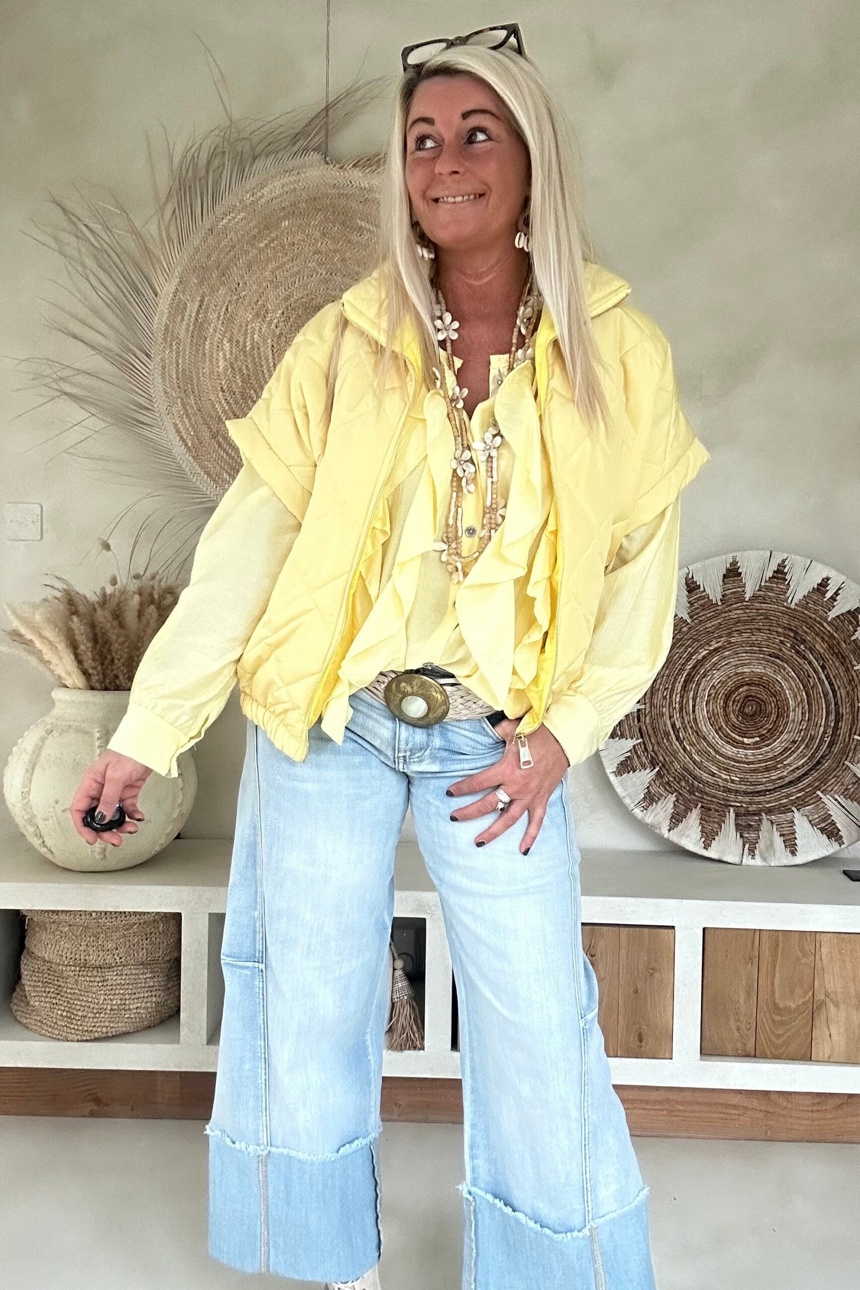 Deze vrouwelijke blouse is gemaakt van een zachte, soepelvallende viscose en afgewerkt met speelse ruffles aan de voorzijde. De luchtige stof en losse valling geven de blouse een nonchalante uitstraling. Draag ’m stoer op de Peggy jeans of juist gekleder op de witte stretchbroek Fleur. Met een bandana erbij maak je de look helemaal af voor die fijne hippie vibe.