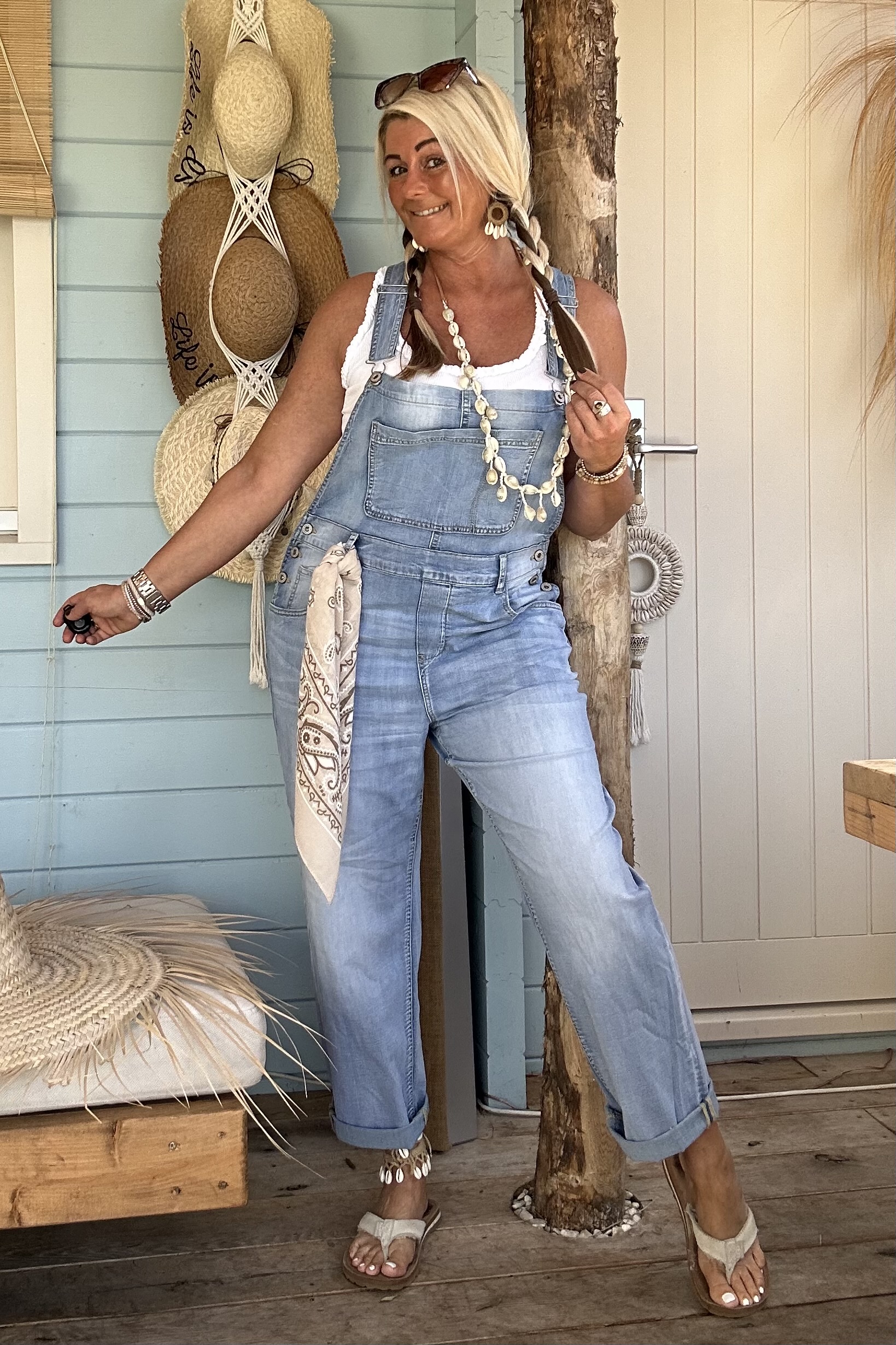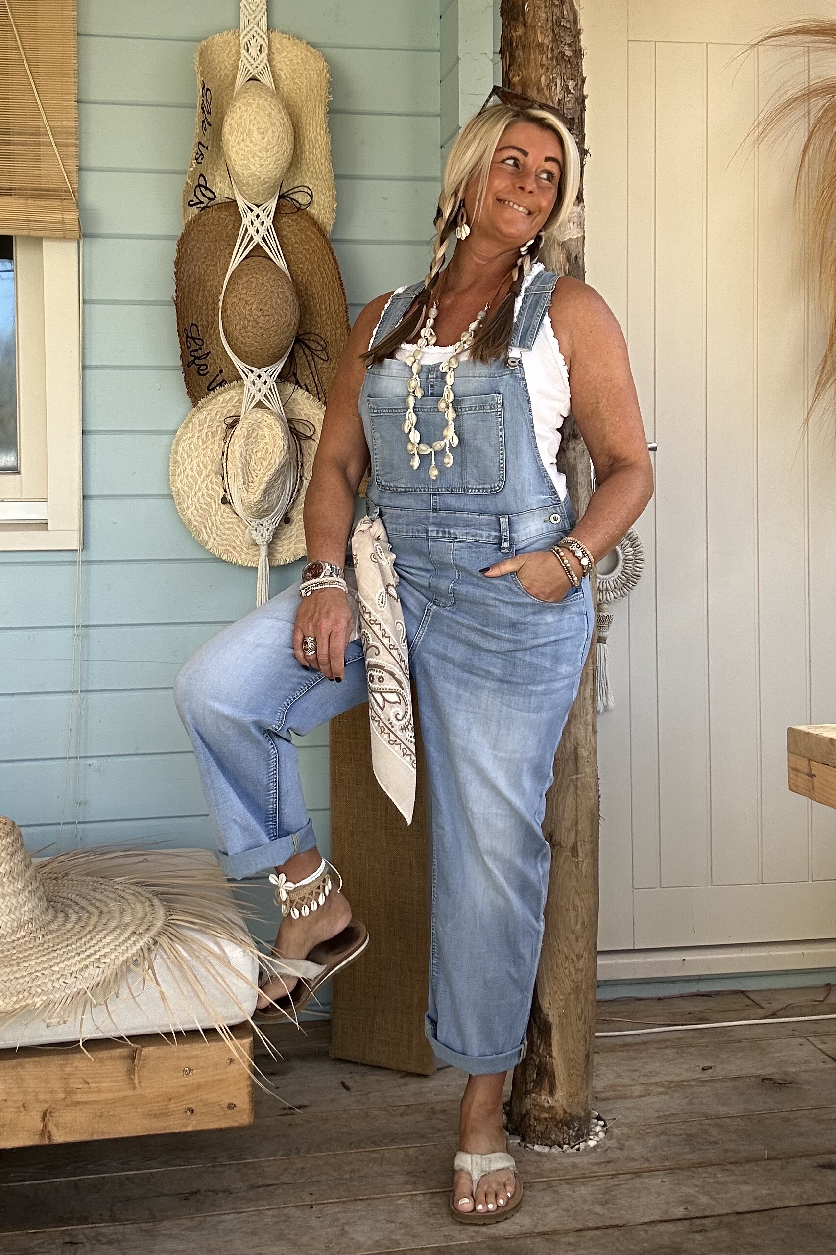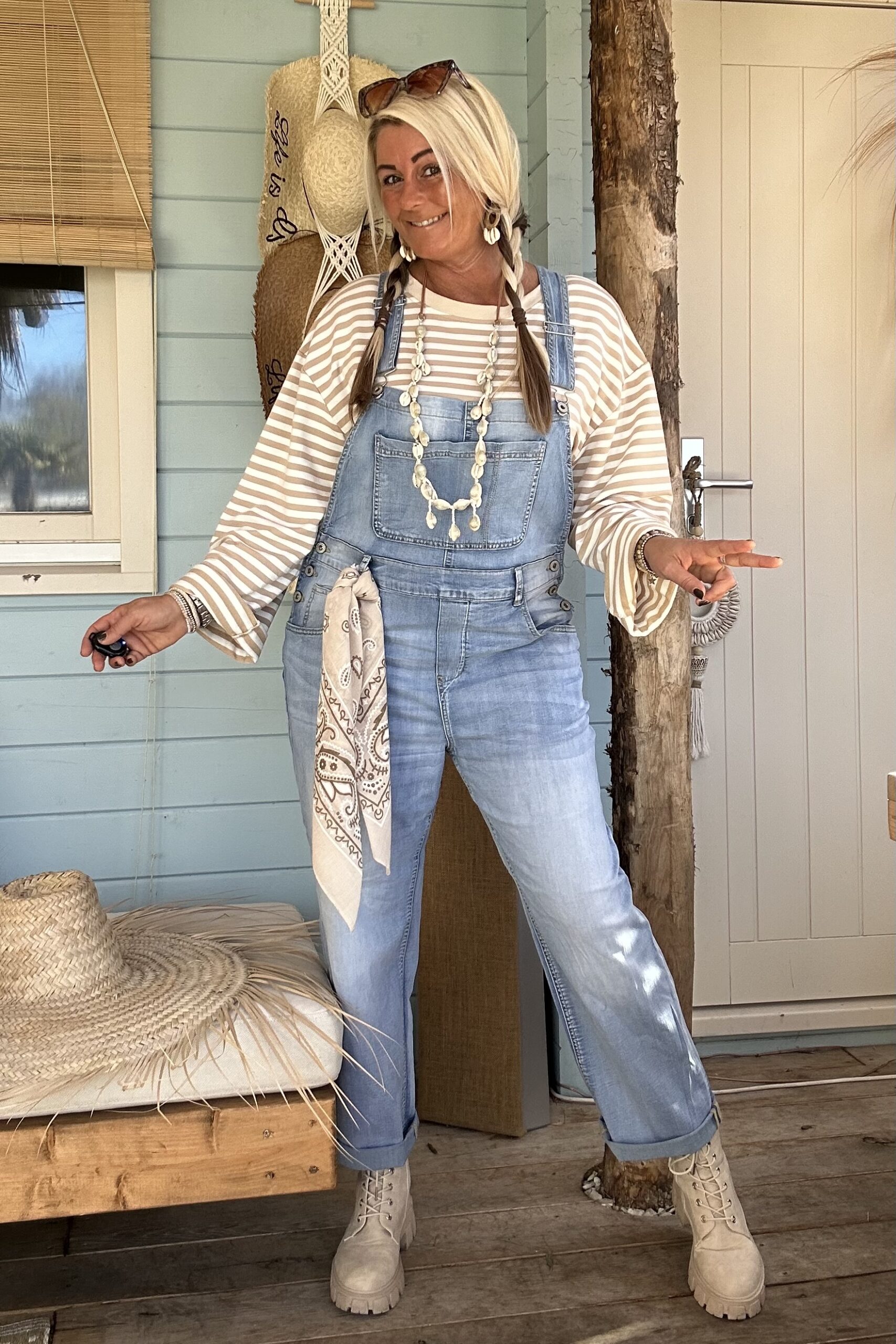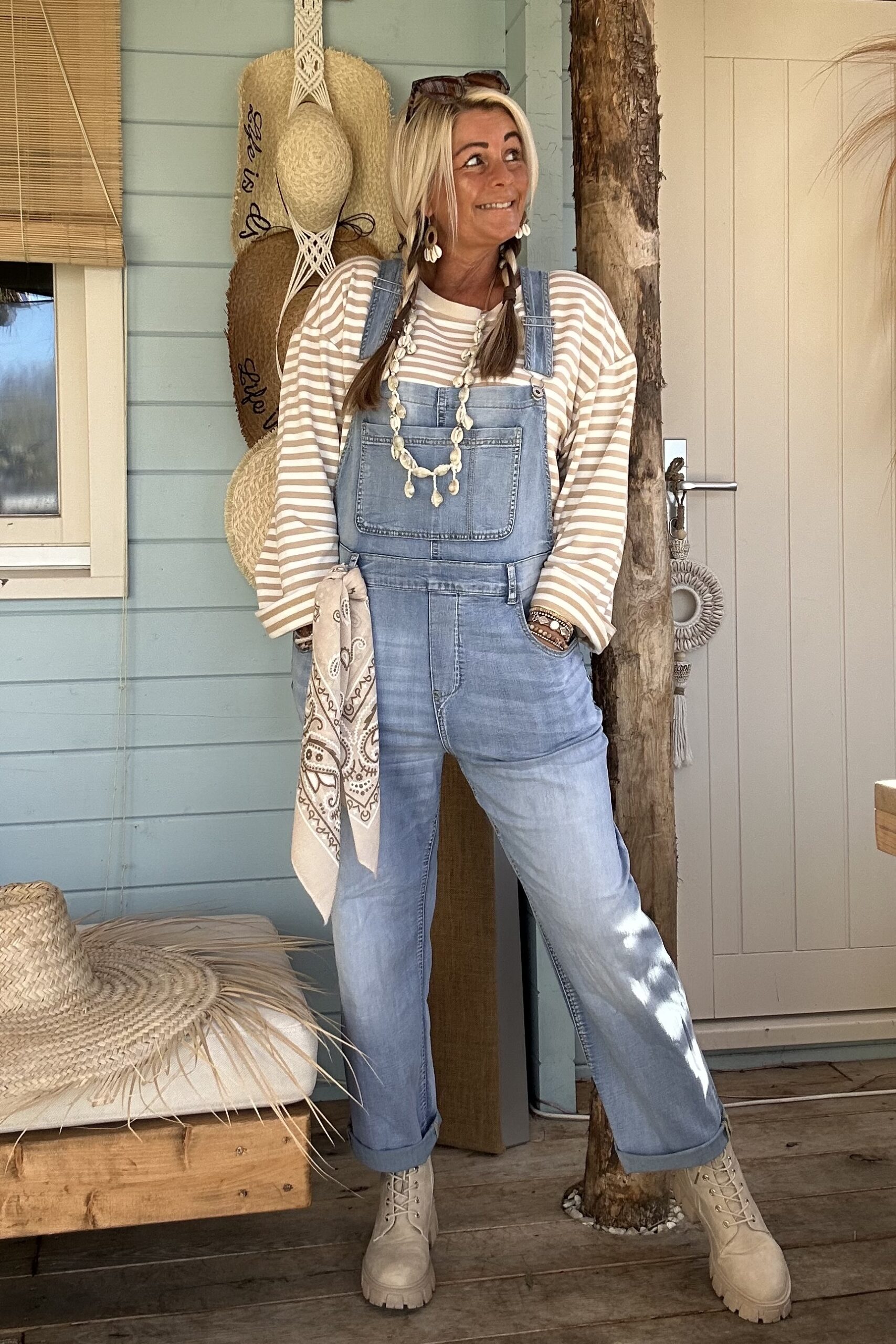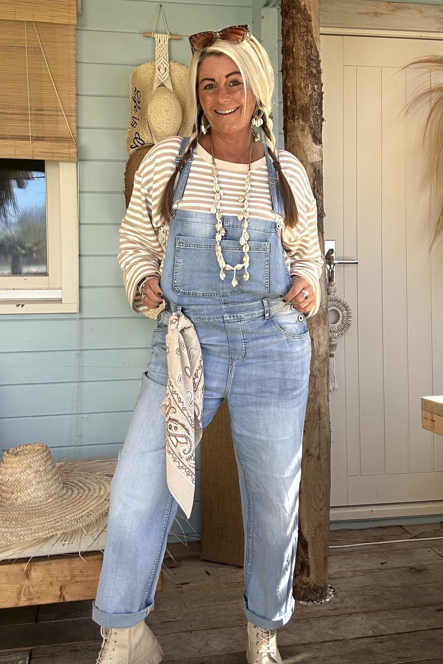 Dit stoere tuinpak in een mooie lichte jeans kleur is een echte must-have voor een casual en trendy look. Het pak is gemaakt van soepel vallende denim met veel stretch waardoor het comfortabel draagt en mooi valt. De klassieke tuinpakdetails zoals de borstzak, verstelbare schouderbanden en de stevige denimlook geven het geheel een stoere uitstraling, terwijl de lichte wassing zorgt voor een frisse en moderne look. Perfect om te combineren met een T-shirt, top of trui voor een relaxte outfit.