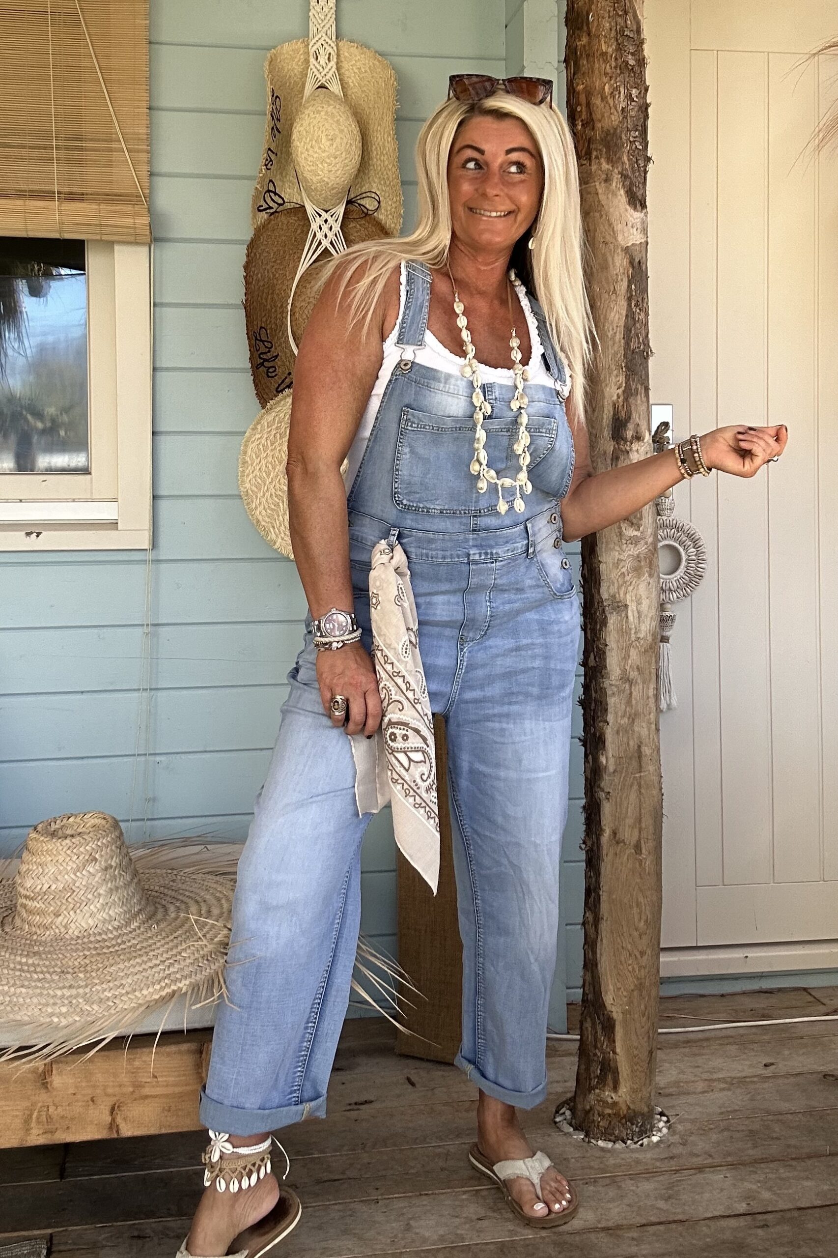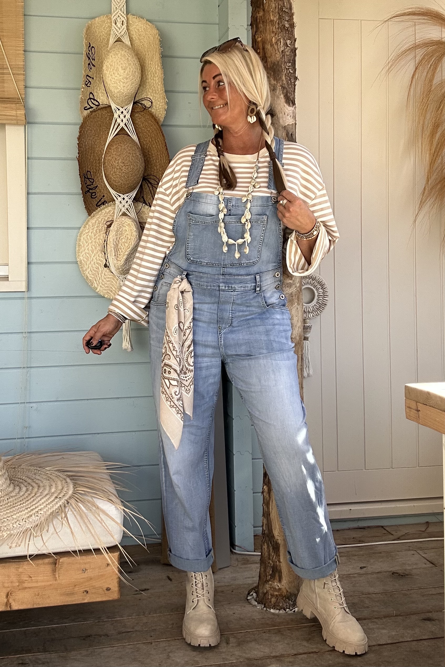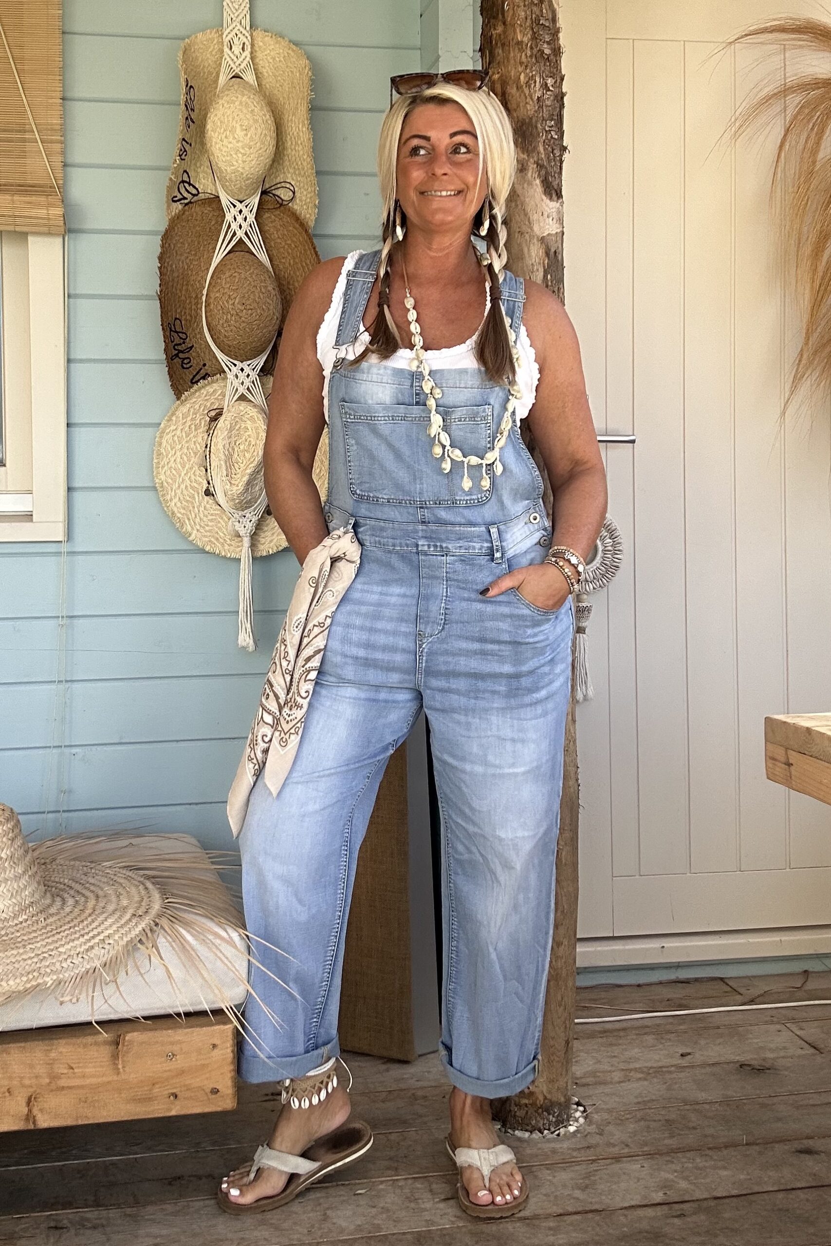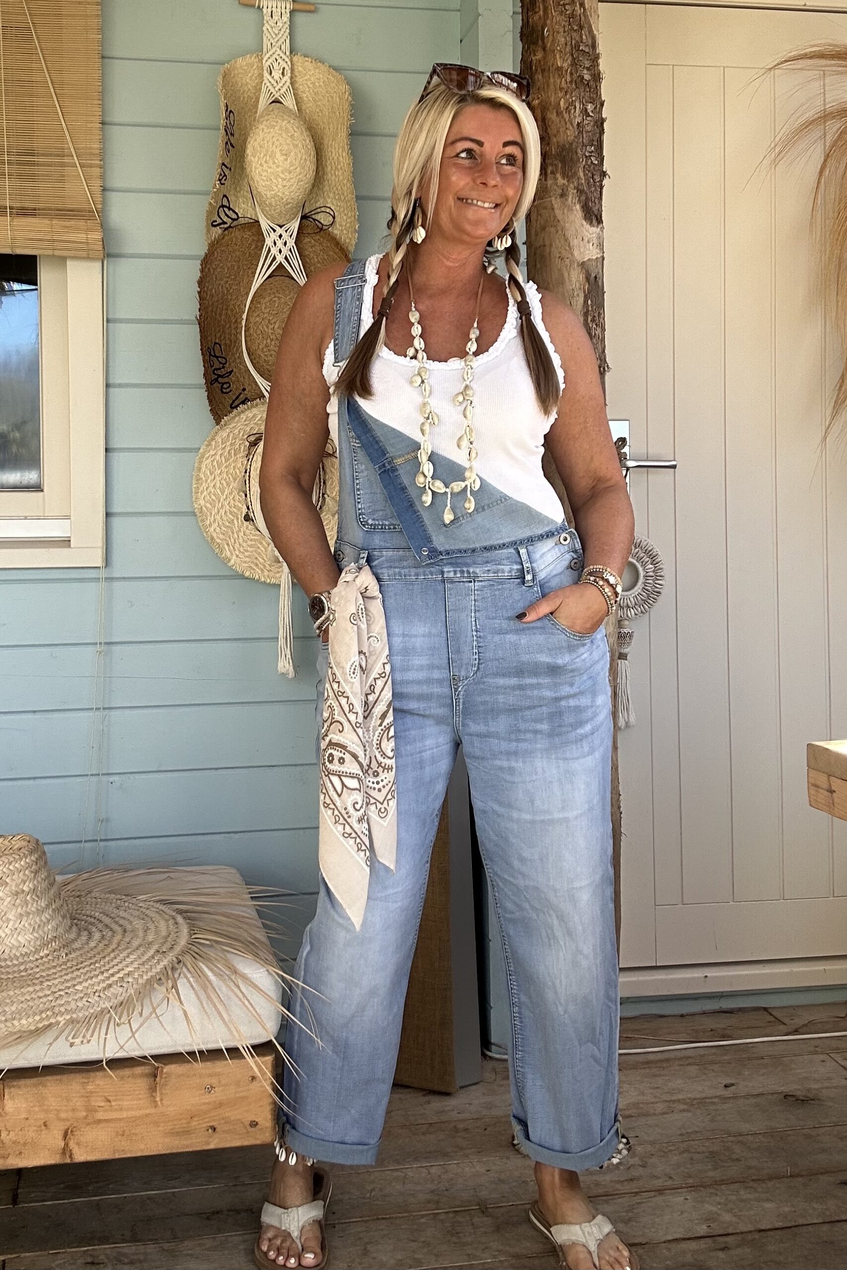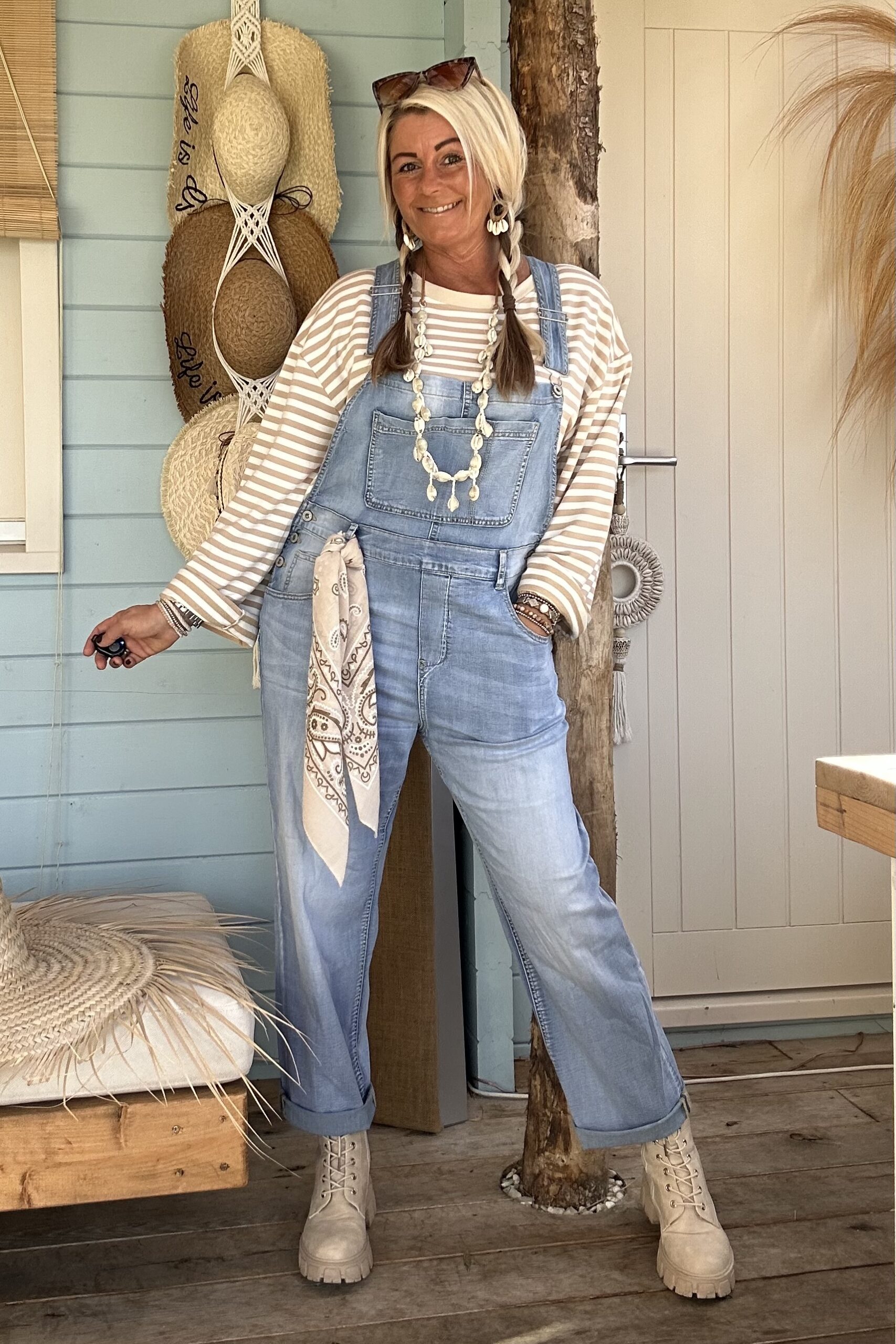 Dit stoere tuinpak in een mooie lichte jeans kleur is een echte must-have voor een casual en trendy look. Het pak is gemaakt van soepel vallende denim met veel stretch waardoor het comfortabel draagt en mooi valt. De klassieke tuinpakdetails zoals de borstzak, verstelbare schouderbanden en de stevige denimlook geven het geheel een stoere uitstraling, terwijl de lichte wassing zorgt voor een frisse en moderne look. Perfect om te combineren met een T-shirt, top of trui voor een relaxte outfit.