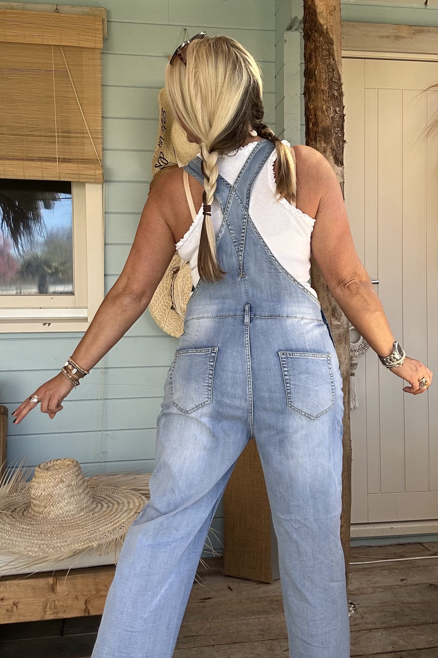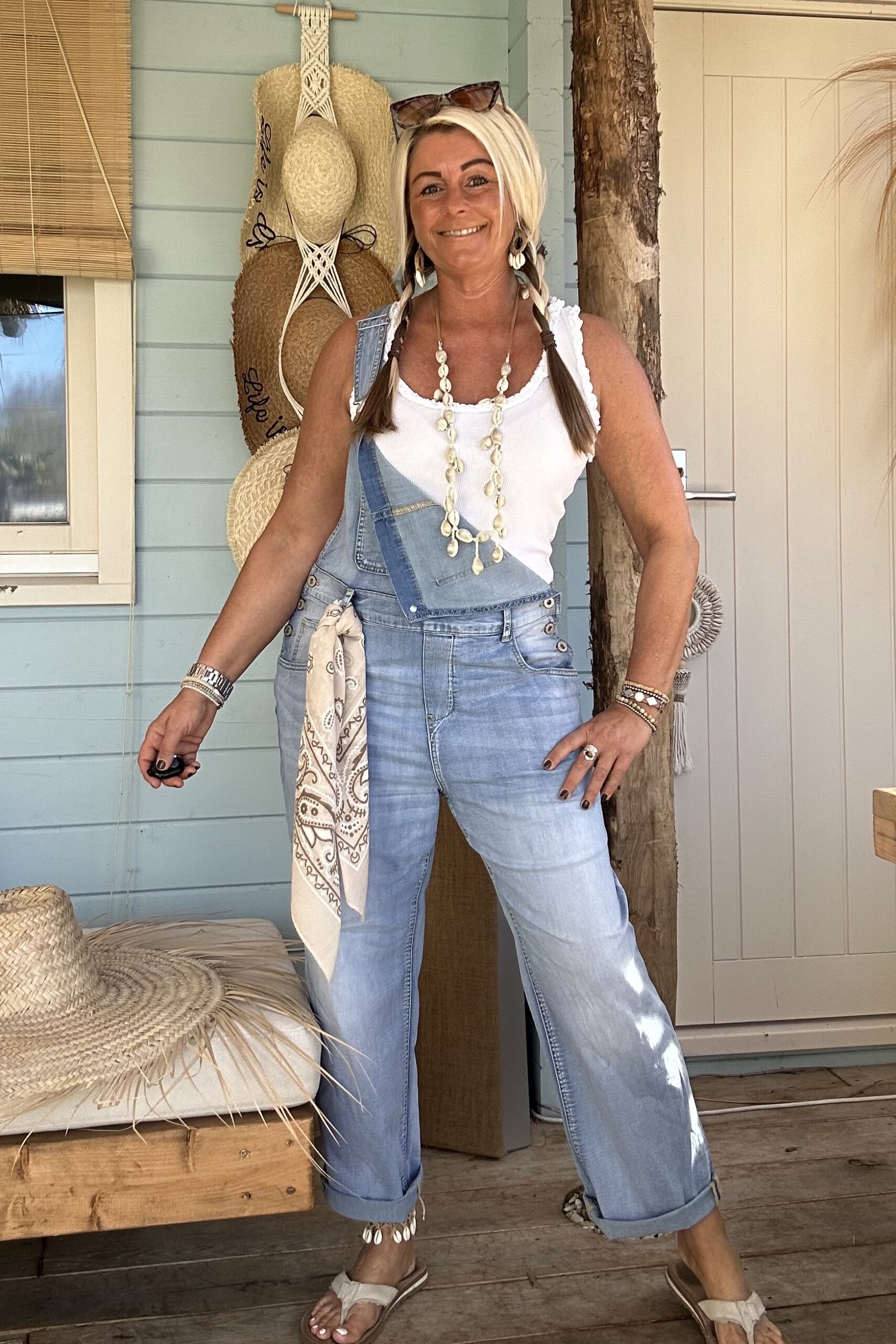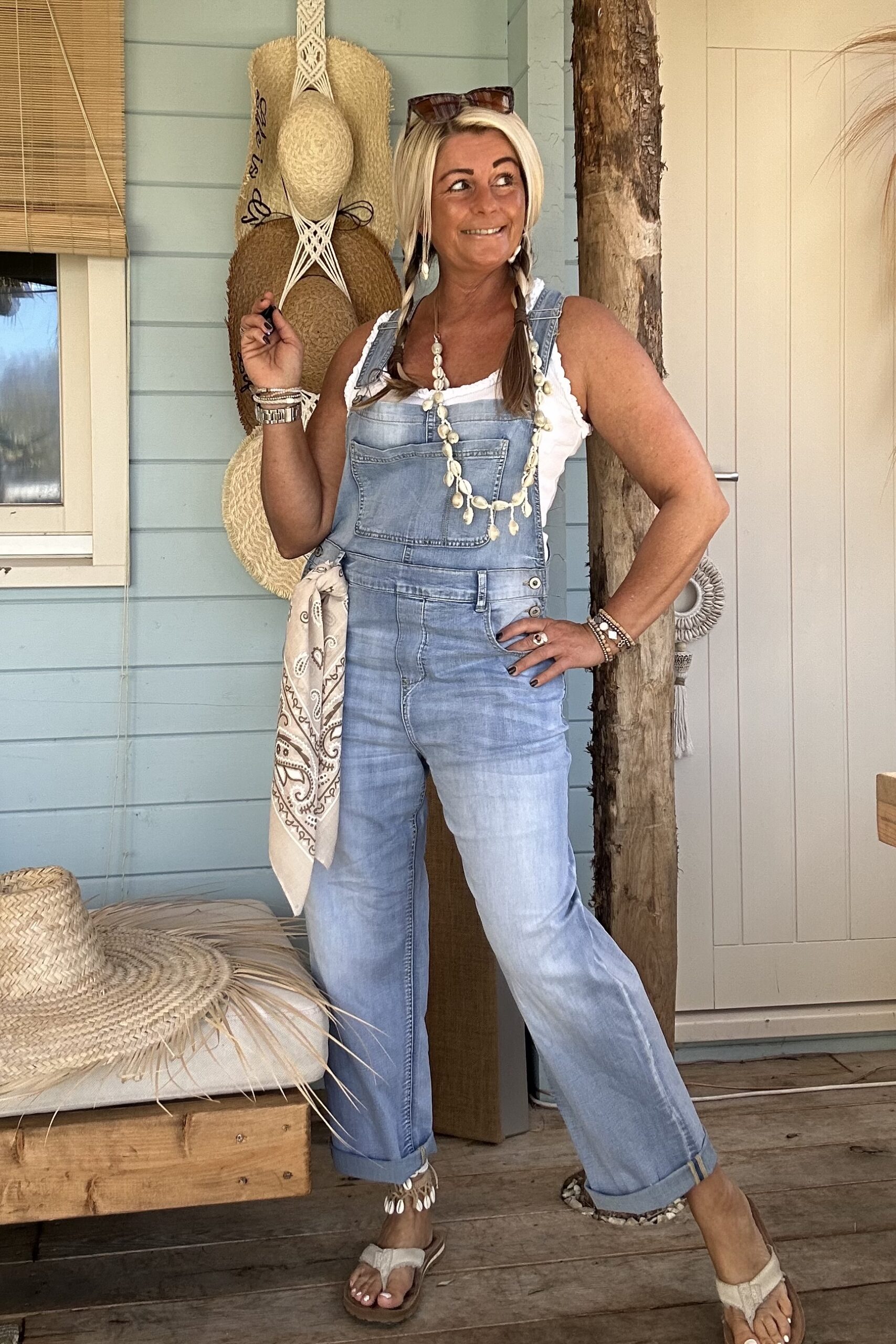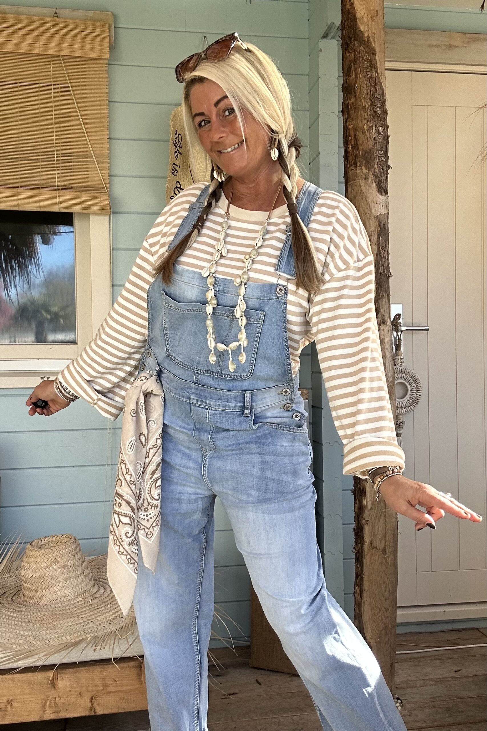 Dit stoere tuinpak in een mooie lichte jeans kleur is een echte must-have voor een casual en trendy look. Het pak is gemaakt van soepel vallende denim met veel stretch waardoor het comfortabel draagt en mooi valt. De klassieke tuinpakdetails zoals de borstzak, verstelbare schouderbanden en de stevige denimlook geven het geheel een stoere uitstraling, terwijl de lichte wassing zorgt voor een frisse en moderne look. Perfect om te combineren met een T-shirt, top of trui voor een relaxte outfit.