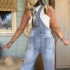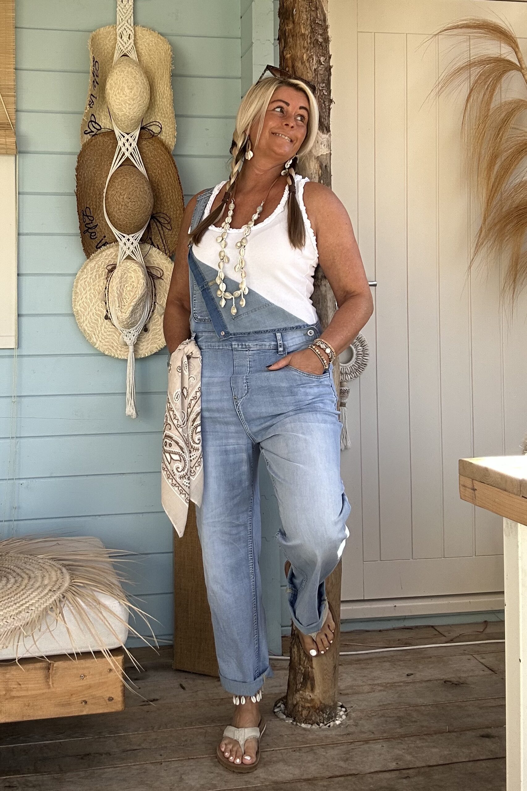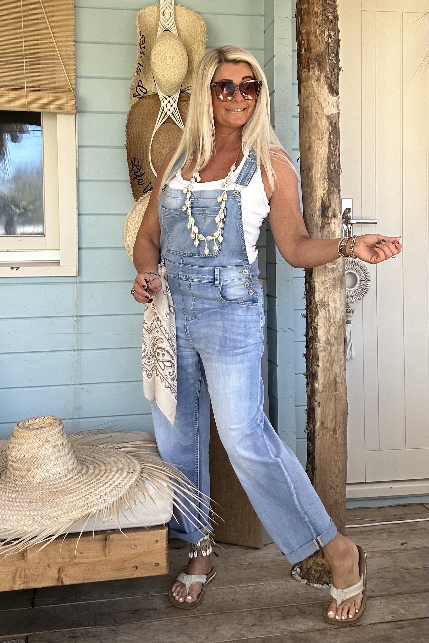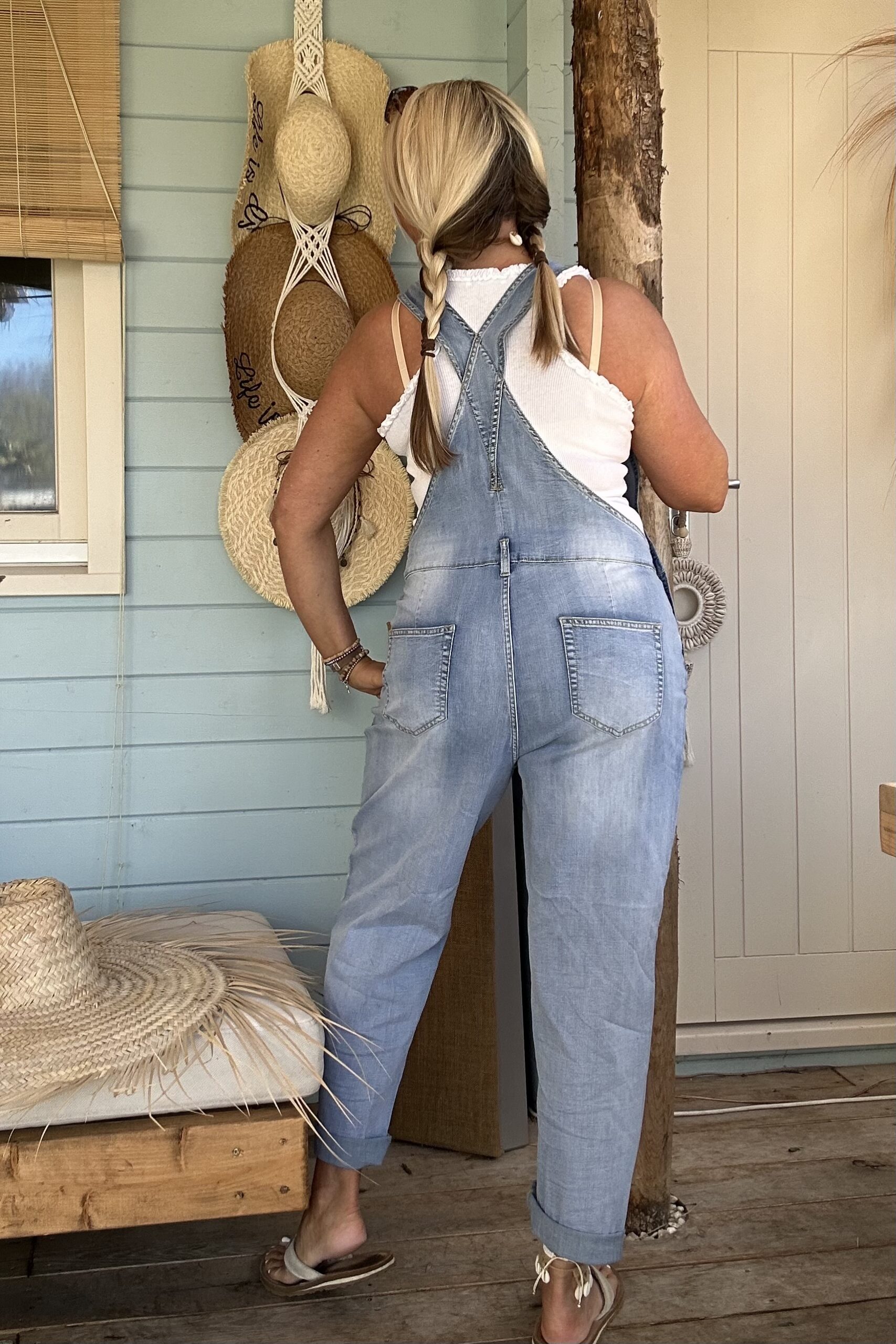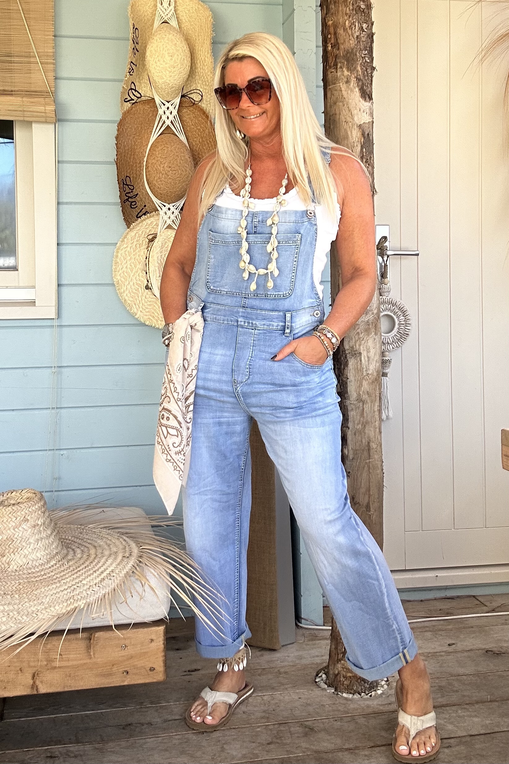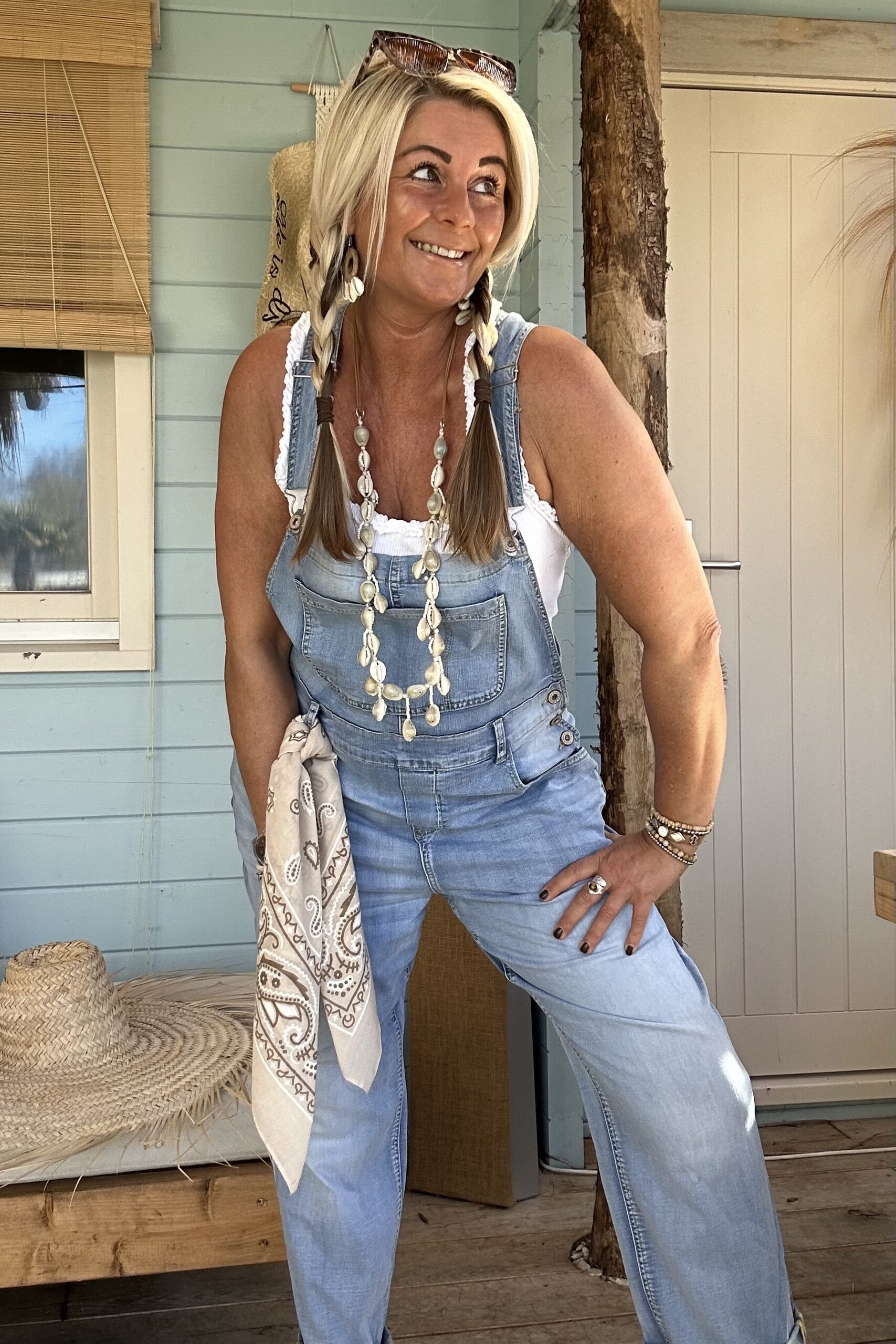 Dit stoere tuinpak in een mooie lichte jeans kleur is een echte must-have voor een casual en trendy look. Het pak is gemaakt van soepel vallende denim met veel stretch waardoor het comfortabel draagt en mooi valt. De klassieke tuinpakdetails zoals de borstzak, verstelbare schouderbanden en de stevige denimlook geven het geheel een stoere uitstraling, terwijl de lichte wassing zorgt voor een frisse en moderne look. Perfect om te combineren met een T-shirt, top of trui voor een relaxte outfit.