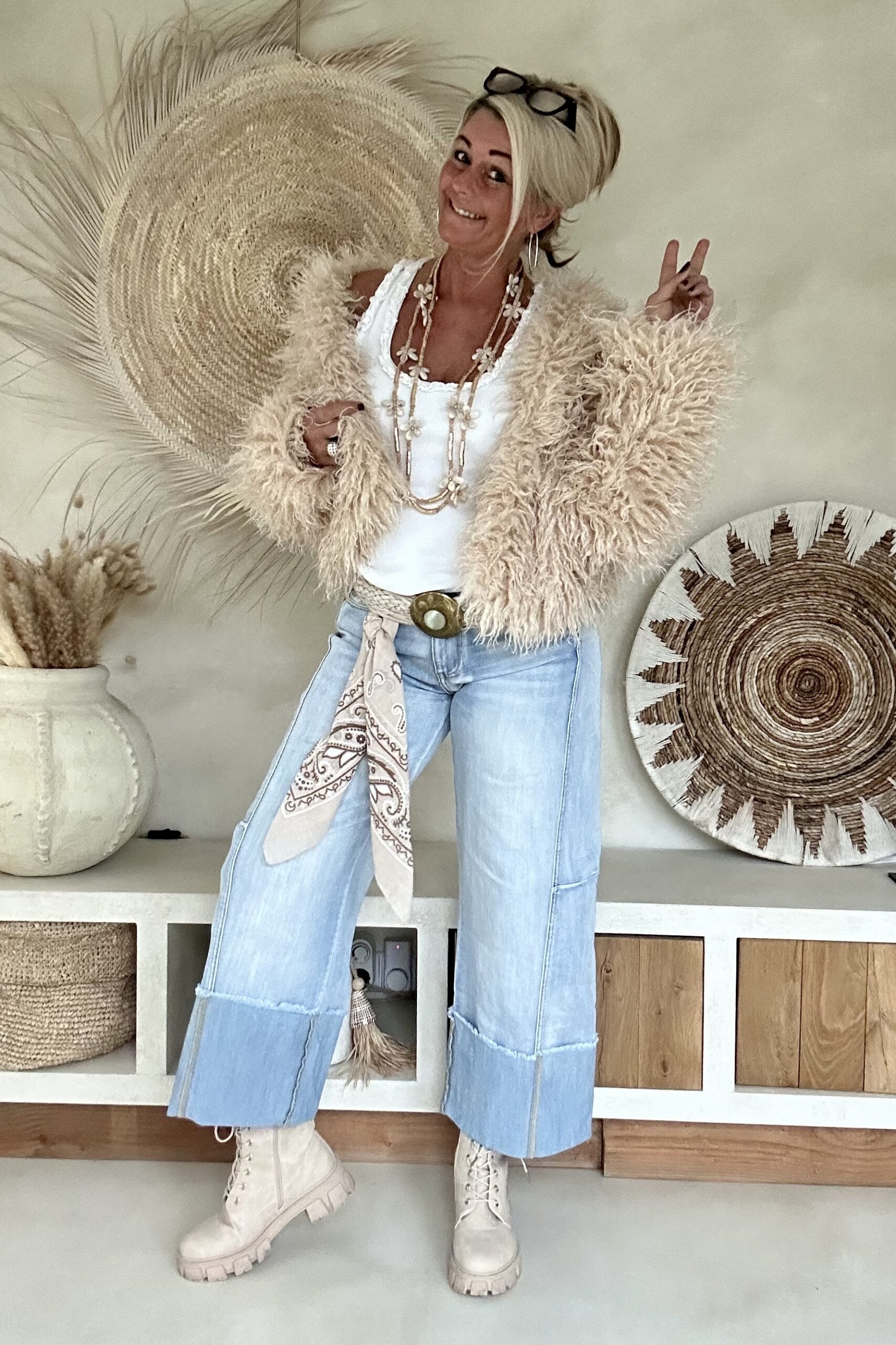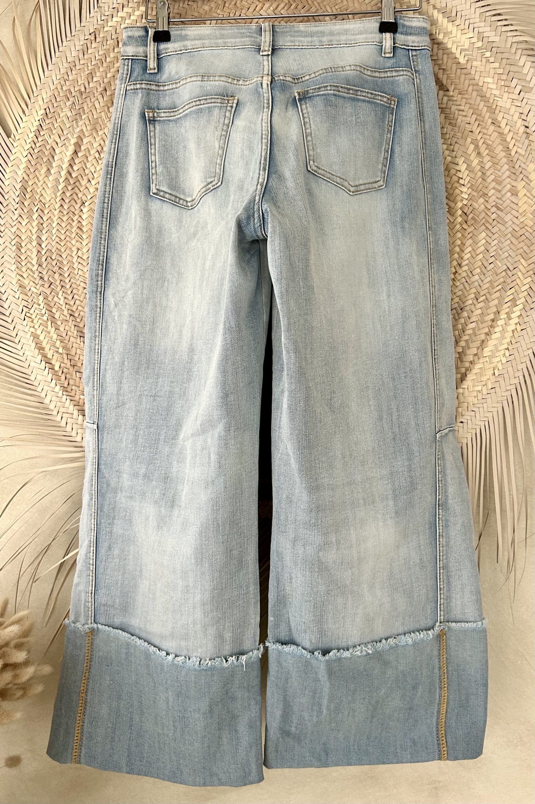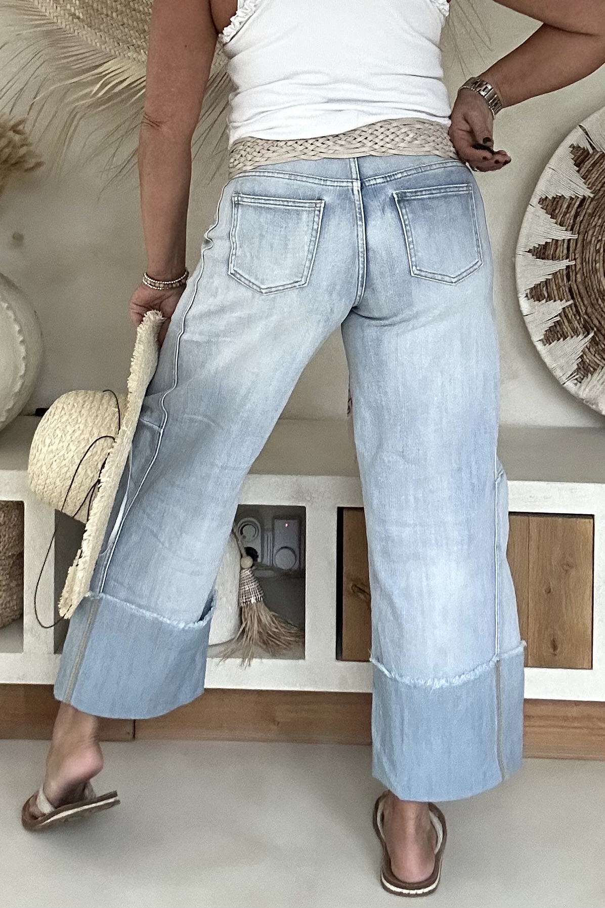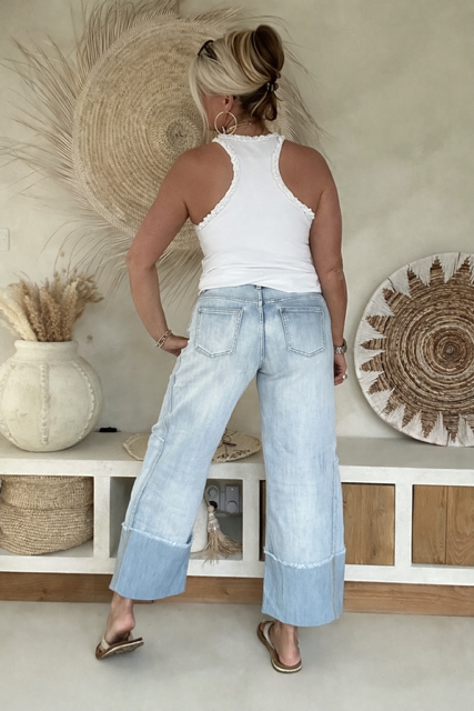 Wide leg Jeans 7/8 hippie vibe.