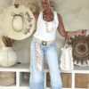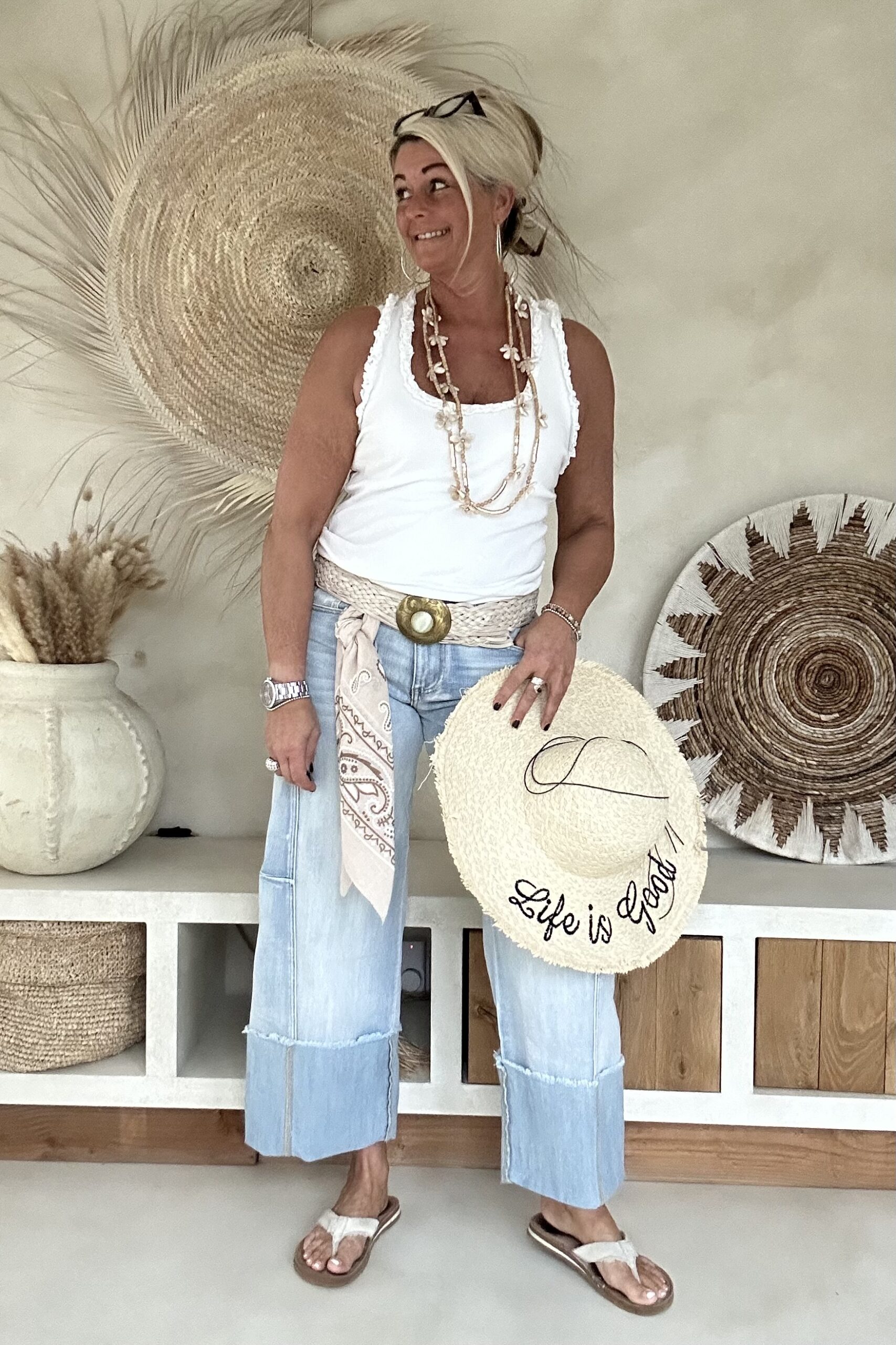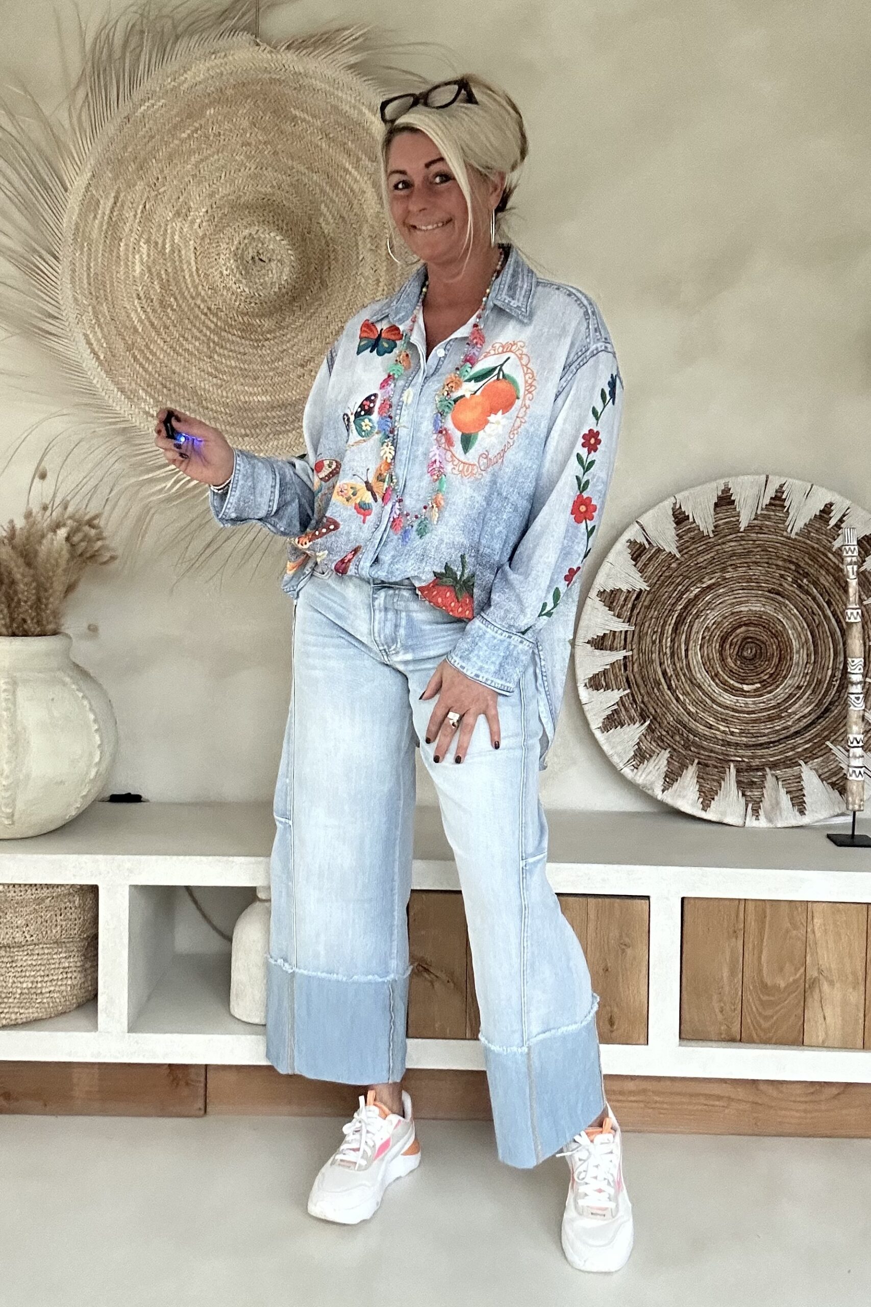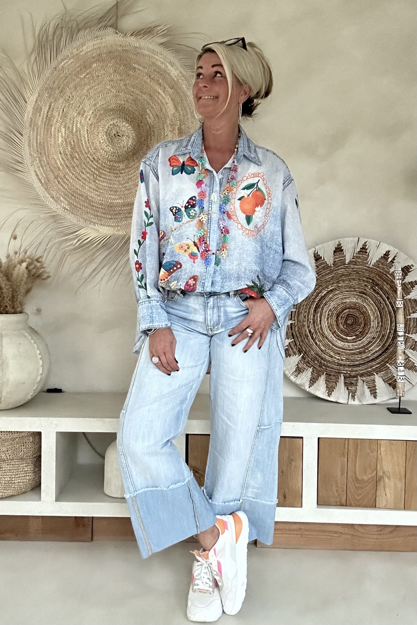 Wide leg Jeans 7/8 hippie vibe.