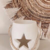 Deze stijlvolle sfeerlichthouder zorgt direct voor een warme en gezellige uitstraling in huis. Het opengewerkte patroon laat het licht op een speelse manier door, waardoor een mooi schaduwspel ontstaat. De ronde, organische vorm en de zacht grijsblauwe kleur geven de houder een serene, natuurlijke uitstraling die prachtig combineert met aardse tinten en natuurlijke materialen. Perfect voor op tafel, in de vensterbank of op een houten plank in de woonkamer.