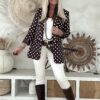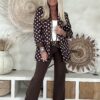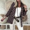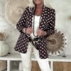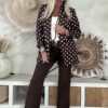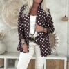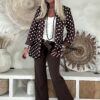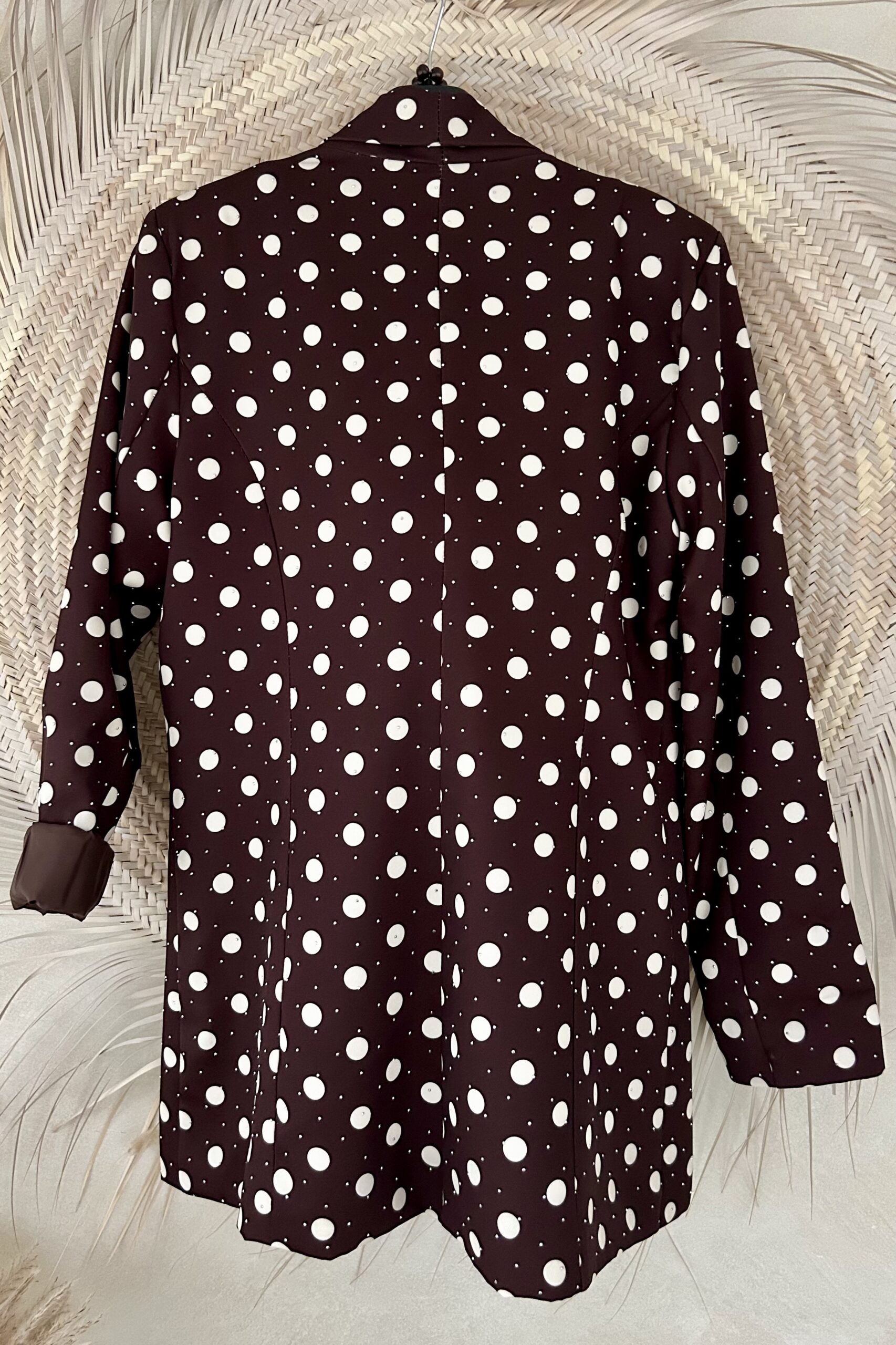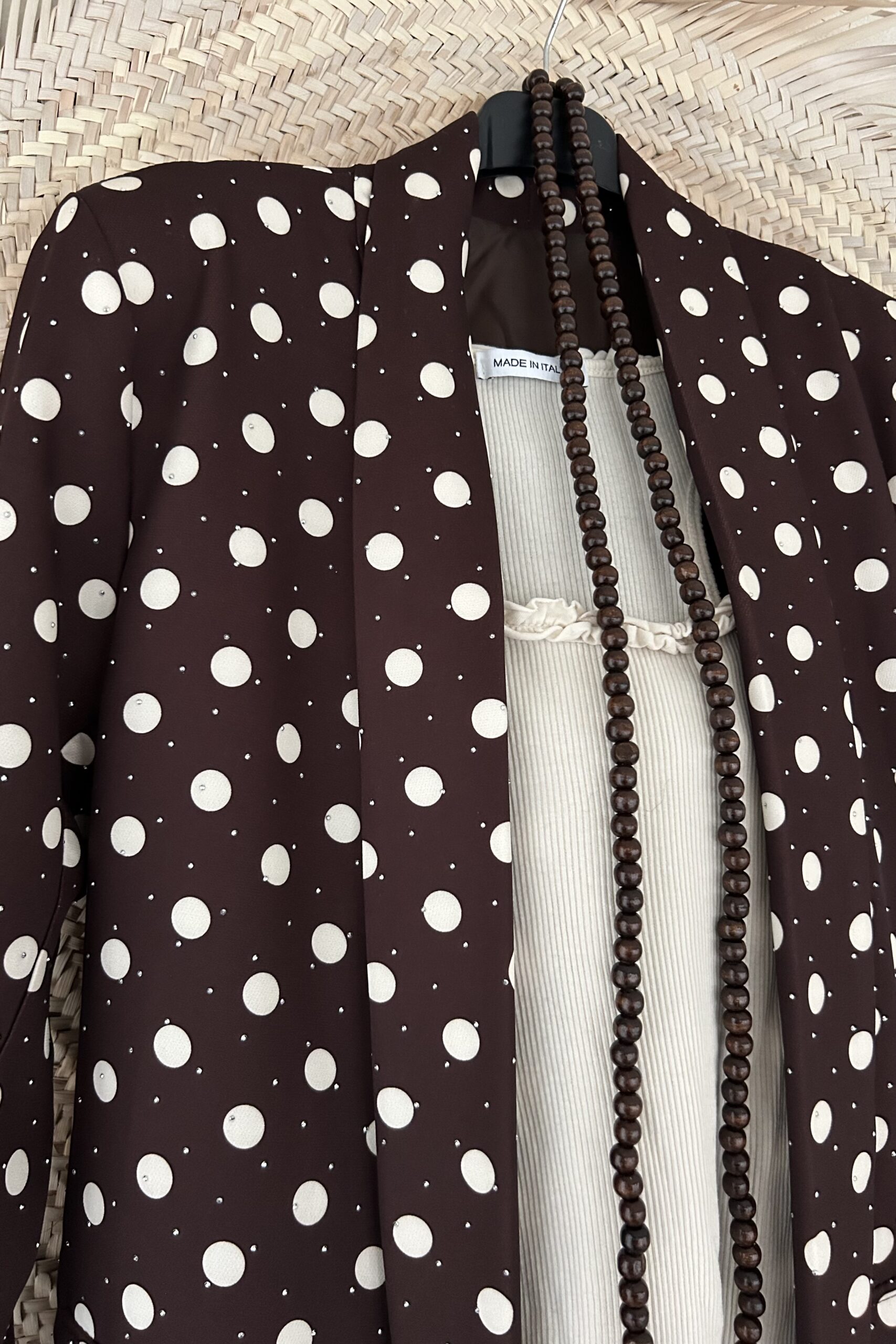Chocoladebruine sjaalkraag blazer met polkadots & steentjes