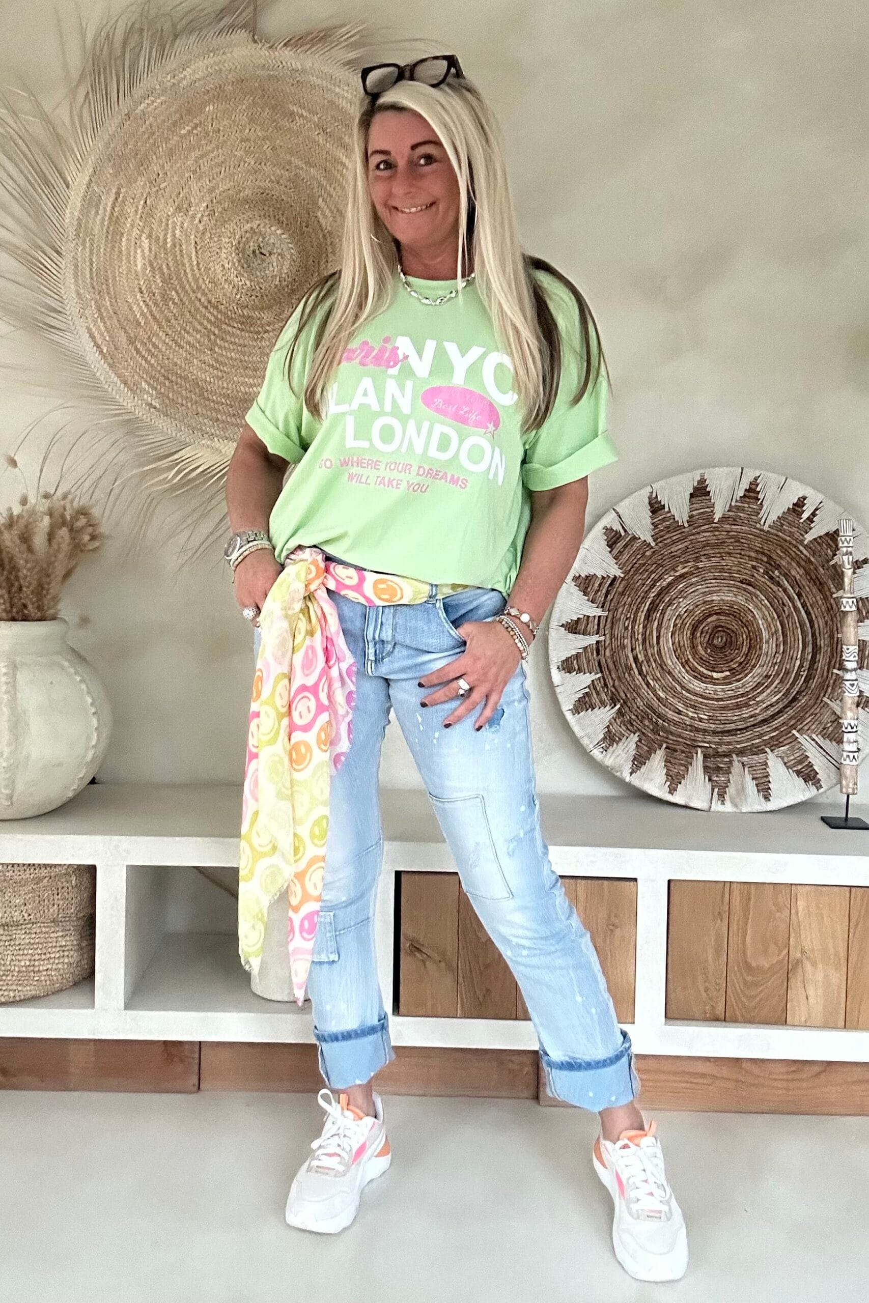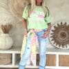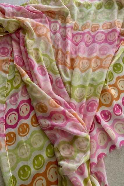 Deze vrolijke viscose sjaal brengt instant good vibes in je outfit. De speelse smileyprint in zachte tinten roze, groen en oranje zorgt voor een frisse en zomerse uitstraling. Licht, soepel en heerlijk zacht om te dragen. Perfect om nonchalant te knopen, los te laten hangen of speels te stylen bij een casual look. Een echte mood-booster die elke outfit nét dat beetje extra geeft.