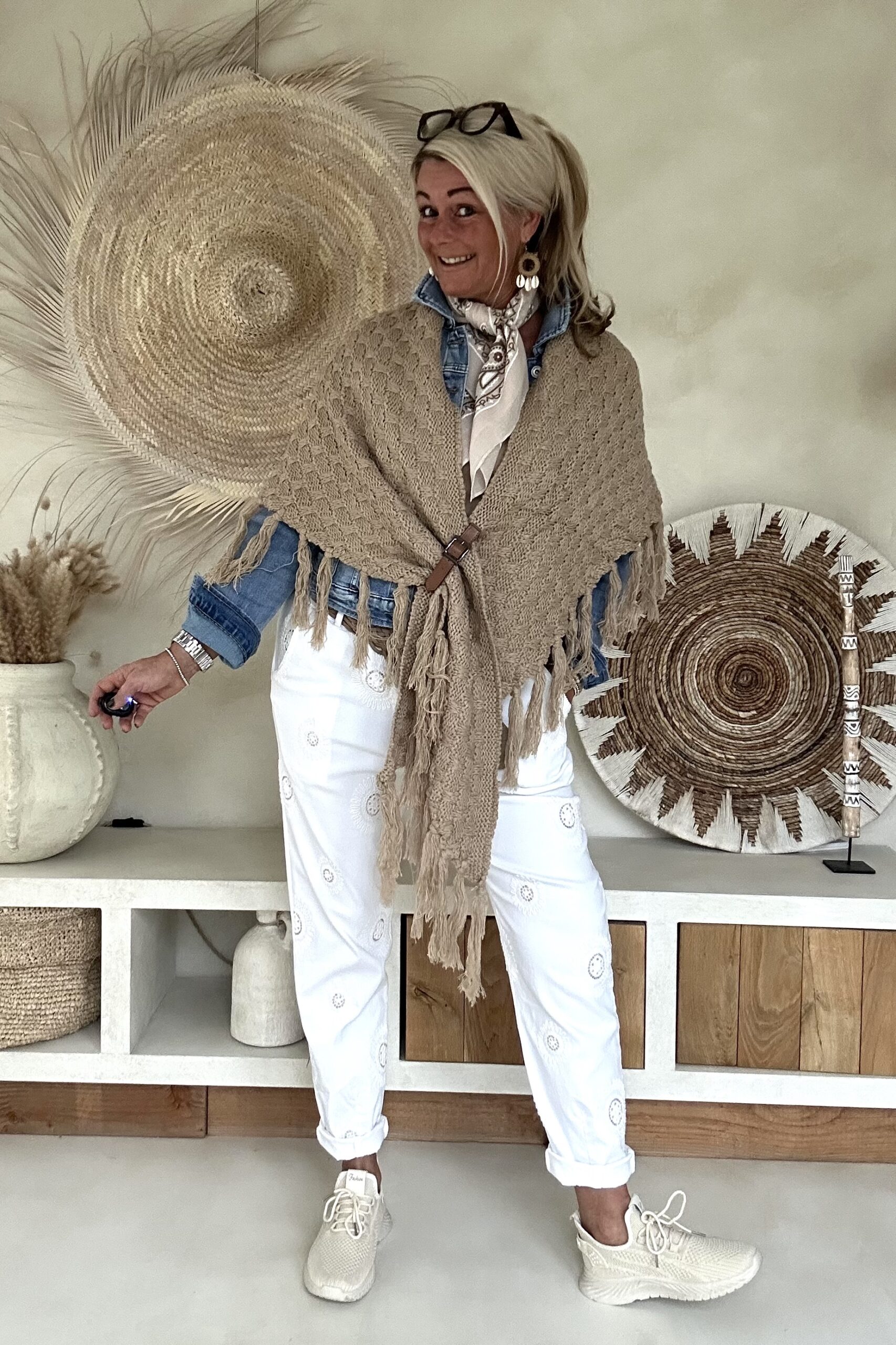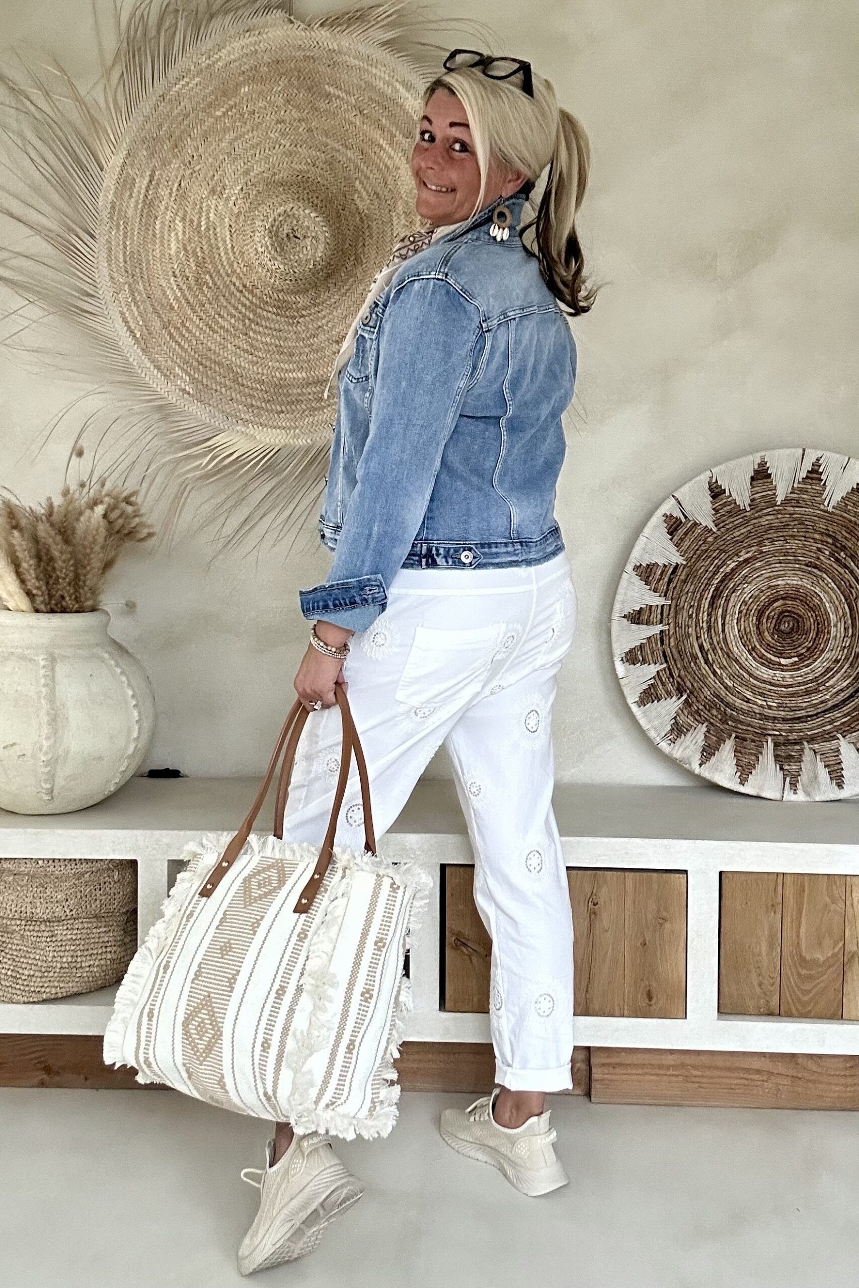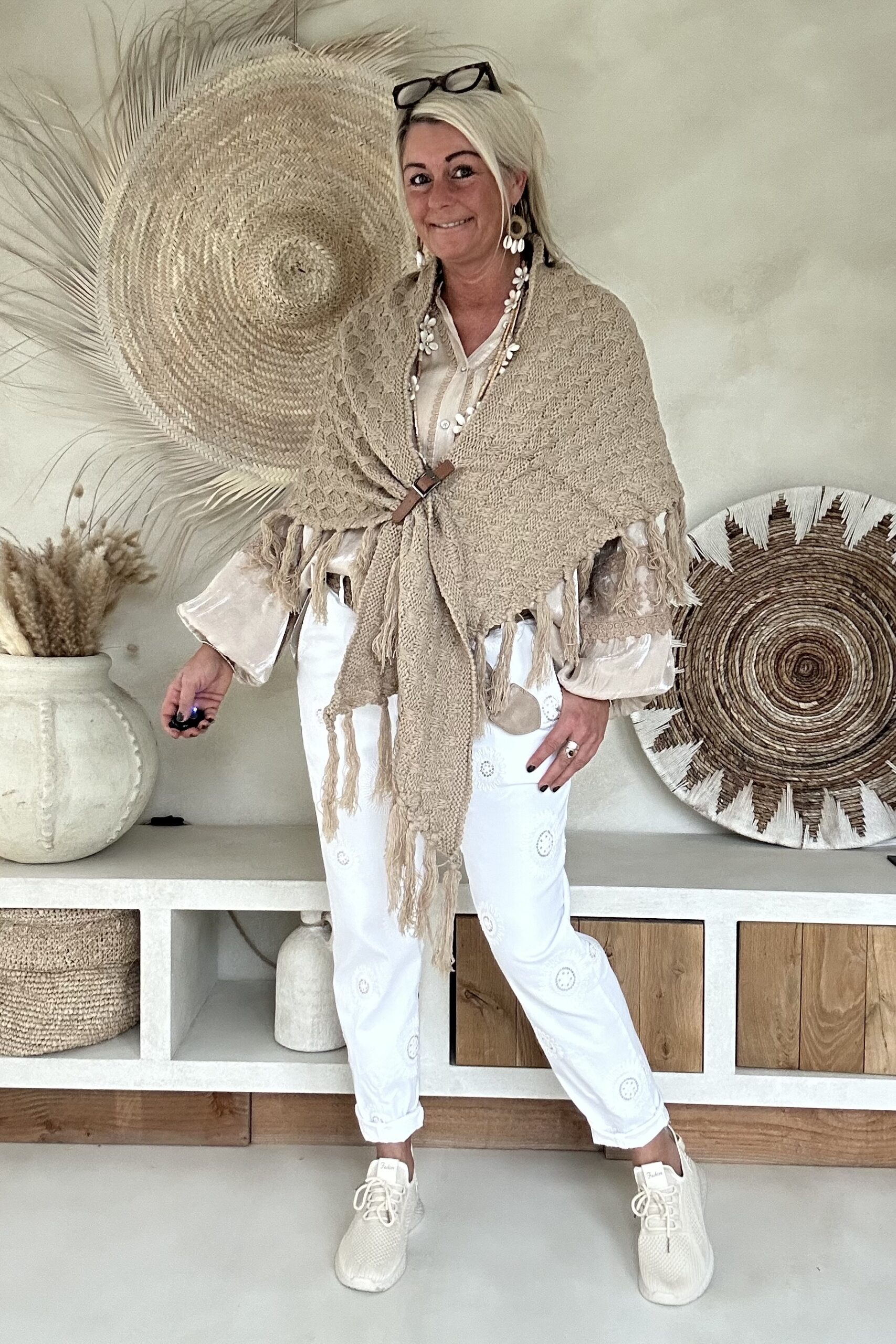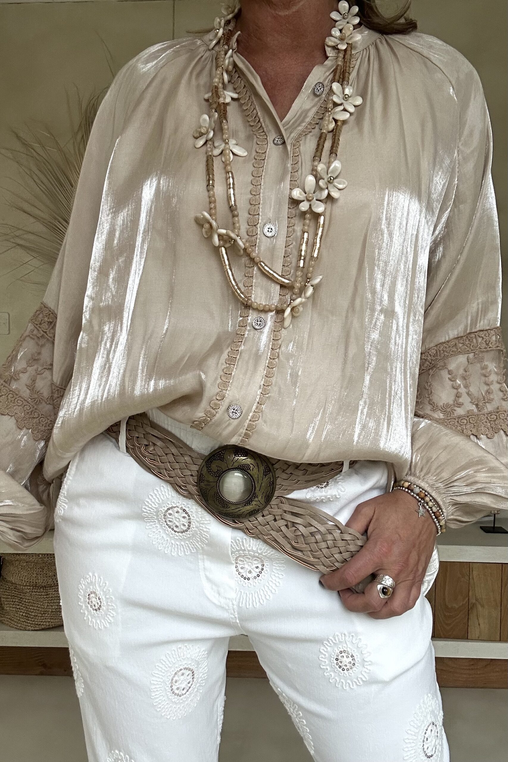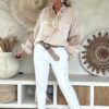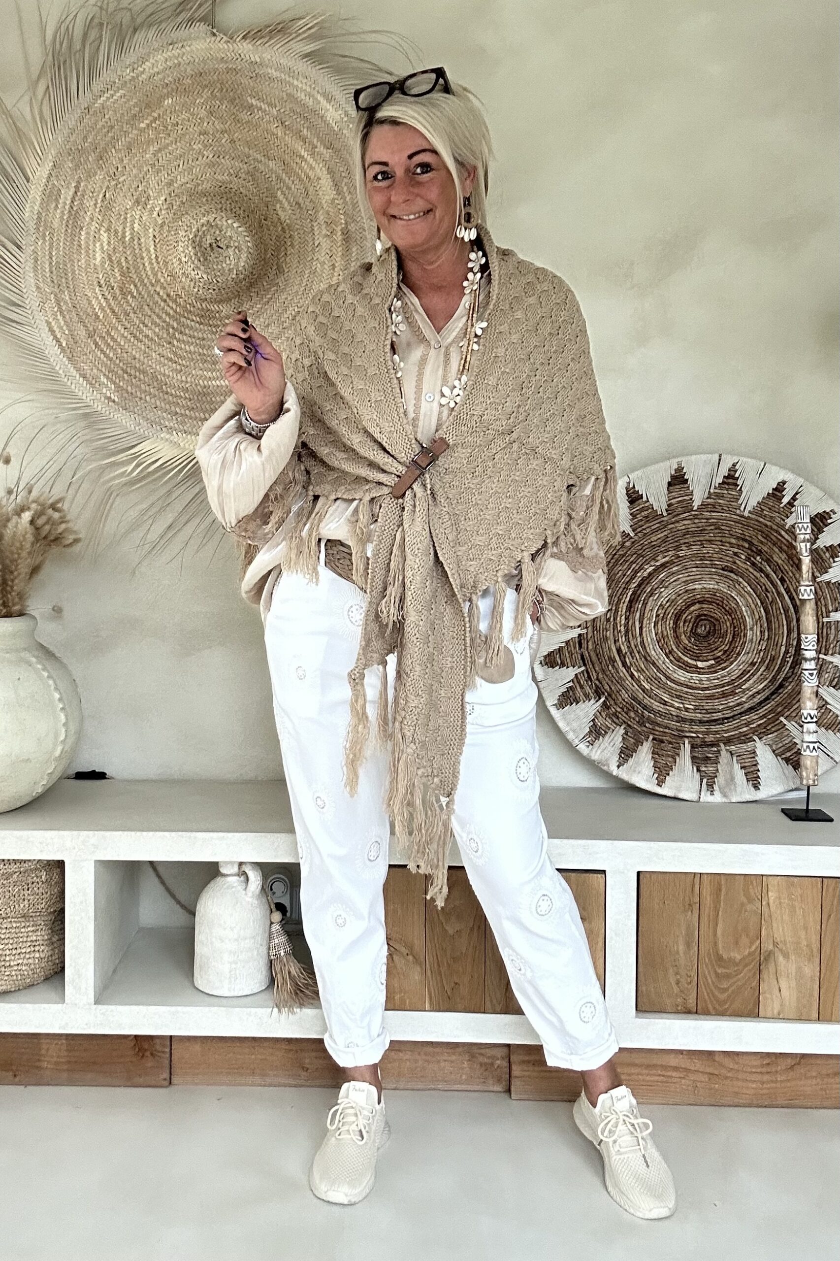 Deze super comfy stretchbroek is er eentje waar je meteen in wilt wonen. De zachte, soepele stof met veel stretch zorgt voor een heerlijk draagcomfort, terwijl de mooie borduursels en subtiele pailletjes net dat extra detail geven. De broek heeft een ontspannen uitstraling, maar oogt toch verzorgd en stijlvol.