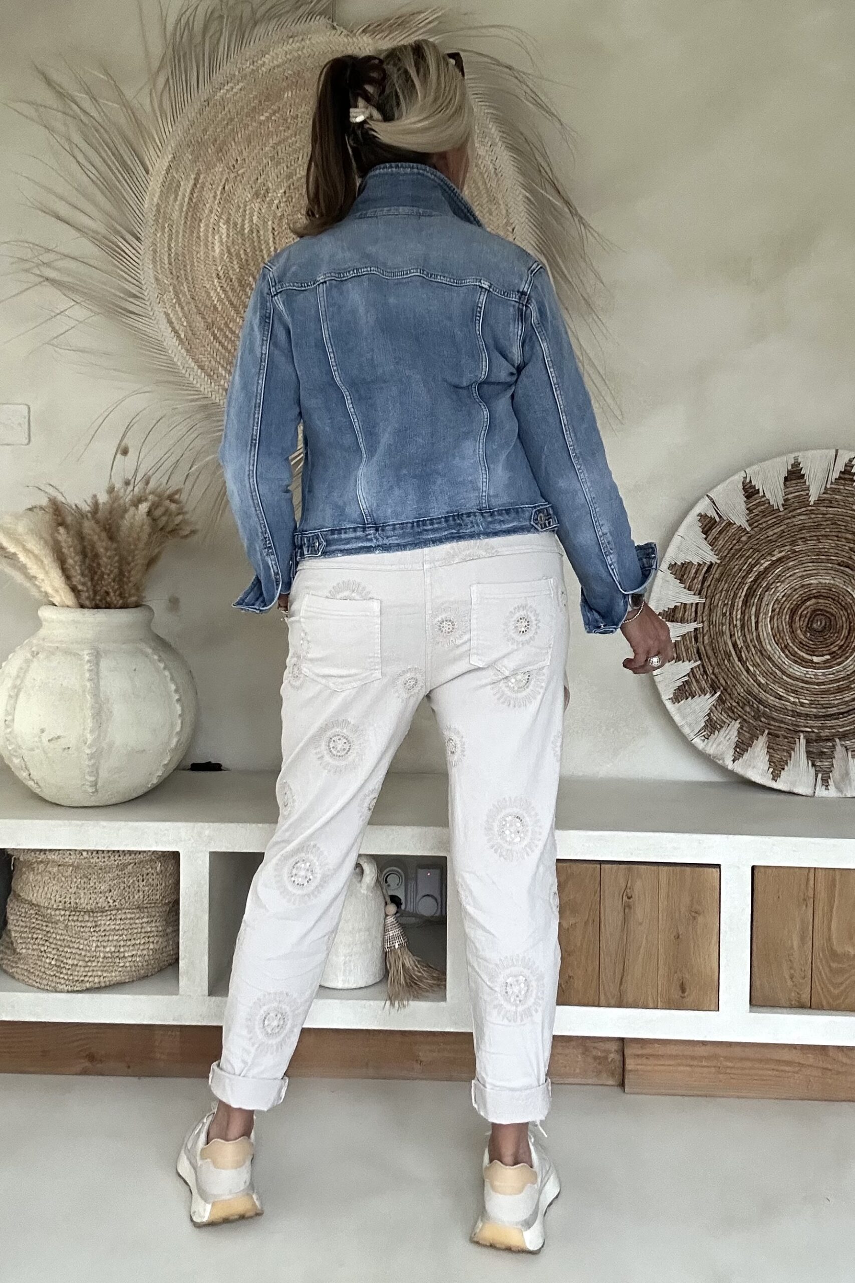 Super comfy stretchbroek met borduursels & pailletjes