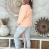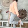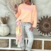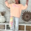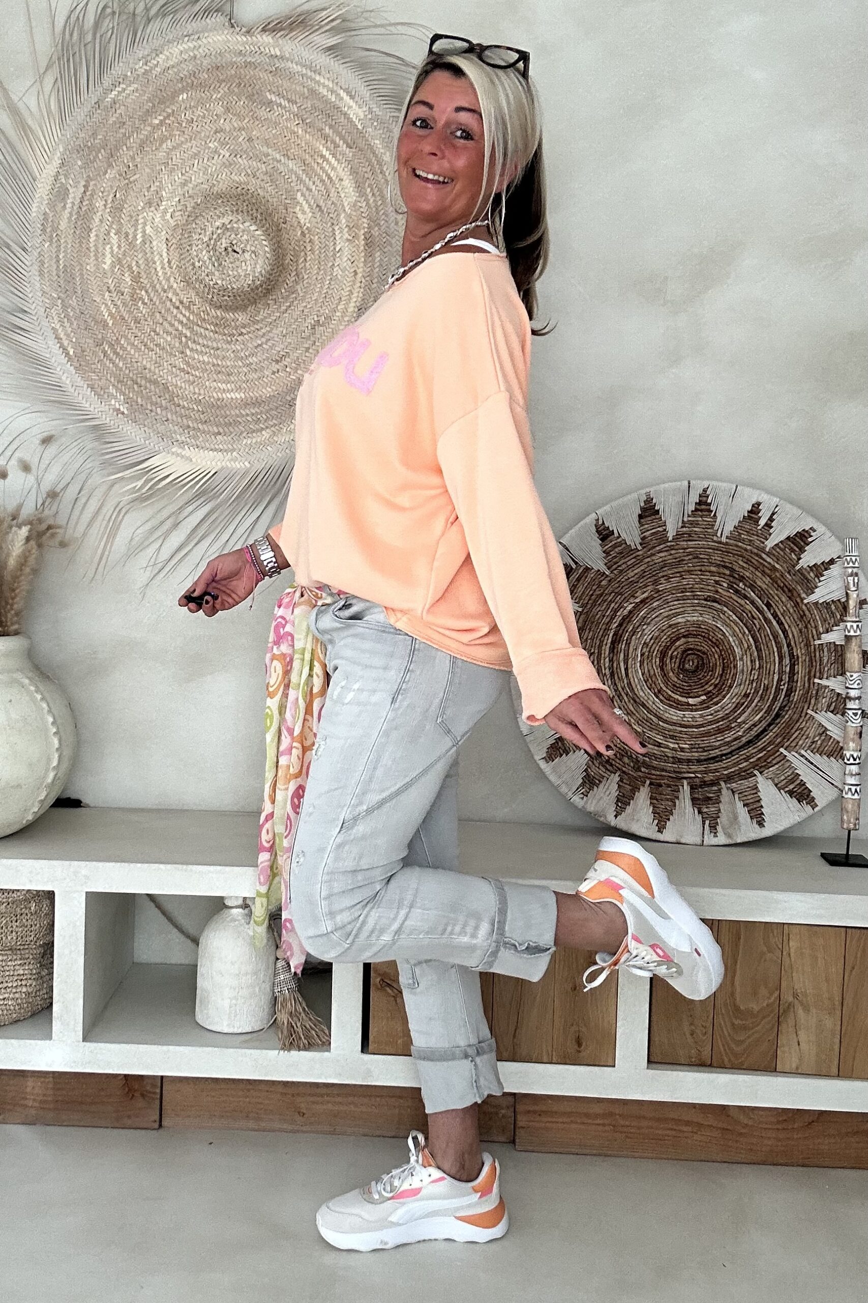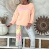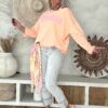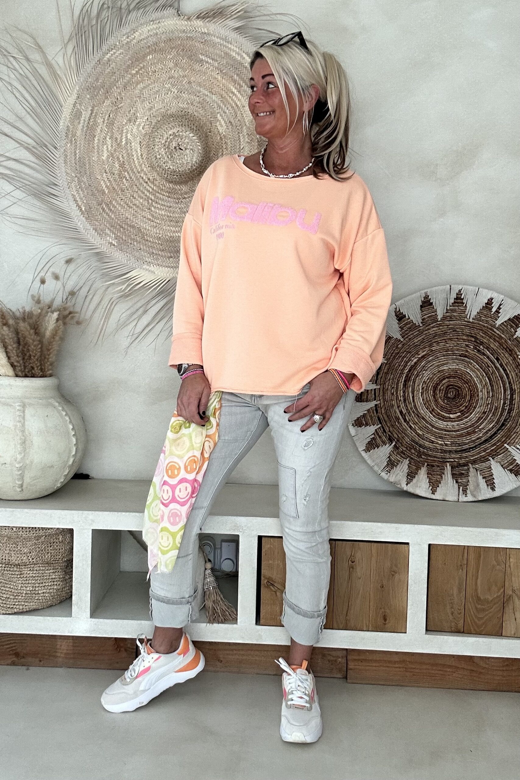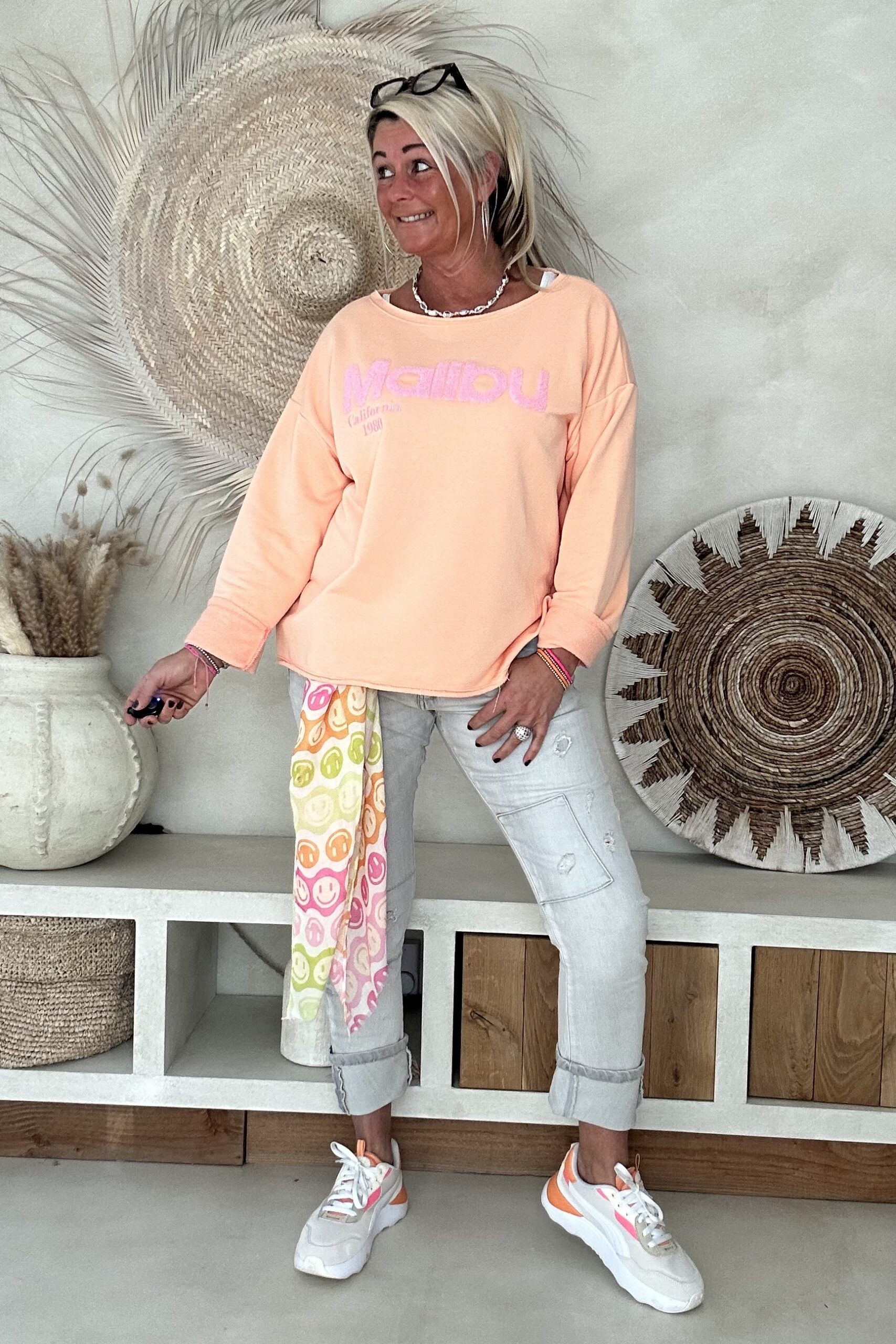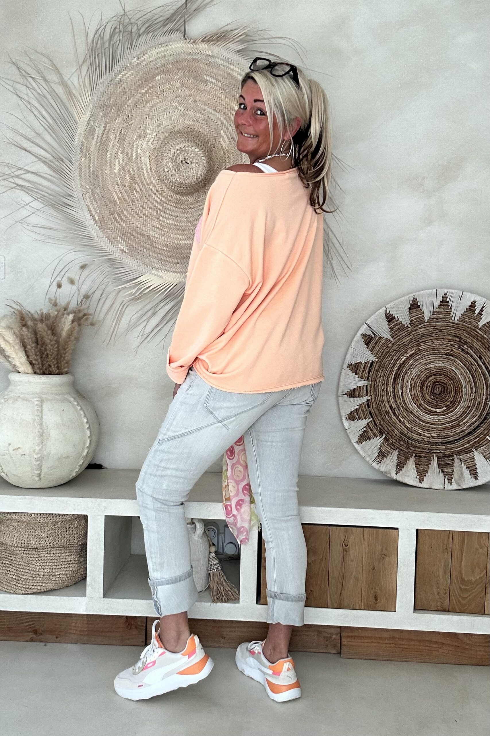 Sweater Shelley met Malibu Opdruk, Zalm Oranje.